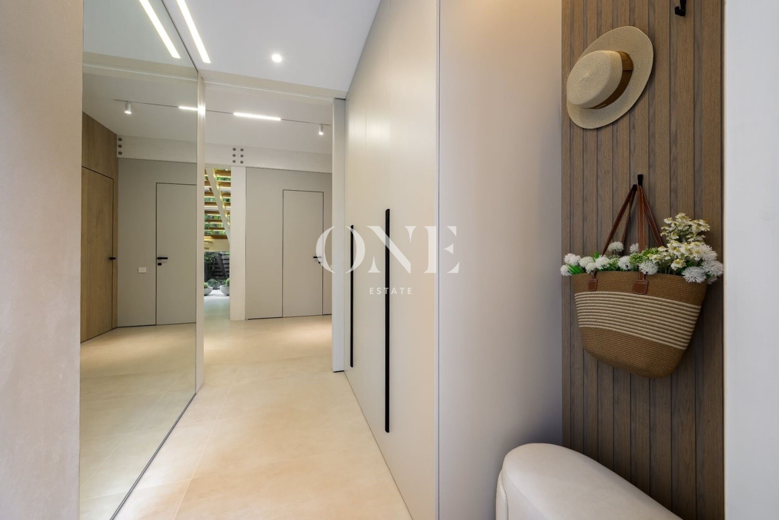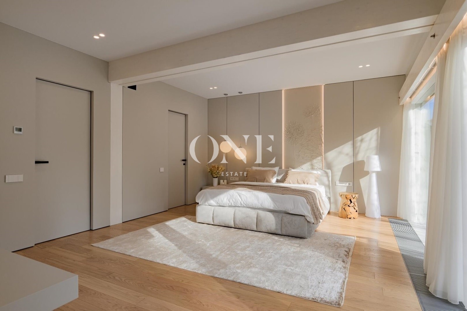 холл , с/у,мастер-спальня с гардеробной , ванной и балконом, спальня с гардеробной , детская.