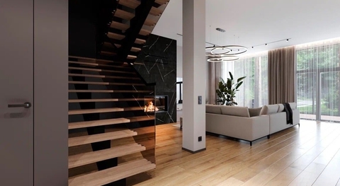 2 этаж: две спальни с гардеробными и санузлами, мастер-спальня с гардеробной и санузлом, холл, выход из каждой комнаты на просторные крытые террасы.
