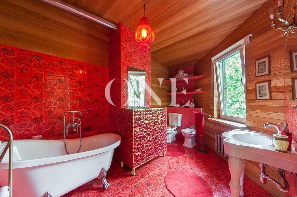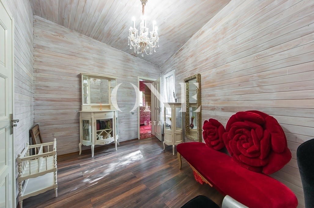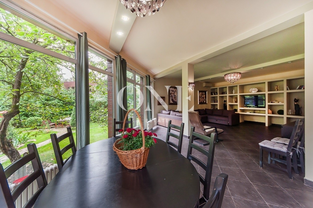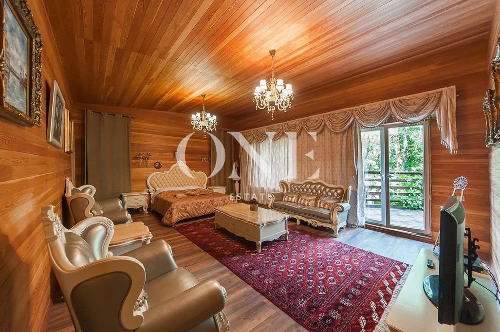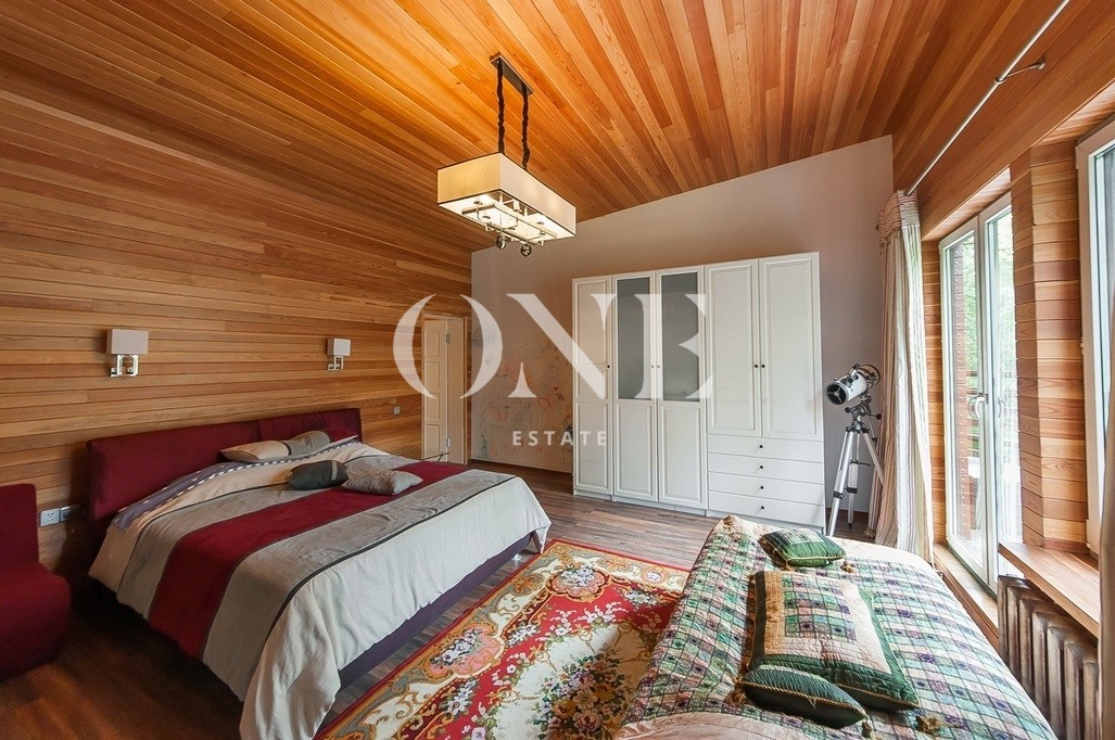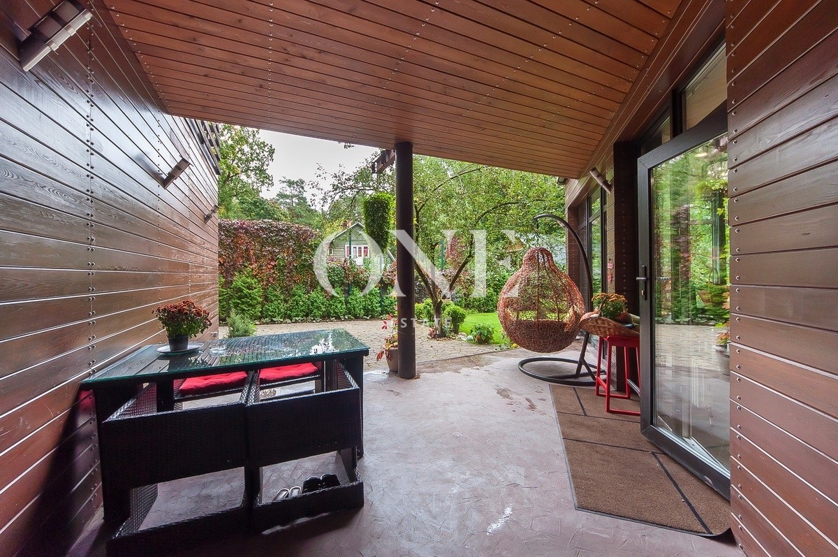 Дом площадью 500 м2 расположен на лесном участке площадью 14 соток, на участке также выполнен ландшафтный дизайн, предусмотрена площадка для парковки и зона барбекю. Дом полностью укомплектован мебелью и всей необходимой бытовой техникой.