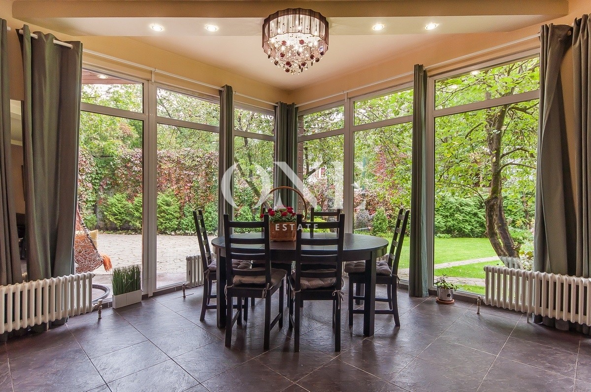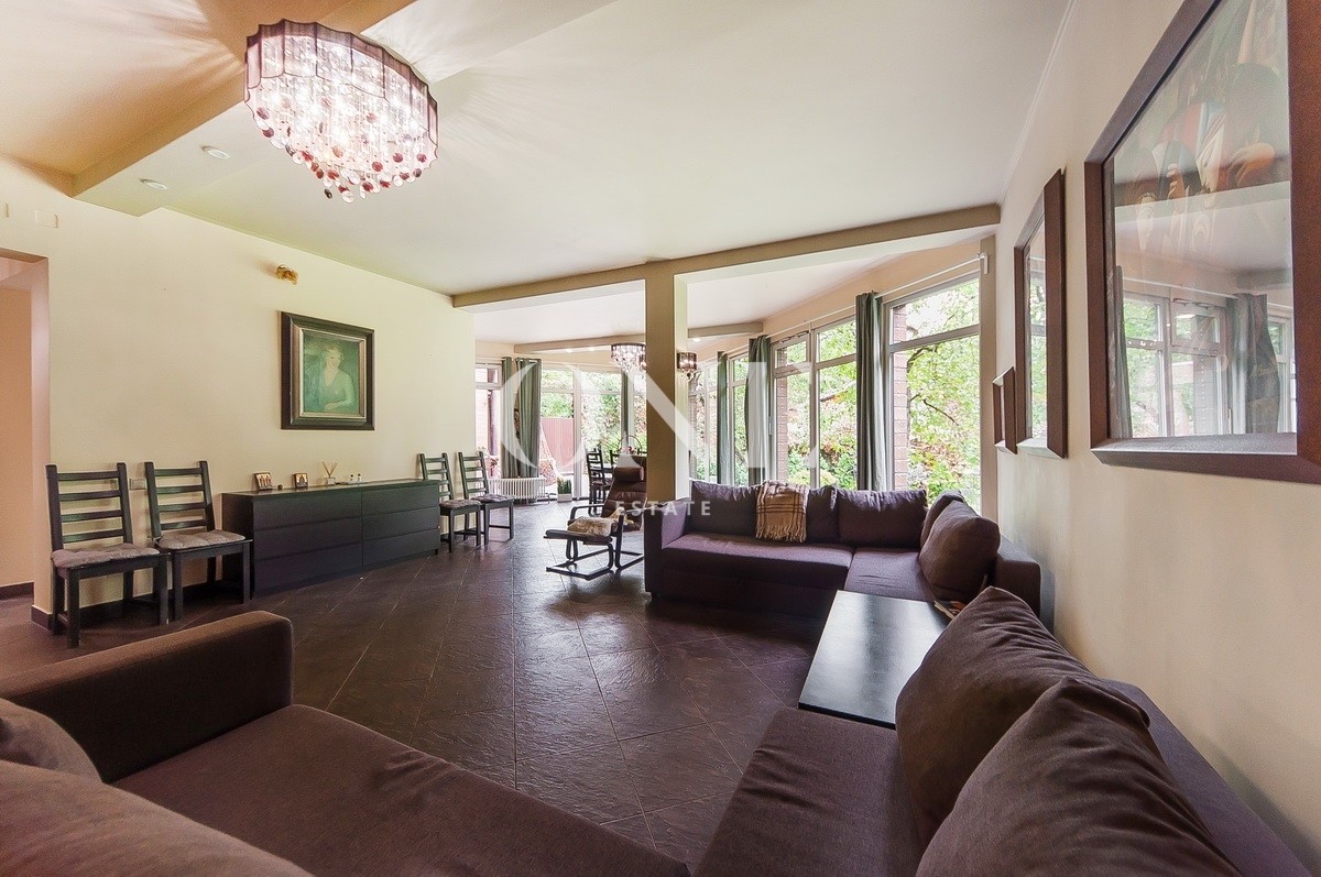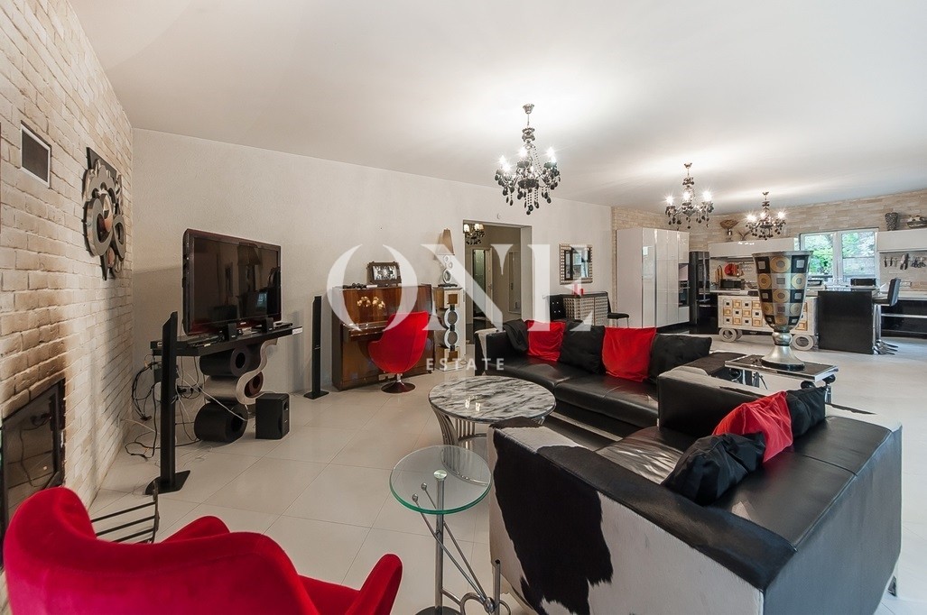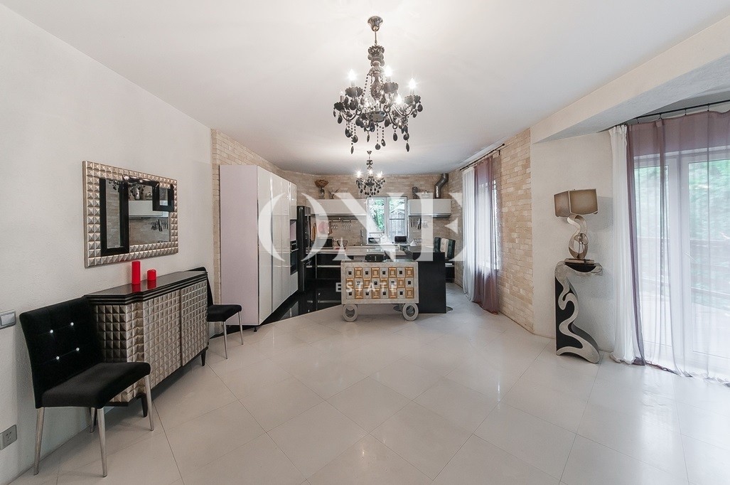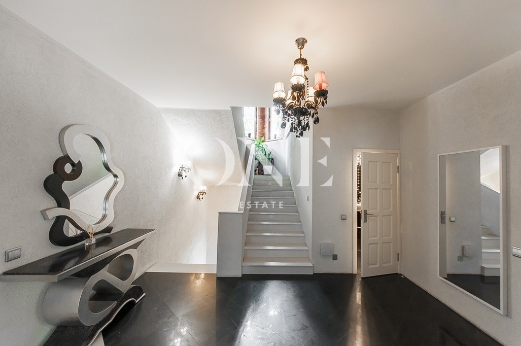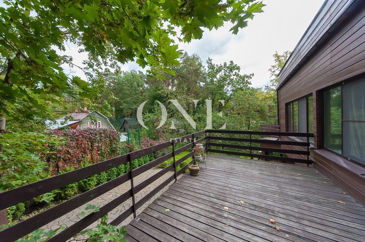 Дом площадью 500 м2 расположен на лесном участке площадью 14 соток, на участке также выполнен ландшафтный дизайн, предусмотрена площадка для парковки и зона барбекю. Дом полностью укомплектован мебелью и всей необходимой бытовой техникой.