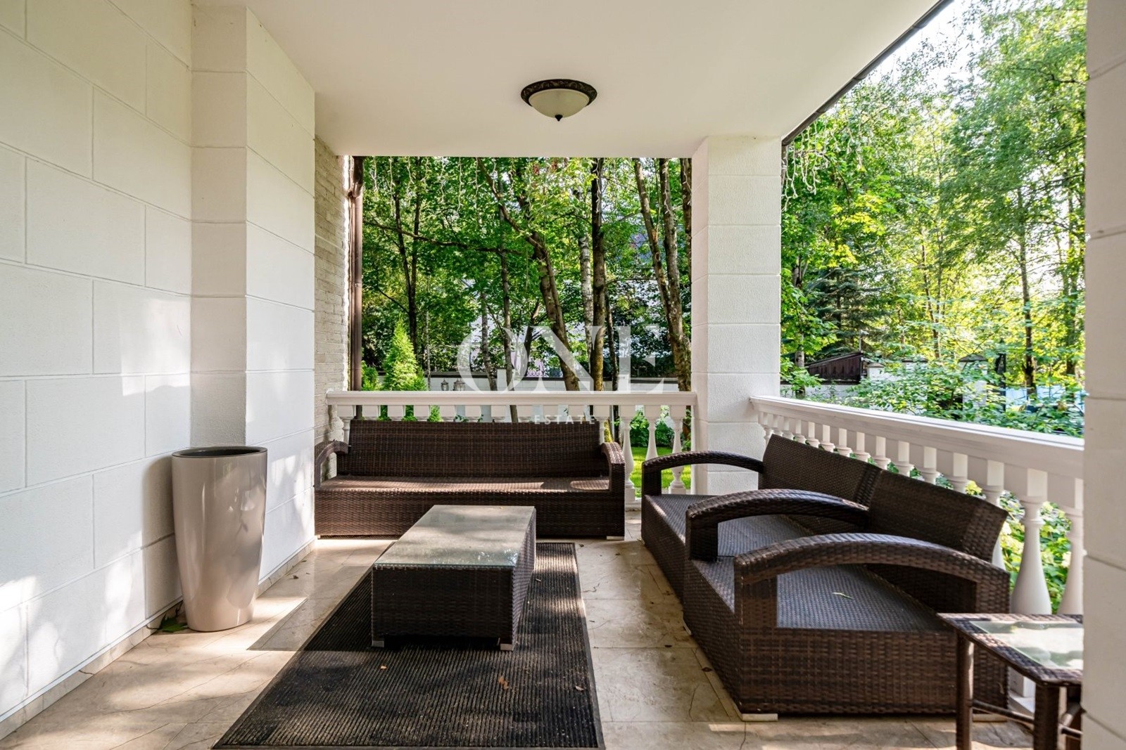 На просторном лесном участке правильной формы расположены 3 строения: основной дом, гостевой дом с помещением для персонала и барбекю-беседка-идеальное место для семейных праздников и отдыха с друзьями.