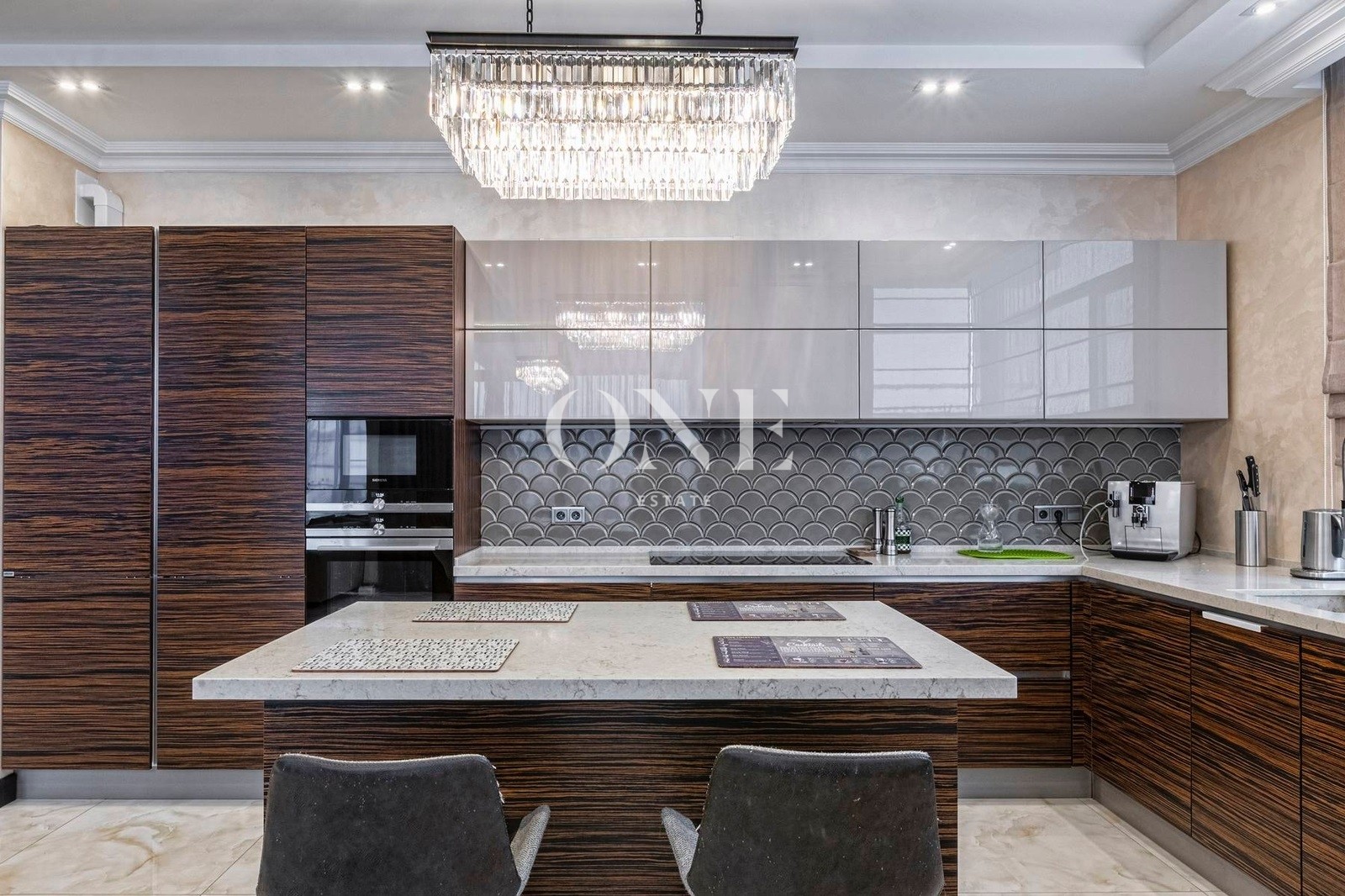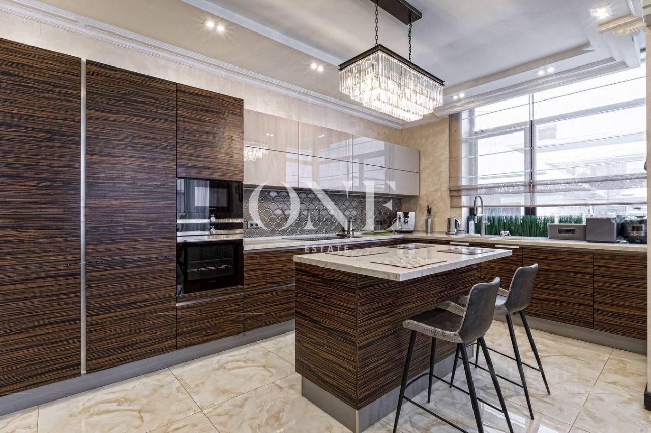 Дом полностью мебелирован, ТВ самсунг. Установлены угловая кухня HECKER (Германия), со встраиваемой техникой: холодильник и морозилка Либхер, духовой шкаф, микроволновая печь, варочный индукционная панель, посудомоечная машины, винный шкаф фирмы Сименс. На полу керамогранит, инженерная доска (американский