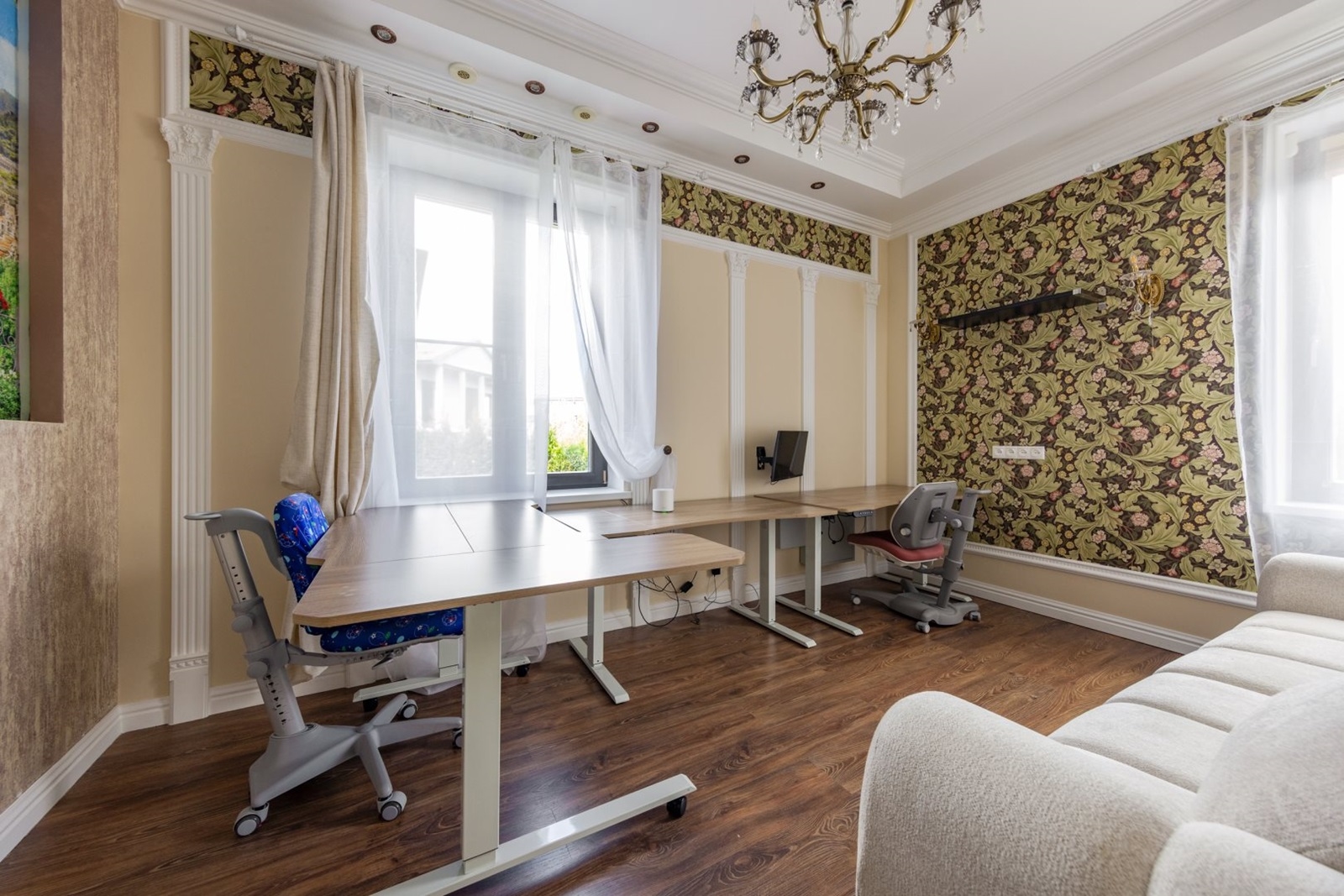 4 спальни с собственными гардеробными зонами + кабинет для работы.