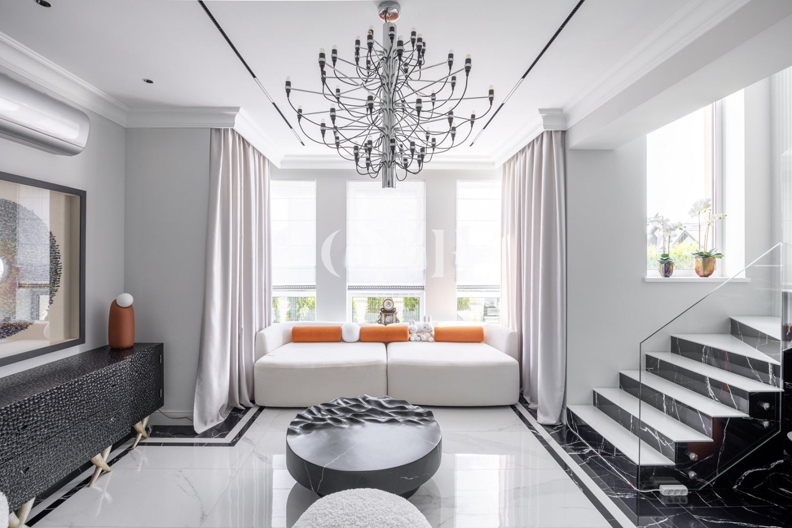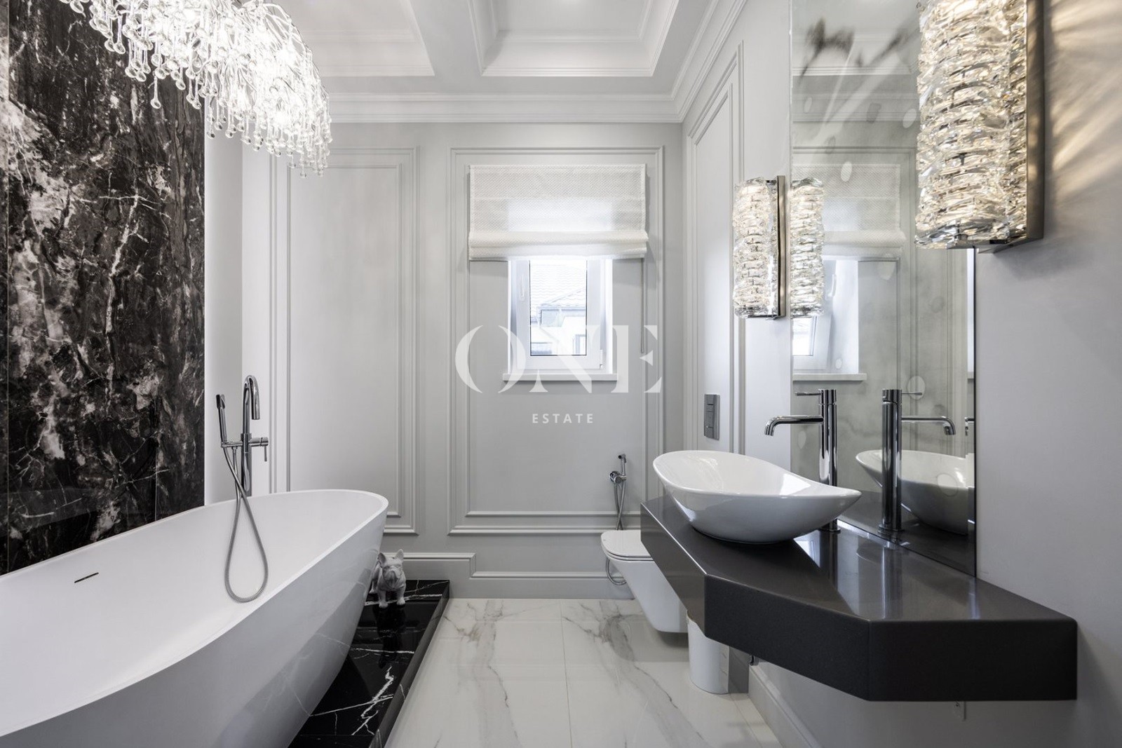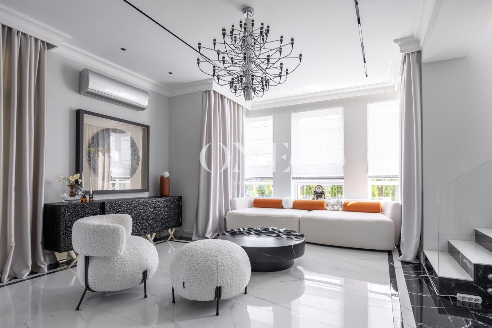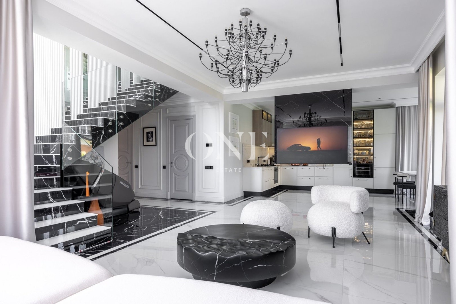 Первый этаж, второй этаж холл и с/у - тёплый пол. Подоконники и лестница выполнены из камня. Кухня оборудована профессиональной мебелью и встроенной техникой премиум-класса: Asko, Korting. Установлена современная охранная система с датчиками движения и контроля доступа, климат-контроль, профессиональная система очистки воды. На участке выполнен профессиональный ландшафтный дизайн в современном стиле. Для отдых на свежем воздухе оборудована уютная меблированная терраса.