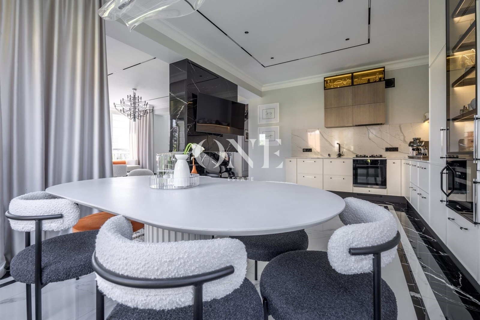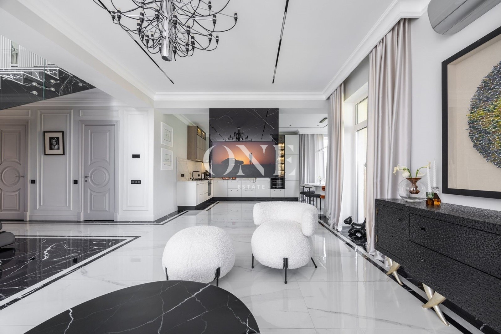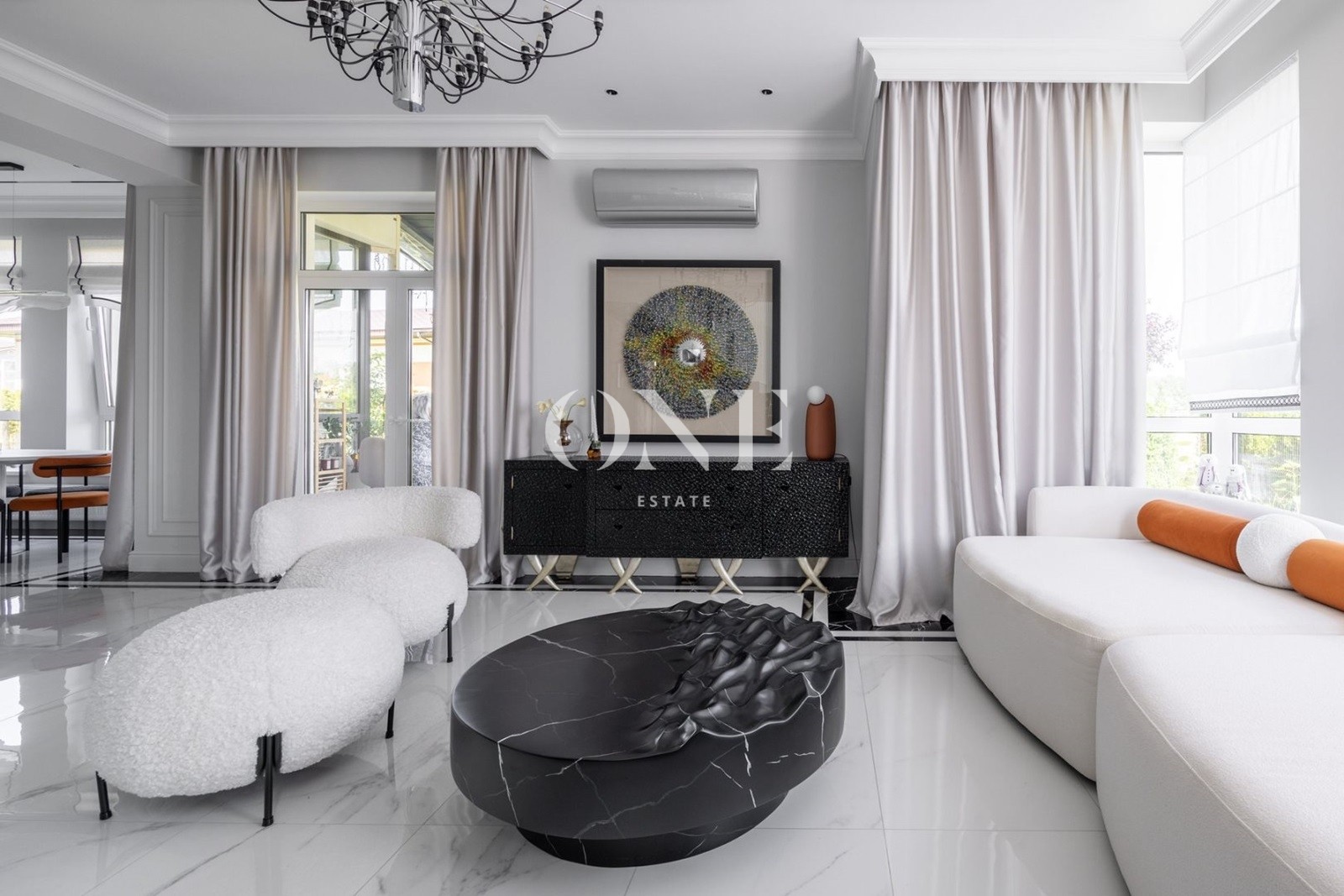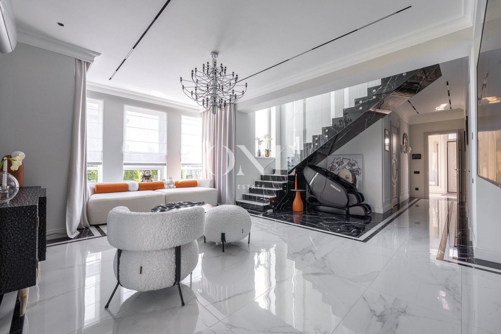 Первый этаж, второй этаж холл и с/у - тёплый пол. Подоконники и лестница выполнены из камня. Кухня оборудована профессиональной мебелью и встроенной техникой премиум-класса: Asko, Korting. Установлена современная охранная система с датчиками движения и контроля доступа, климат-контроль, профессиональная система очистки воды. На участке выполнен профессиональный ландшафтный дизайн в современном стиле. Для отдых на свежем воздухе оборудована уютная меблированная терраса.