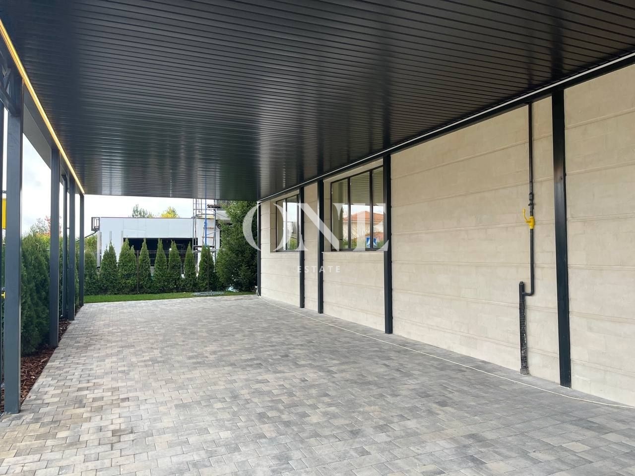 На участке выполнен ландшафтный дизайн, высажены деревья по периметру забора, есть навес на 2 машино-места.