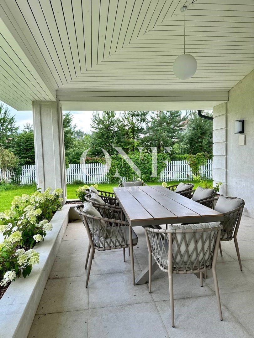 В продаже новый дом в стиле неоклассики площадью 459м2, из которых основная площадь дома 343м2 + блок персонала 116м2.