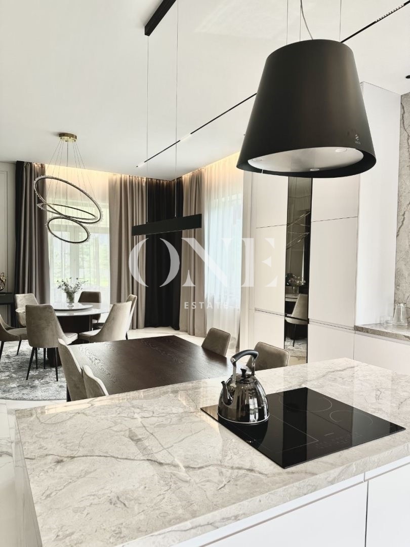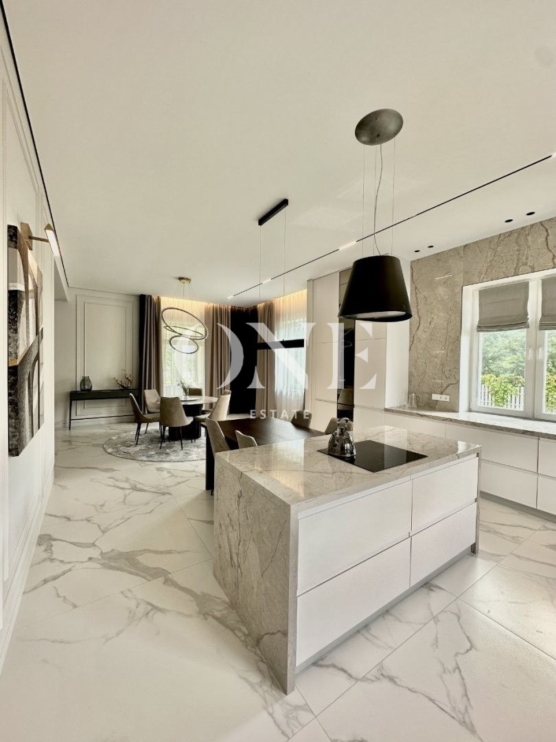 Фасад дома отделан высококачественным светлым натуральным камнем. Кровля из премиальной композитной черепицы. В доме продуманная планировка. На участке расположен вместительный гараж на 2 м/м.