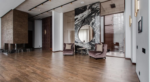 прихожая с гардеробной, с/у, кухня, столовая-гостиная с выходом на террасу, кабинет, две гостевые спальни со своими с/у и гардеробными, кабинет-переговорная с баром, гардеробом своим с/у и отдельным выходом, кладовая, зона SPA с бассейном (11х4) с джакузи, гидромассажем и противотоком, хамамом, гардеробной и с/у, гараж на 2 м/м.