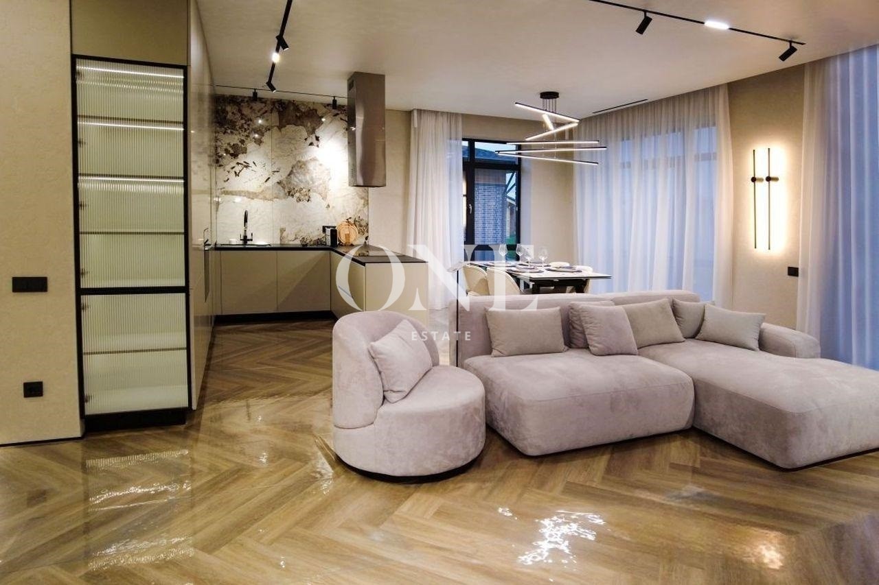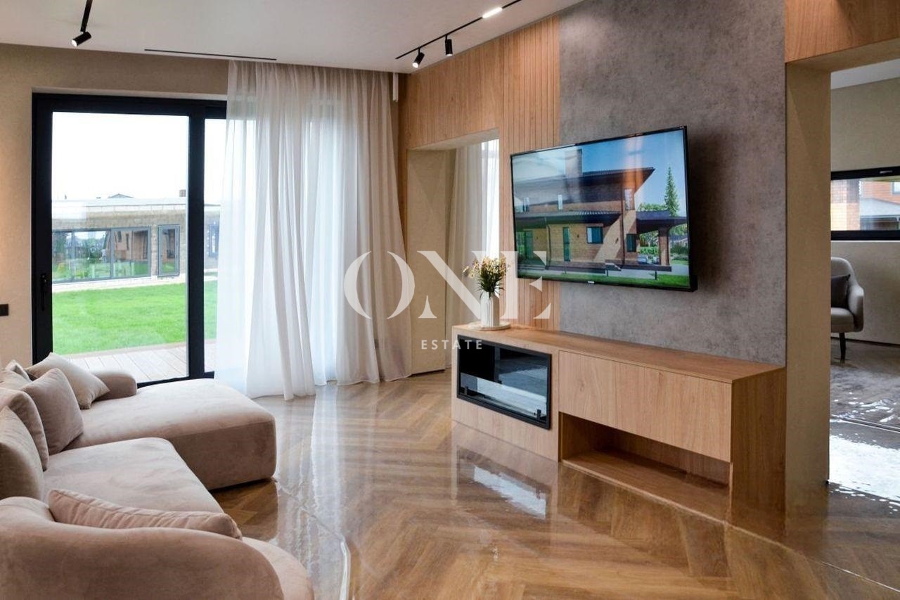 Дом оформлен по индивидуальному дизайнерскому проекту, оснащен сантехникой и бытовой техникой от ведущих зарубежных производителей. Тройная система комфорта: вентиляция с рекуперацией, мультисплит-системы Haier и теплые полы с интегрированными конвекторами.
