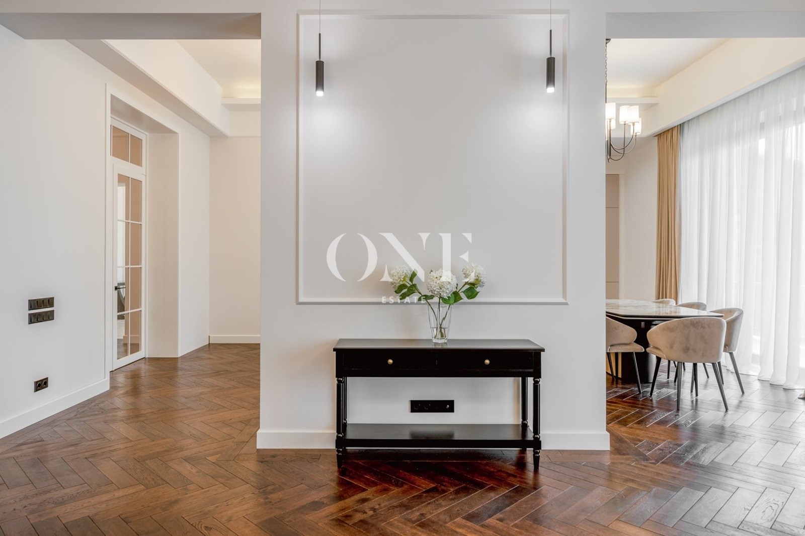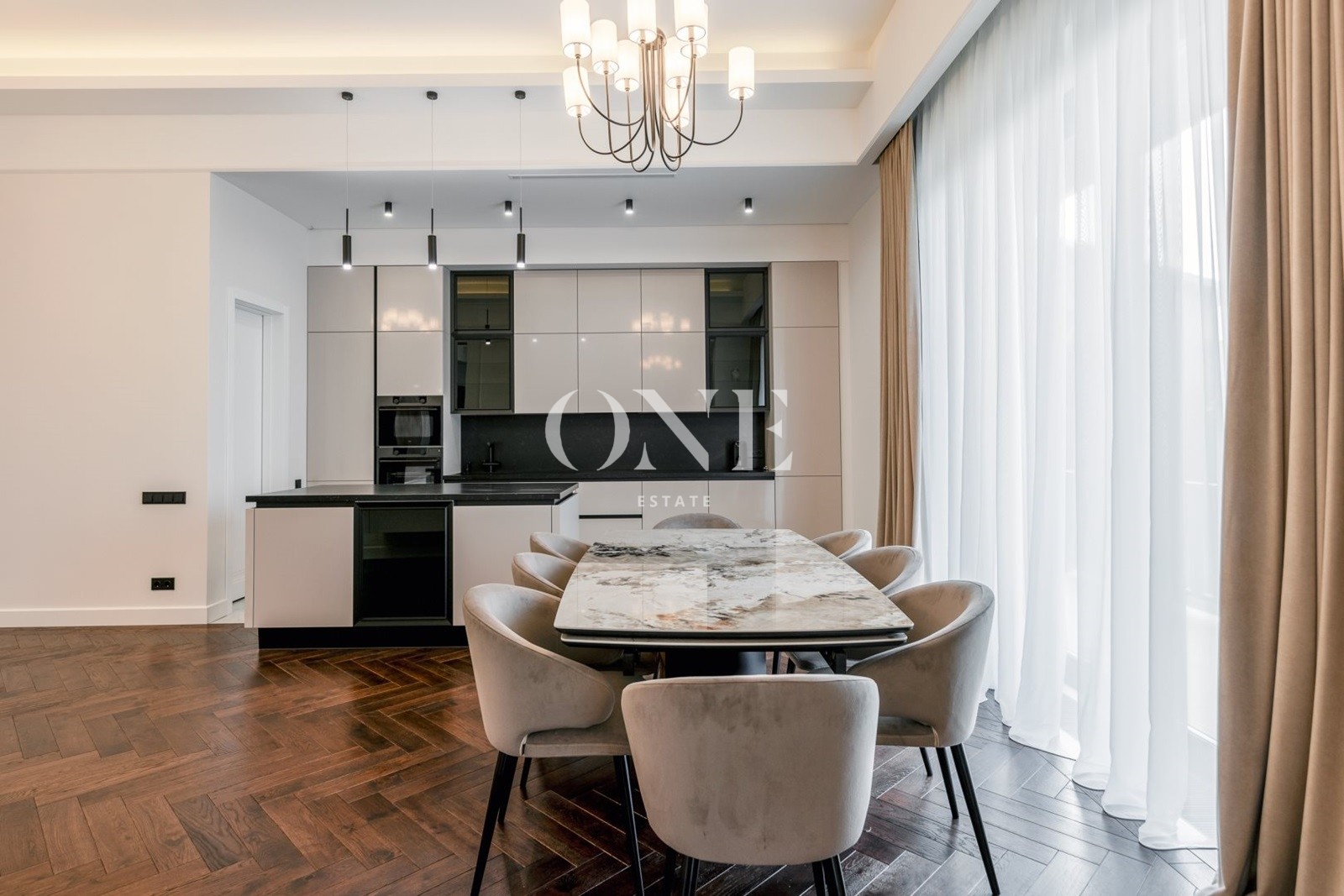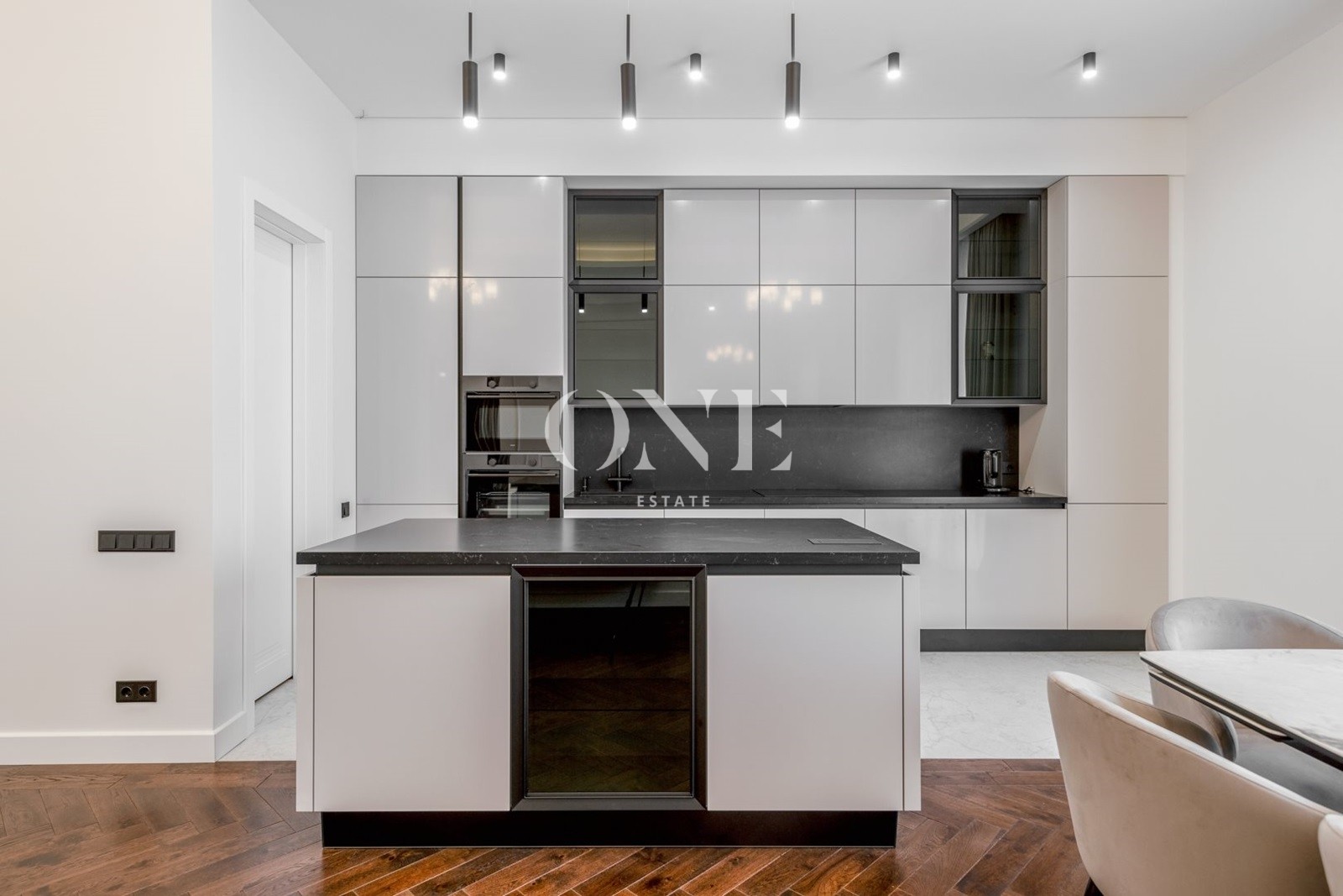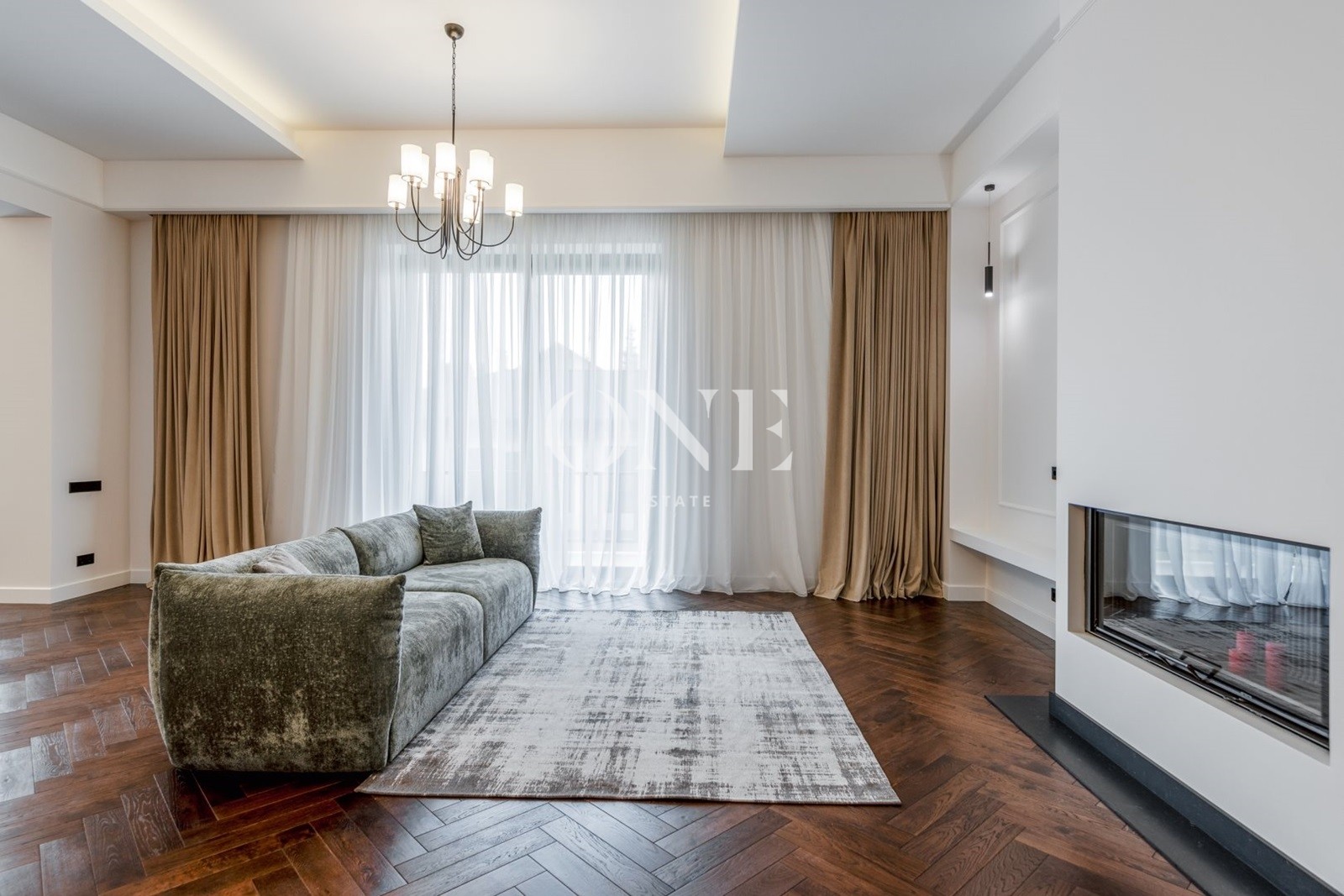 На первом этаже расположено 4 спальни , 5 с/у, 3 просторных гардеробных, кабинет, столовая, объединенная с каминным залом и выходом на террасу.