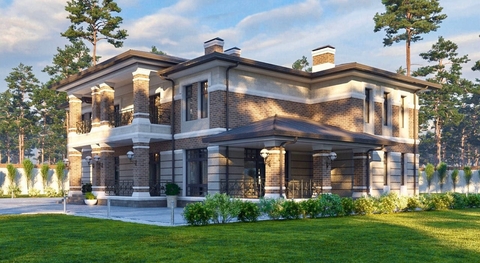 1 этаж: прихожая, гостиная, столовая, кухня, терраса, кабинет, винная и сигарная комнаты, спальня, кладовая, 2 с/у;