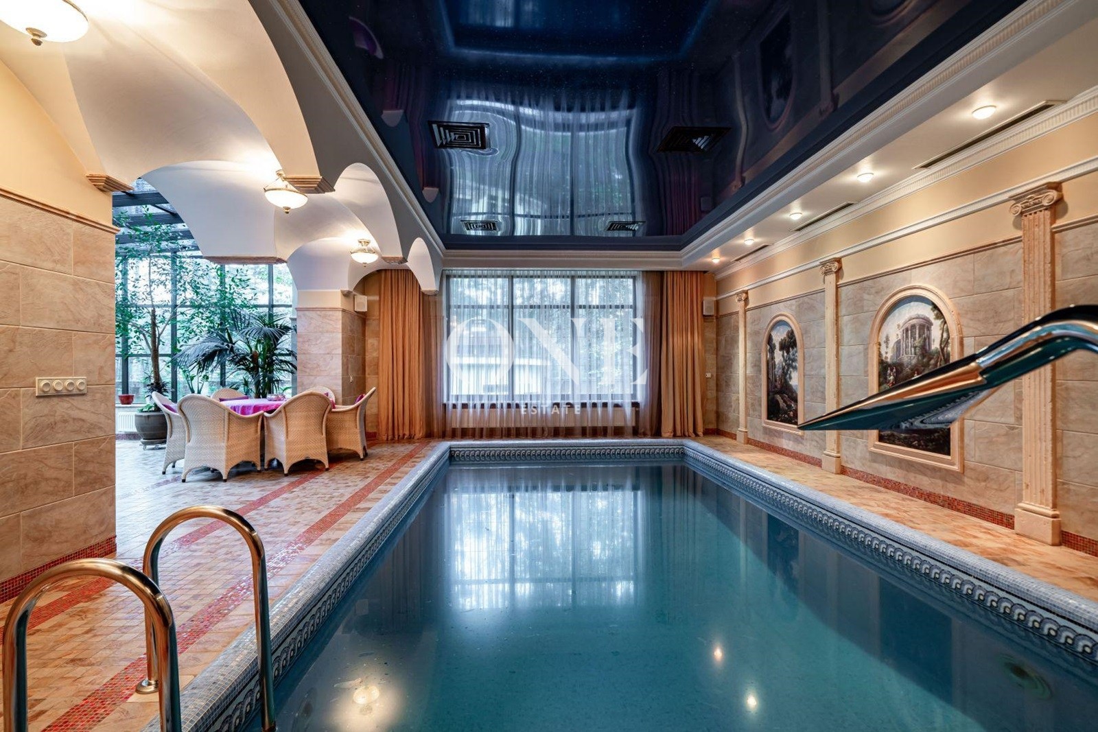 Современный дом с бассейном расположен на живописном участке площадью 30 соток. Общая площадь дома составляет 607 кв.м.