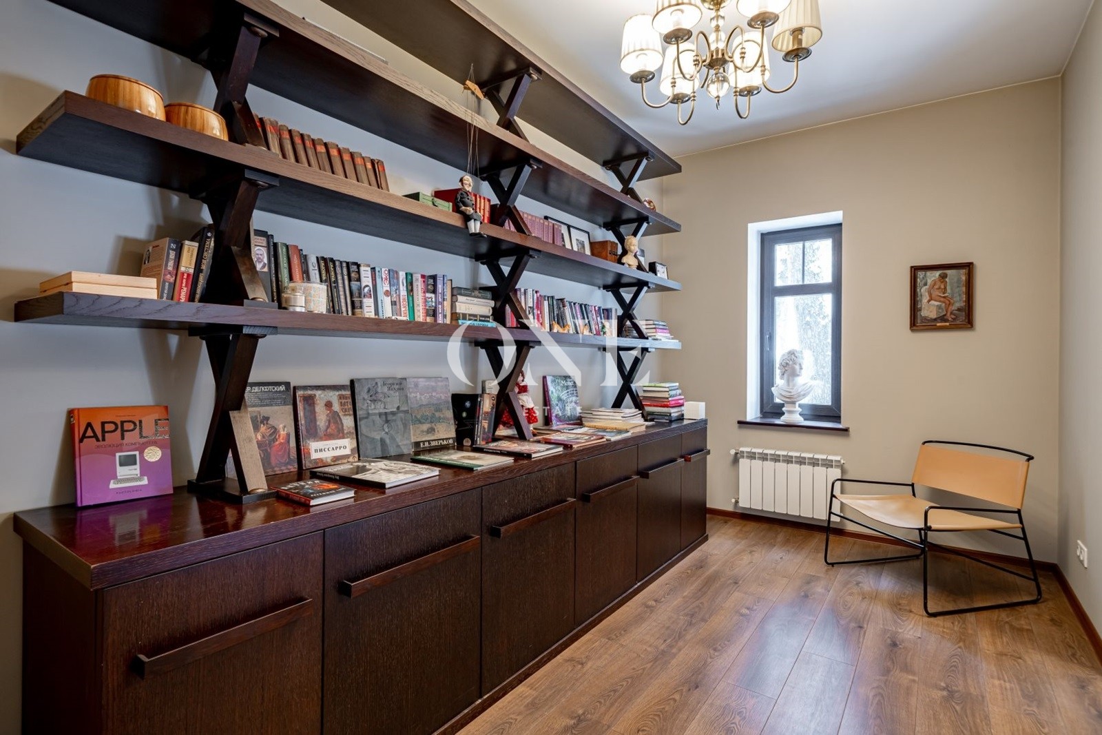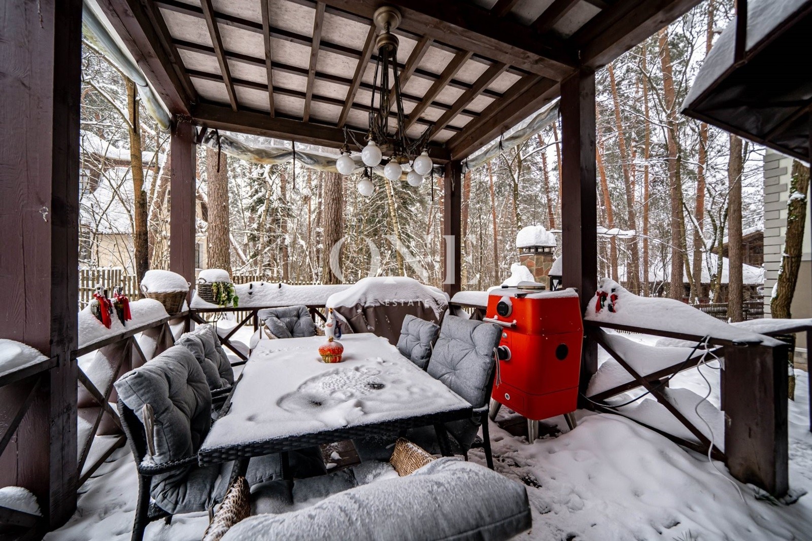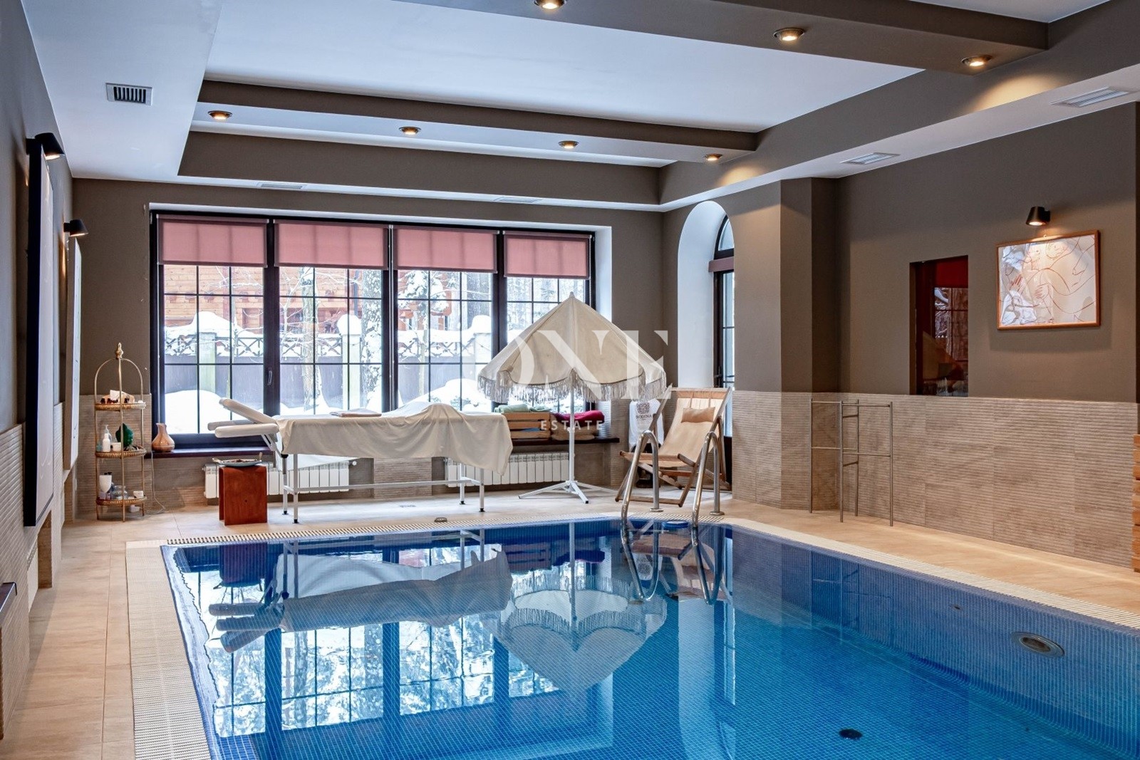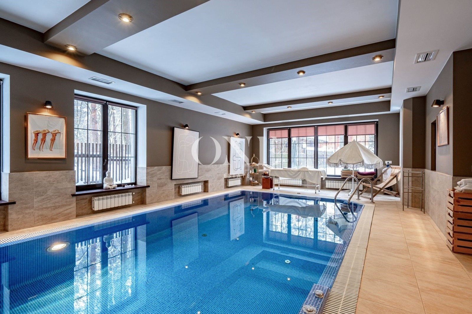 Дом в тихой части Николиной горы, стародачного места в соснах в 24 км от МКАД по Рублево-Успенскому шоссе. 633 метра, 14 соток, 5 спален, бассейн с сауной, балконы с прекрасными видами