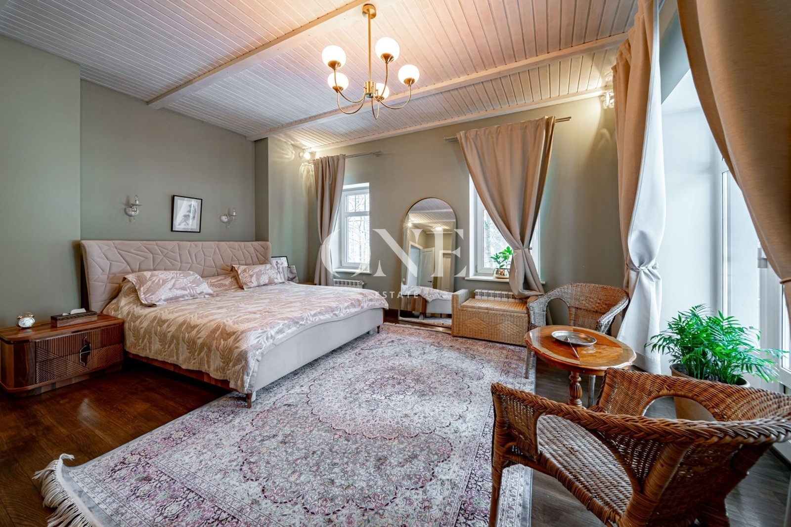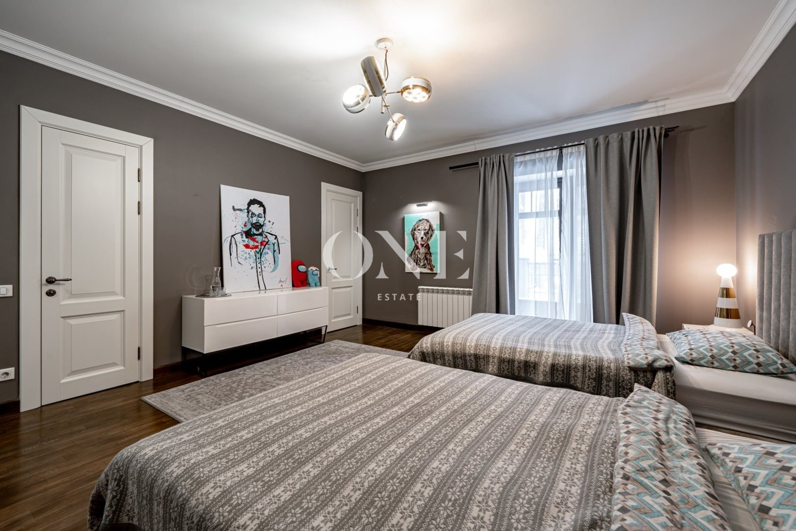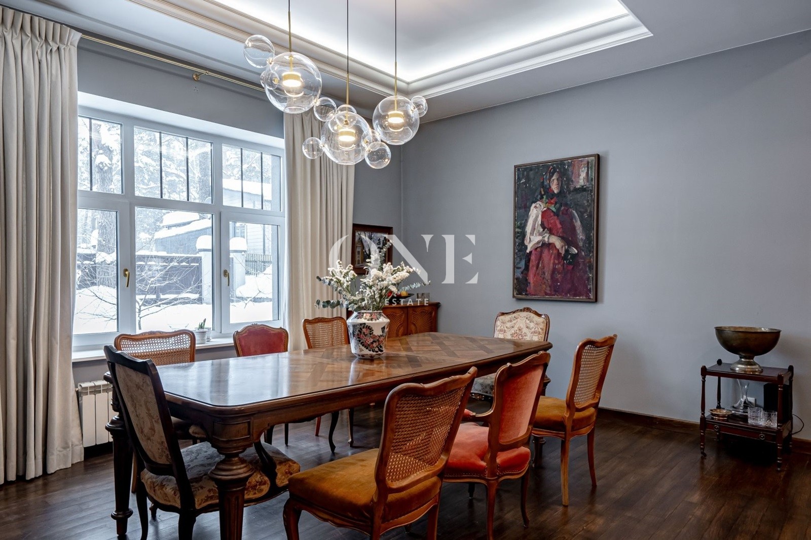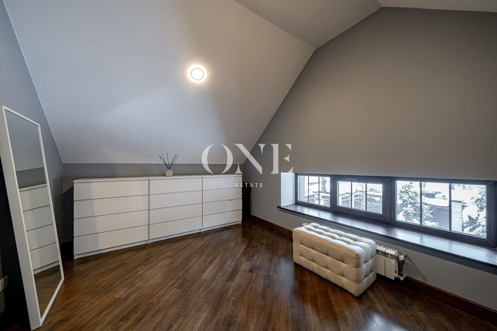 Дом в тихой части Николиной горы, стародачного места в соснах в 24 км от МКАД по Рублево-Успенскому шоссе. 633 метра, 14 соток, 5 спален, бассейн с сауной, балконы с прекрасными видами