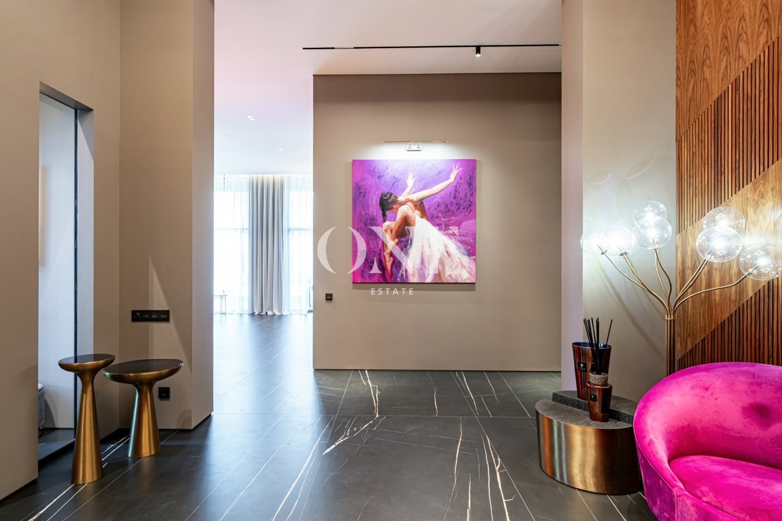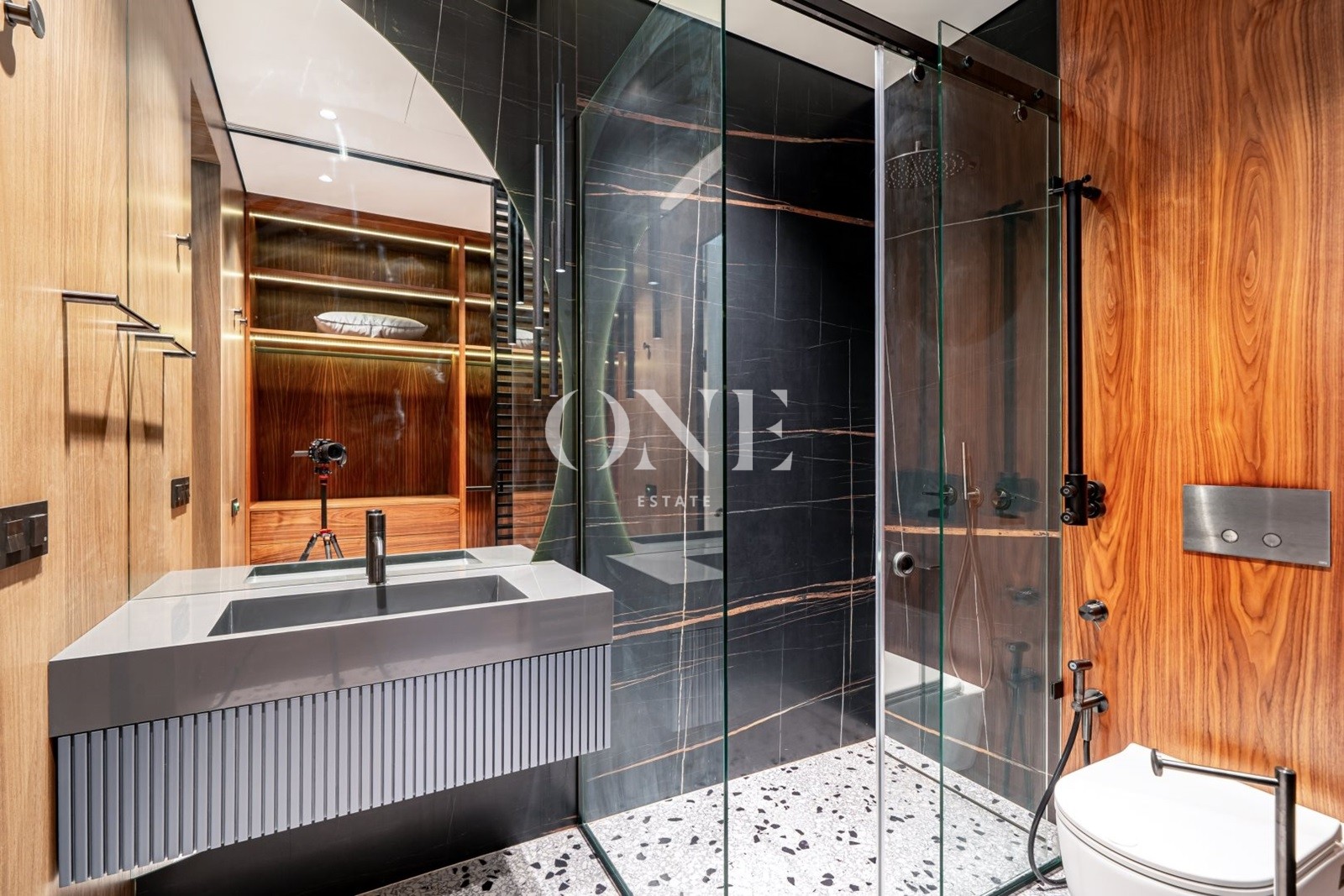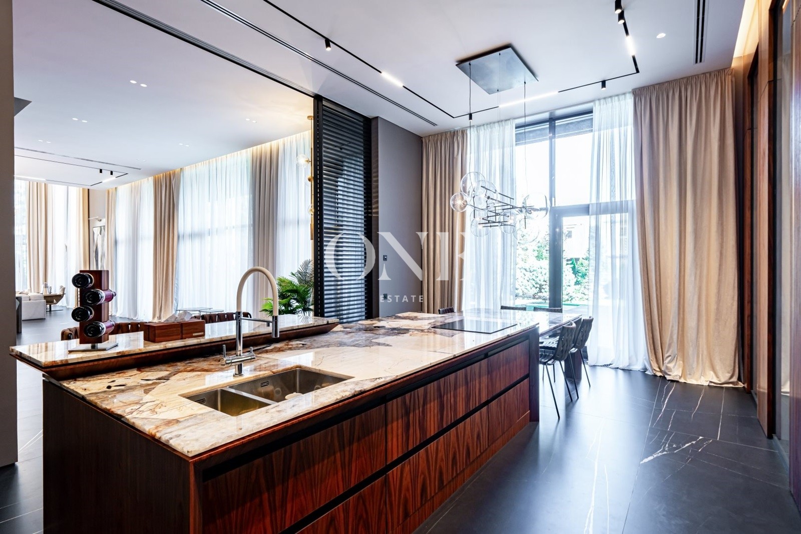 кухня, столовая, гостиная с камином и вторым светом, 2 спальни с собственными гардеробными и с/у, гараж для 2-х автомобилей, SPA-зона с бассейном, хаммамом и зоной отдыха.