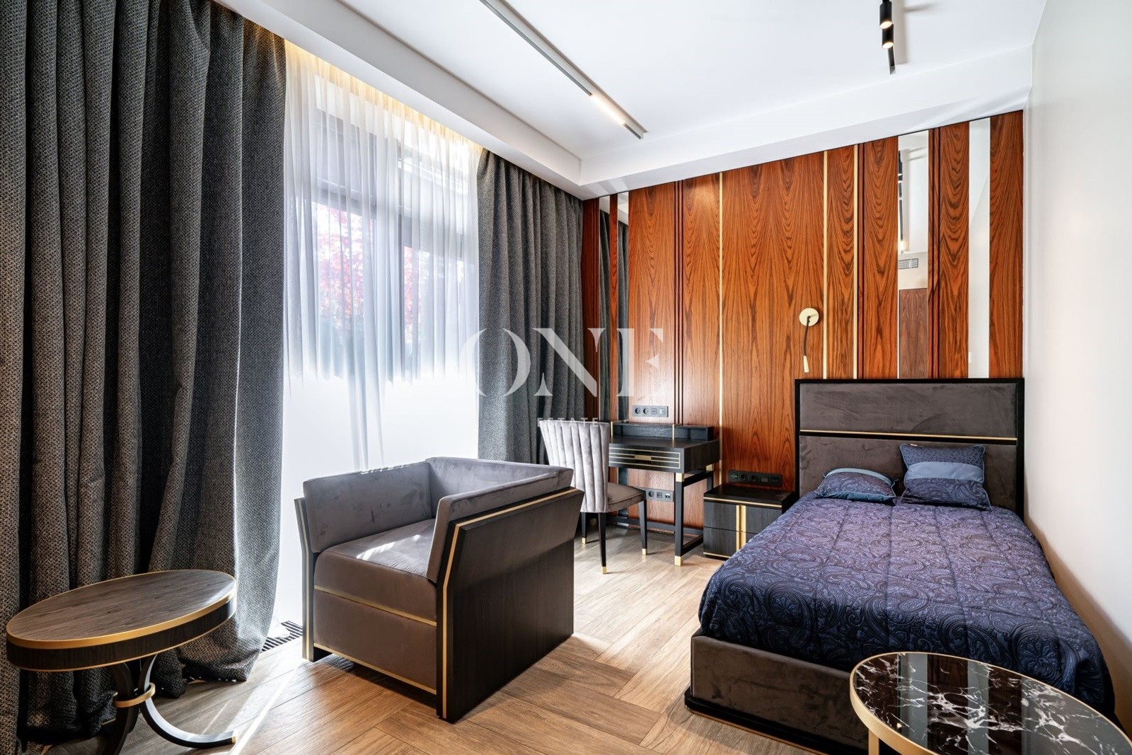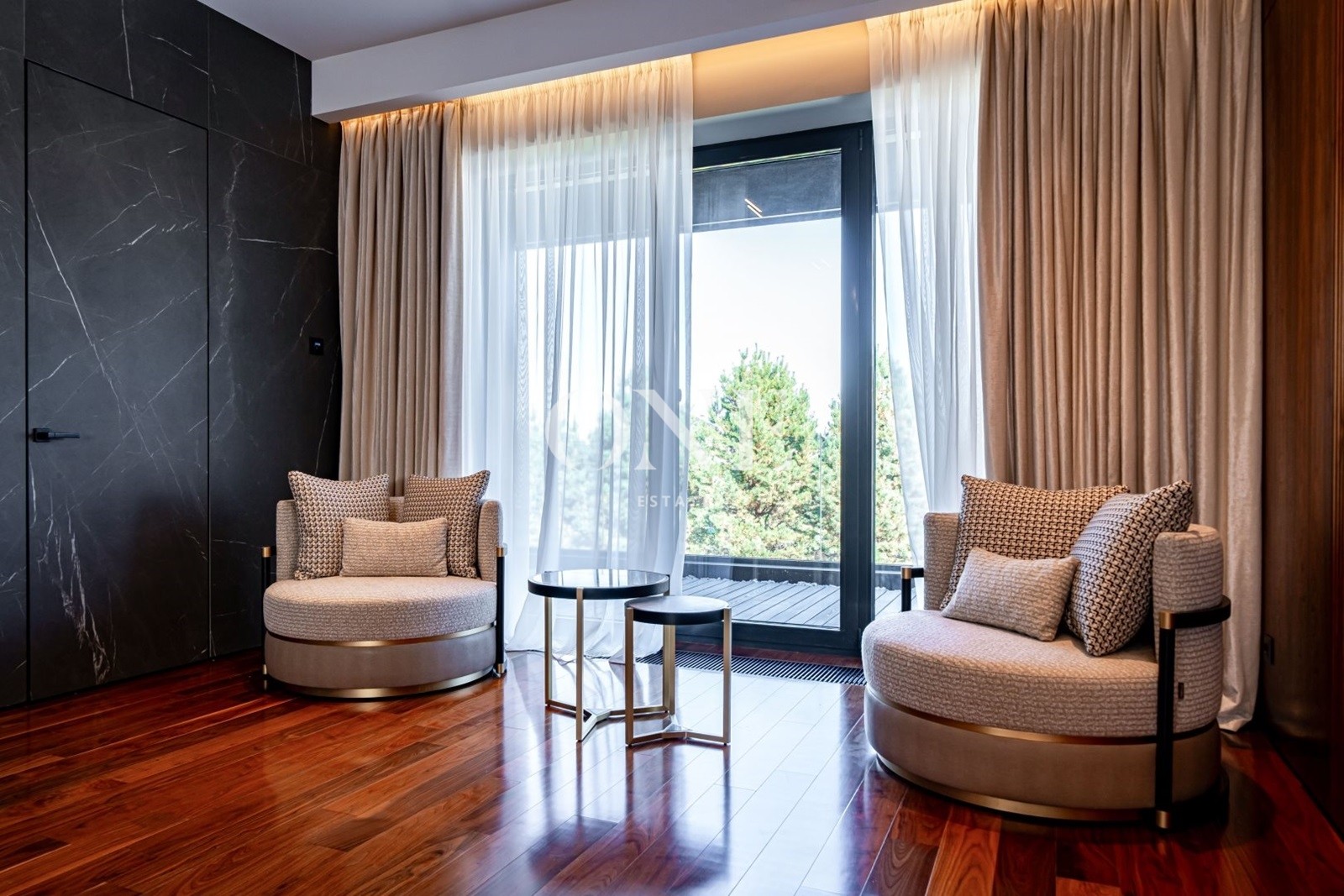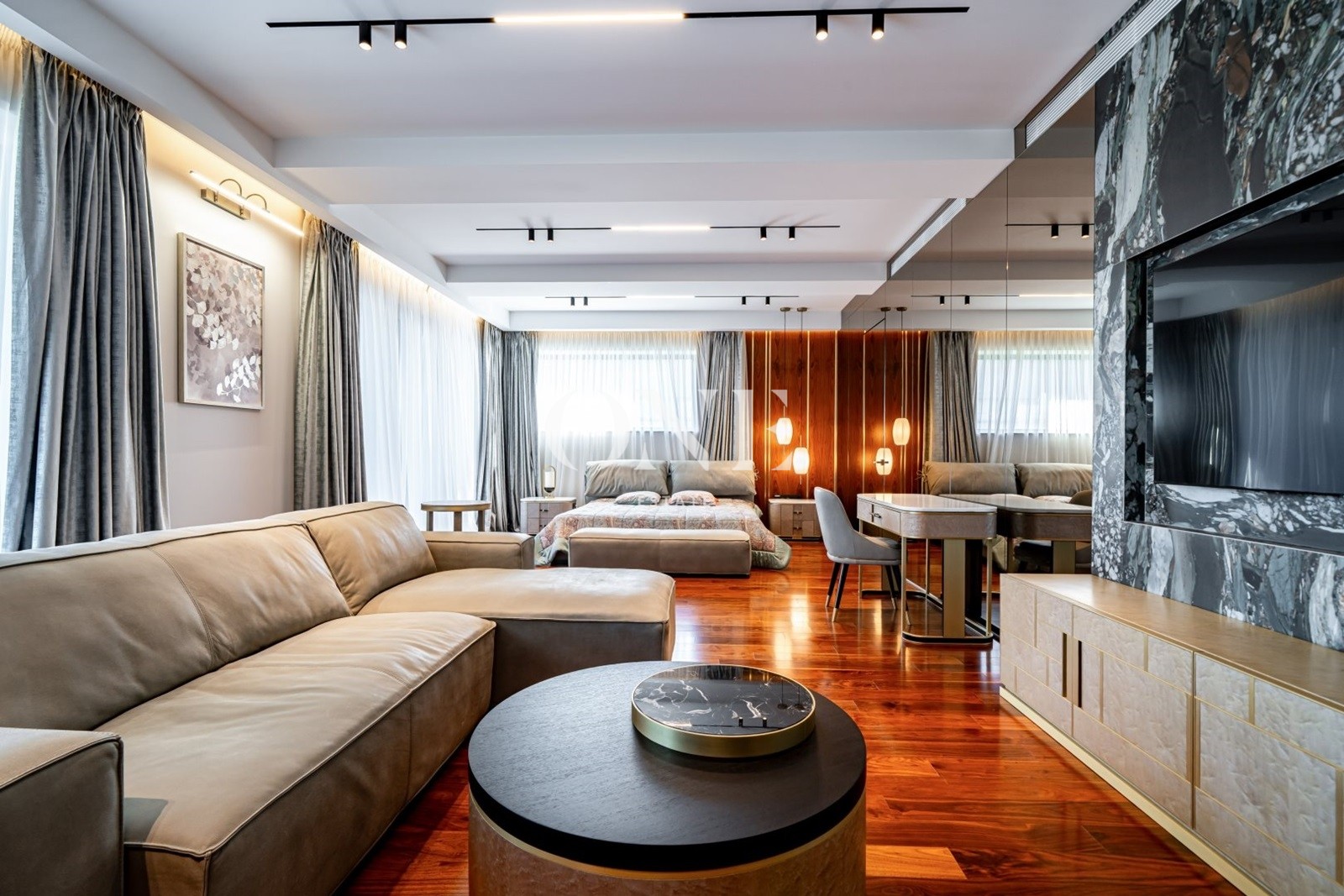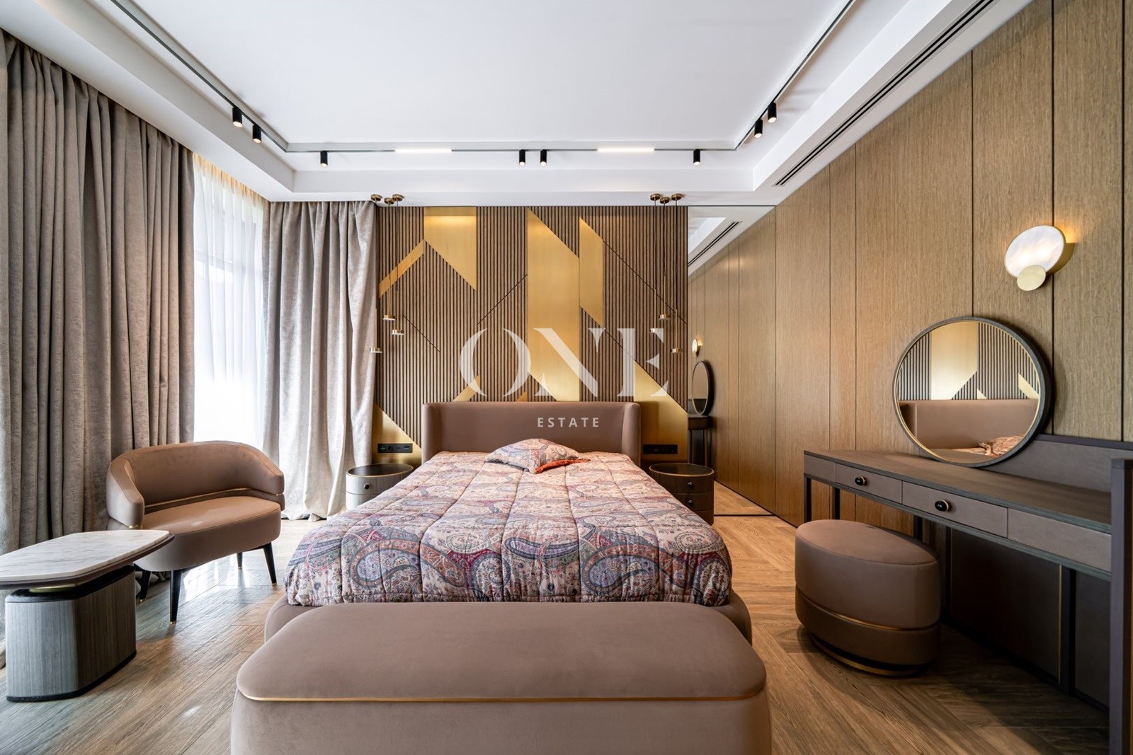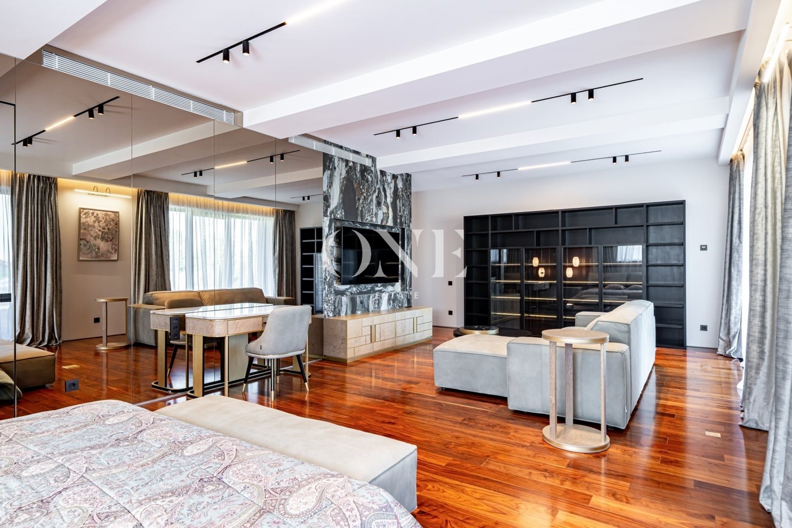 мастер-спальня с гостиной зоной, гардеробной и с/у, спальня с с/у и гардеробной, кабинет (либо дополнительная спальня).