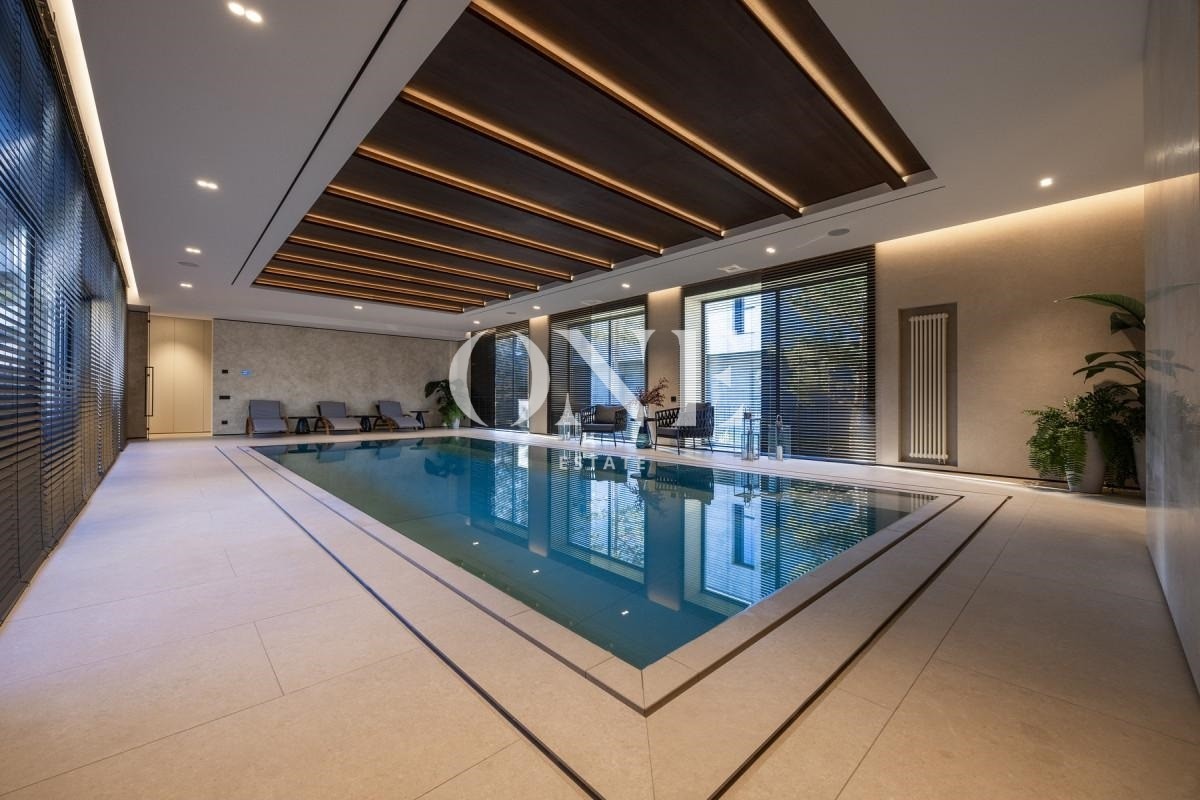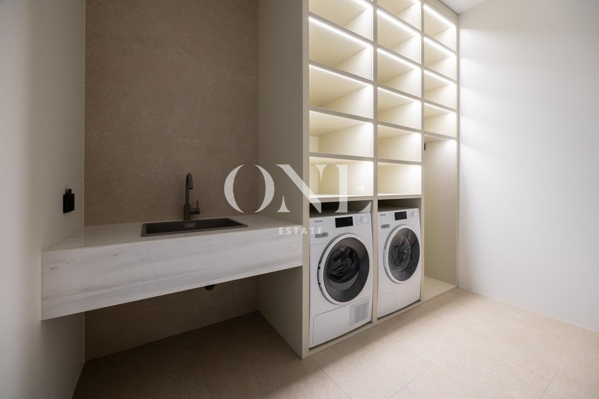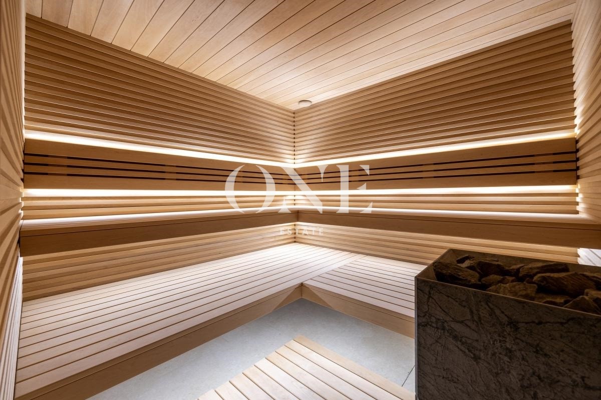 холл, гостиная со вторым светом, столовая, кухня, кладовая, гардеробная - 2 шт., санузел - 3 шт., спальня с ванной комнатой, постирочная, кабинет, бассейн, хаммам, купель, сауна, терраса, котельная, гараж;