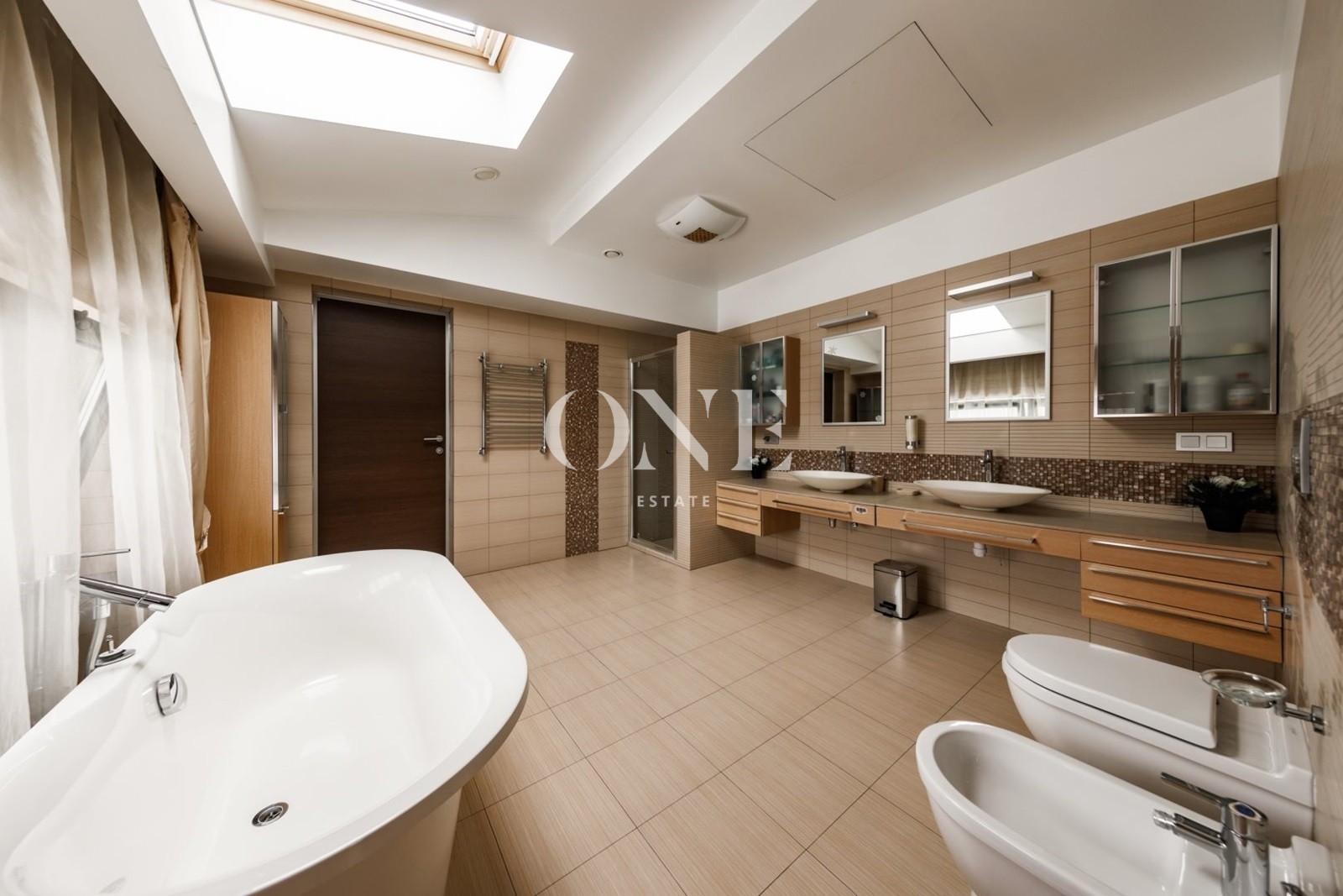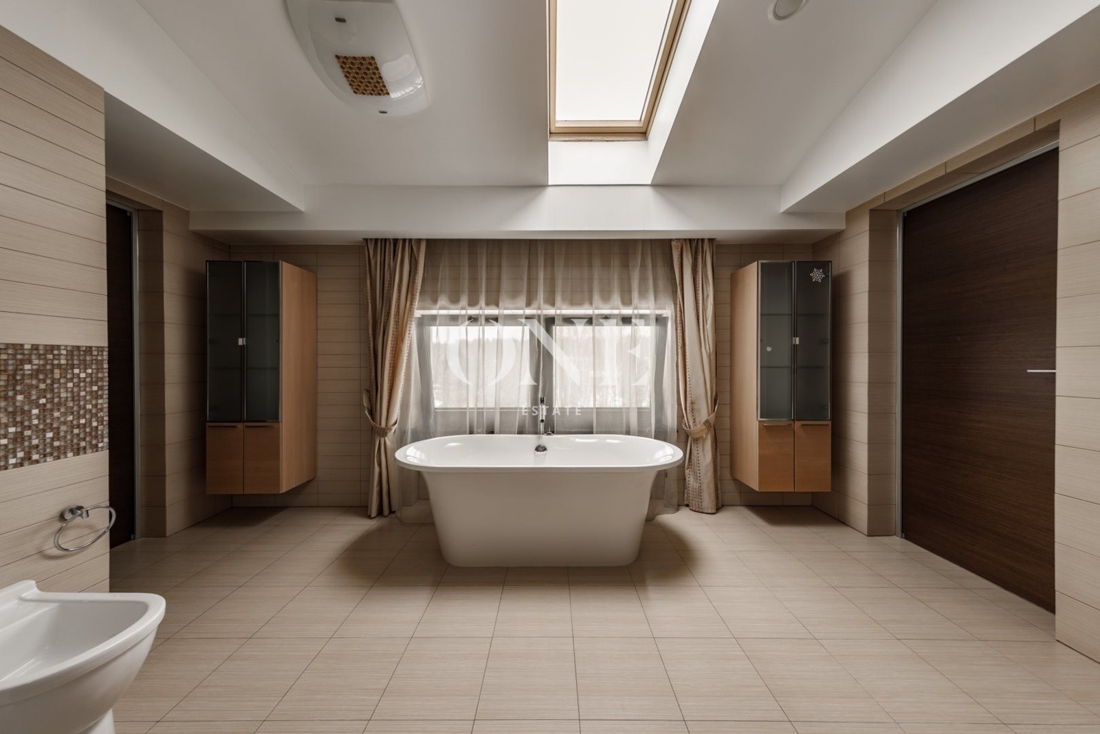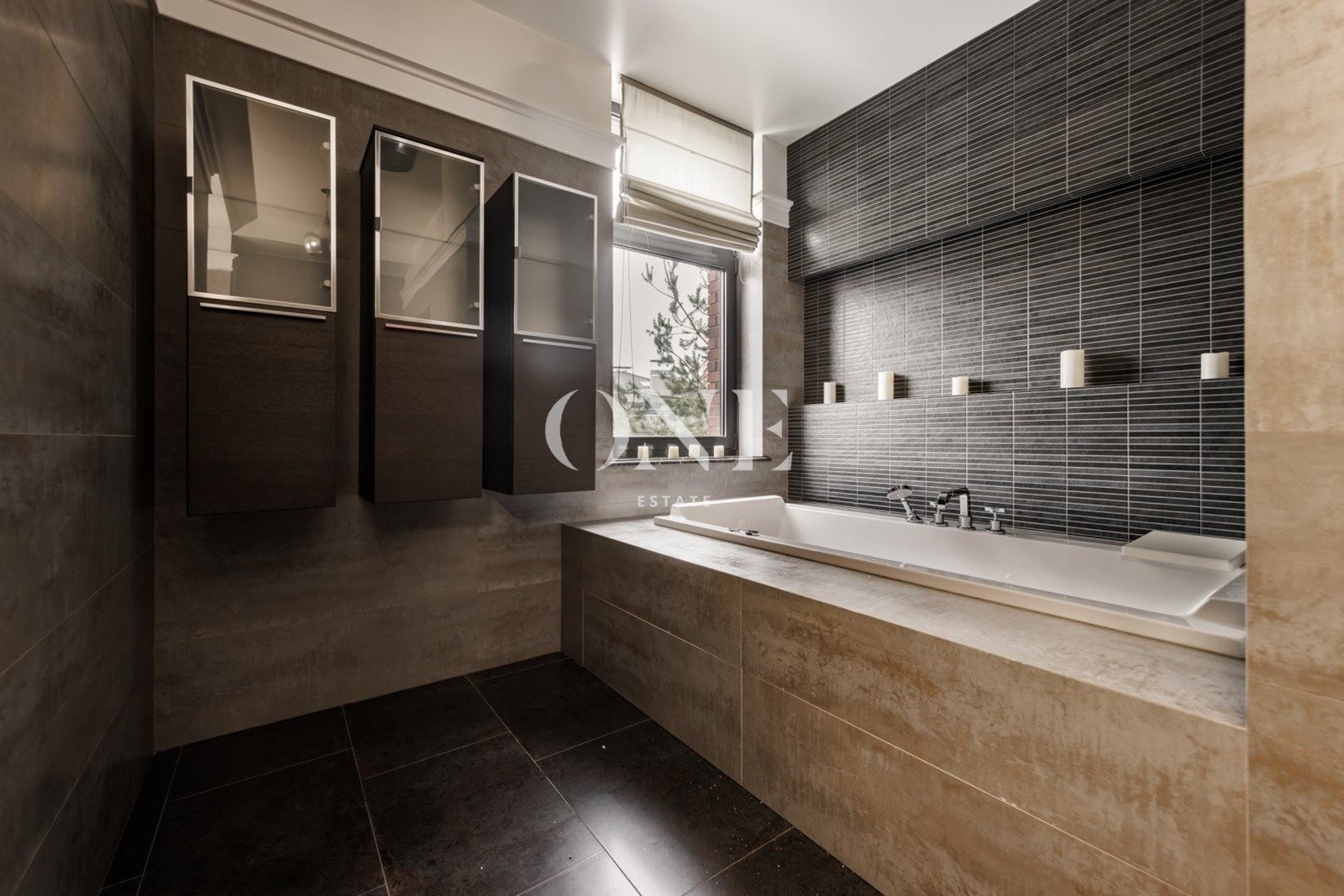 гостиная со вторым светом с видом на лесопарковую территорию, кухня-столовая, кабинет, гостевой с/у, комната для персонала с с/у, постирочная, гараж на 2 машины.