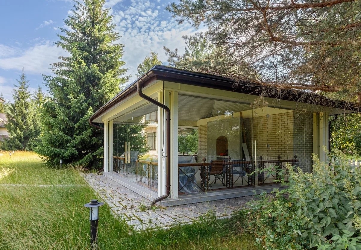 мастер-спальня с гардеробной и с/у, две спальни, каждая с с/у, зимний сад.