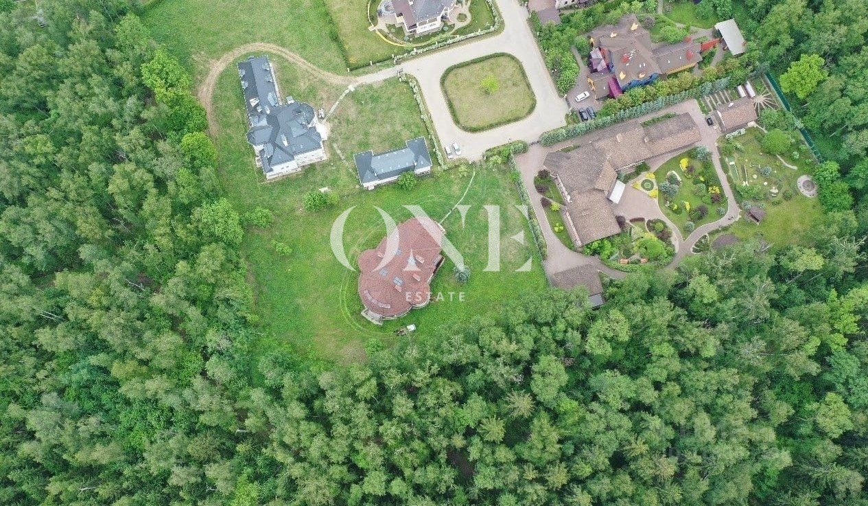 Вокруг особняка много тишины и уединённого пространства, свободного от взглядов посторонних. Дом не только возведён на участке площадью 54 сотки, но и окружён такими же большими владениями.