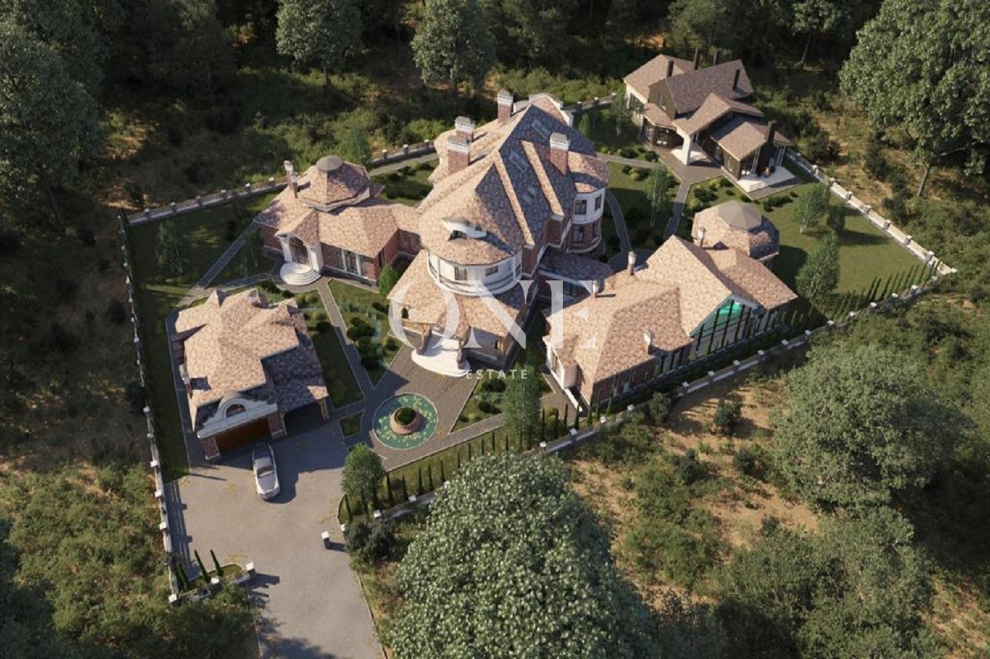В доме возможно создать уютную гостиную с камином, расположенную в полукруглой комнате с выходом террасу и видом на лес. Обустроить кабинет, 5–10 спален, три из которых с собственными ванными и гардеробными. Из них шикарную мастер-спальню с будуаром и выходом на полукруглую террасу с видом на лес.