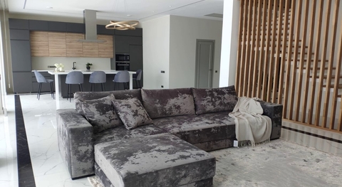 Кухня оборудована 2мя встроенными холодильниками Liebherr, техникой Bosch. Сантехника премиального бренда Laufen, Jacob Delafon, инженерная доска дуб, керамогранит Италия, эксклюзивная отделка стен, потолка, теплый водяной пол, качественные окна с алюминиевым контуром. Дом полностью готов к комфортному круглогодичному проживанию. Произведена качественная инженерия коттеджа (котел Viessmann, одна из лучших на сегодняшний день систем очистки, смягчения воды и т.д). Площадка на 2 машиноместа, автоматические ворота.
