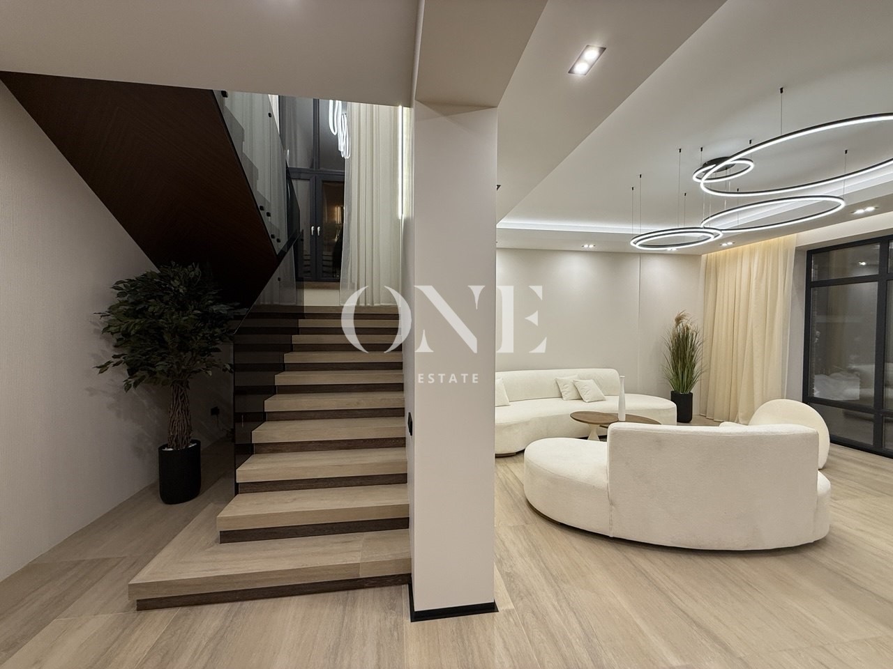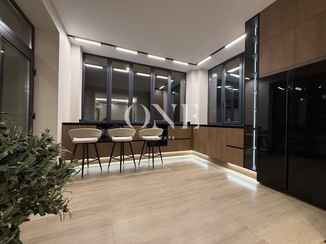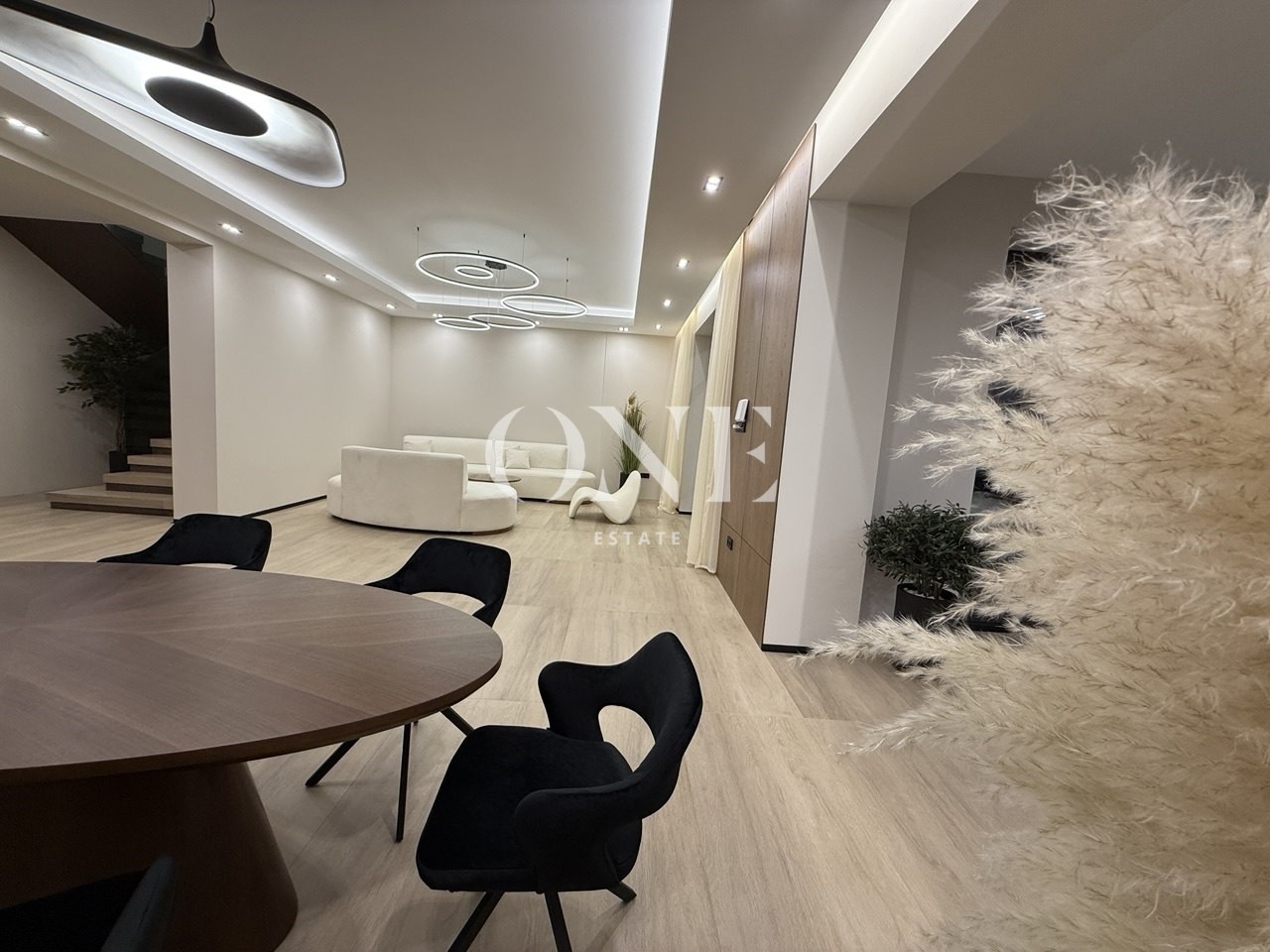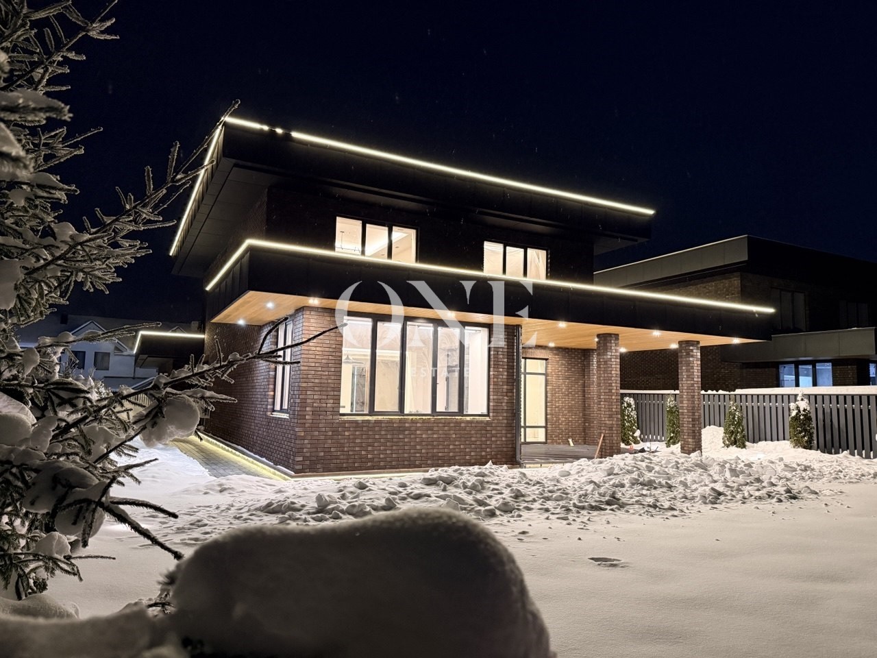 В доме много света за счет большой площади остекления. На первом этаже теплые водяные полы, установлена приточно-вытяжная вентиляция с рекуперацией. Конструктив дома выдерживает размещение на плоской кровле бассейна и спа зоны.