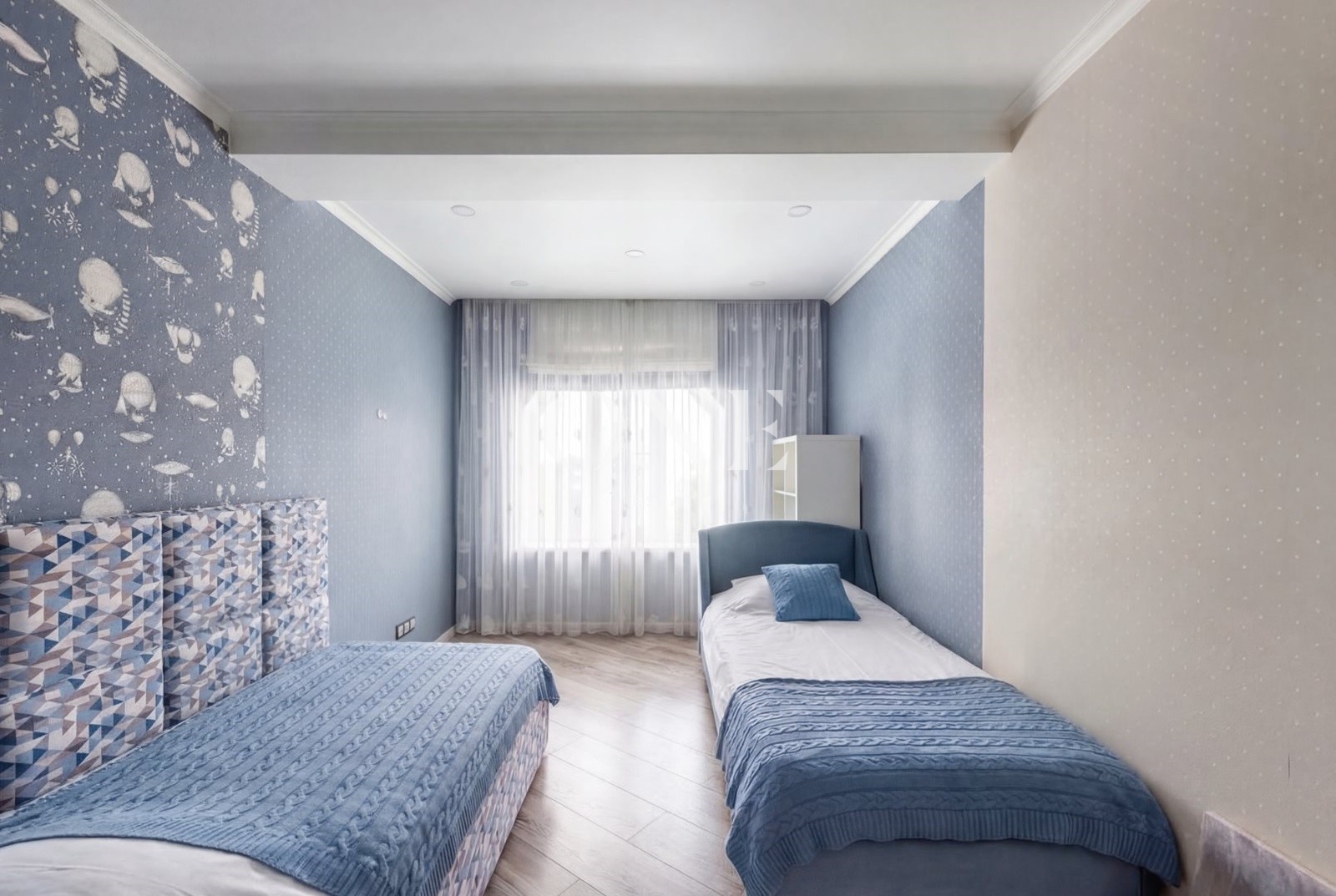 2 спальни; санузел с ванной; мастер спальня с гардеробной и санузлом с душем.