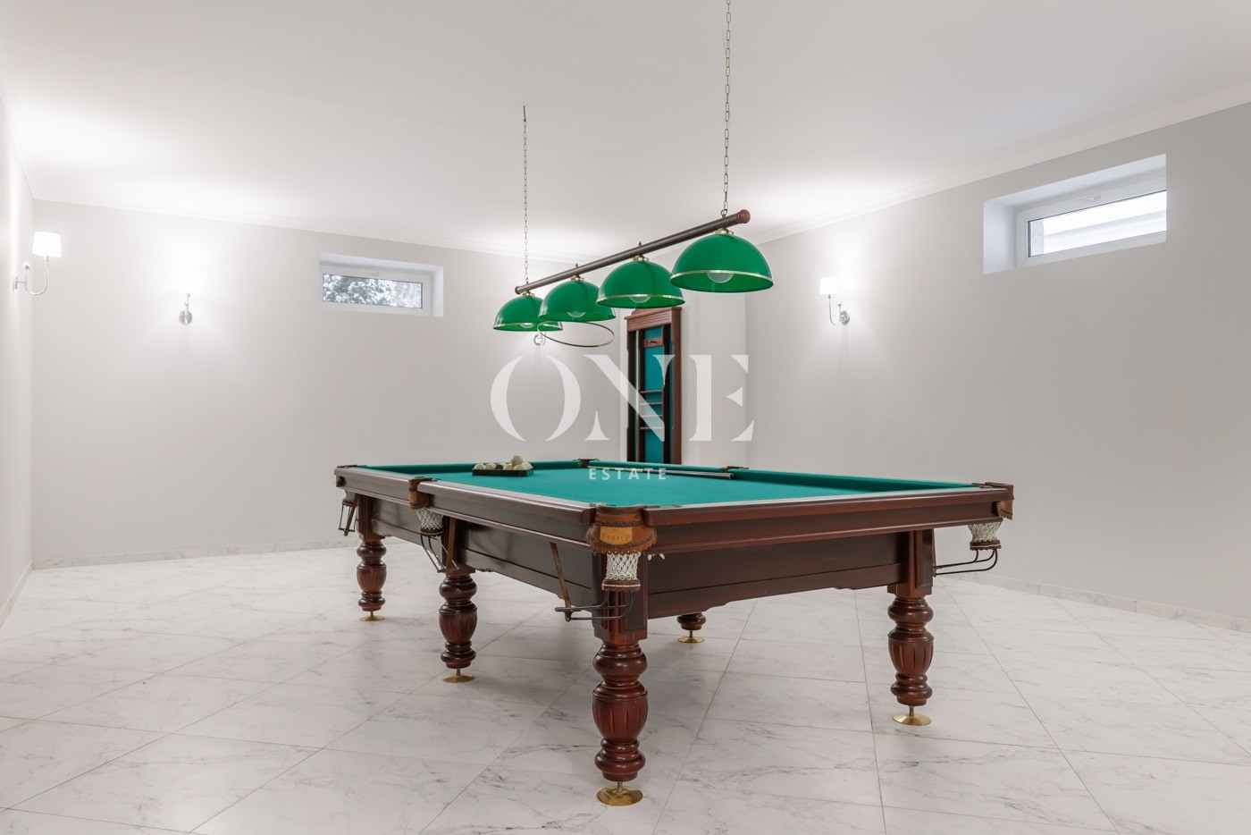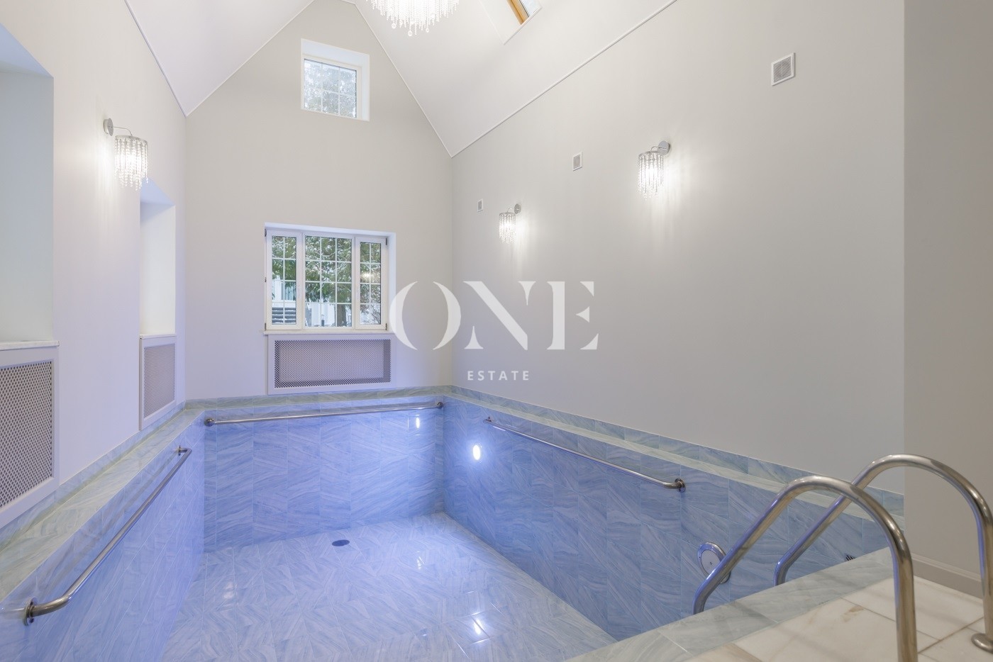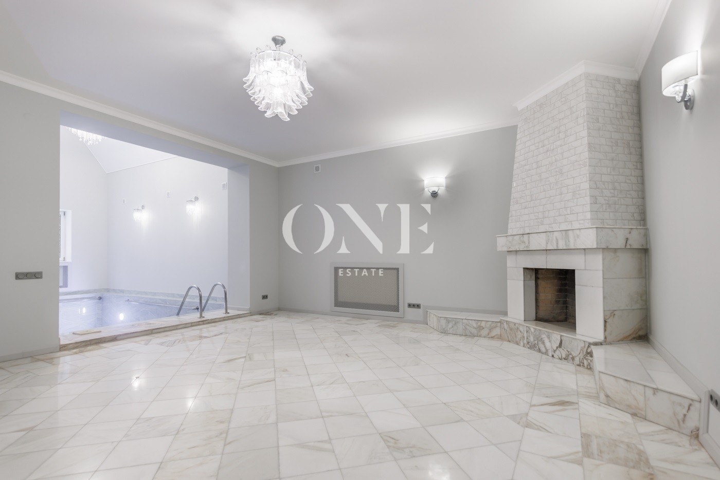 бассейн, баня, гостиная с камином, кухня, санузел, закрытая терраса с зоной барбекю.