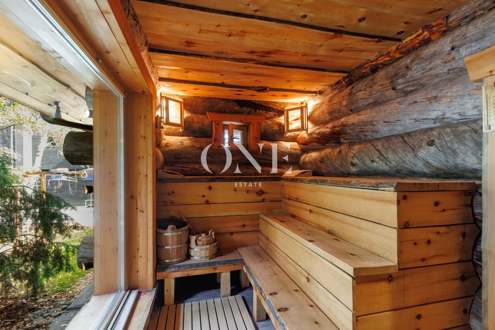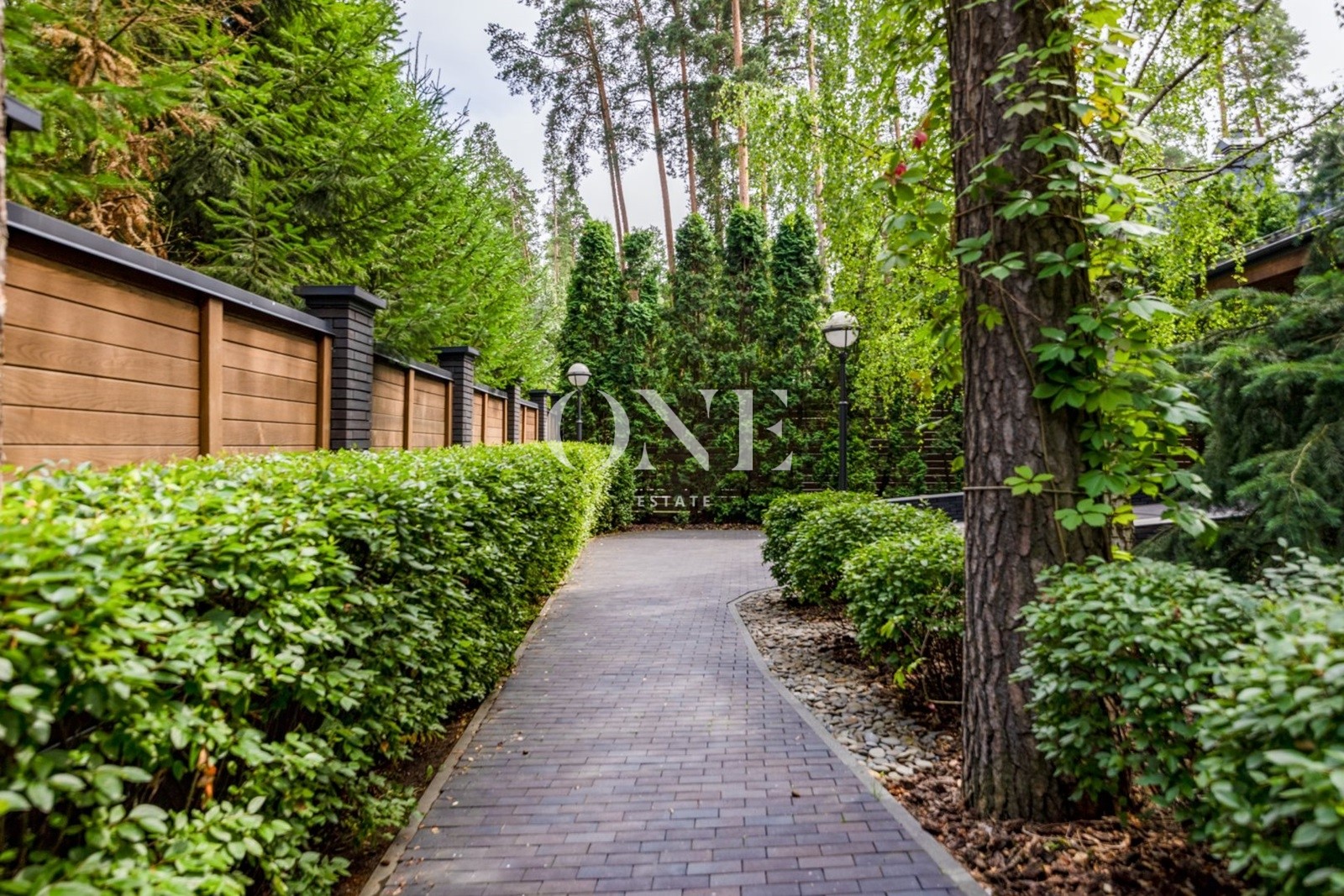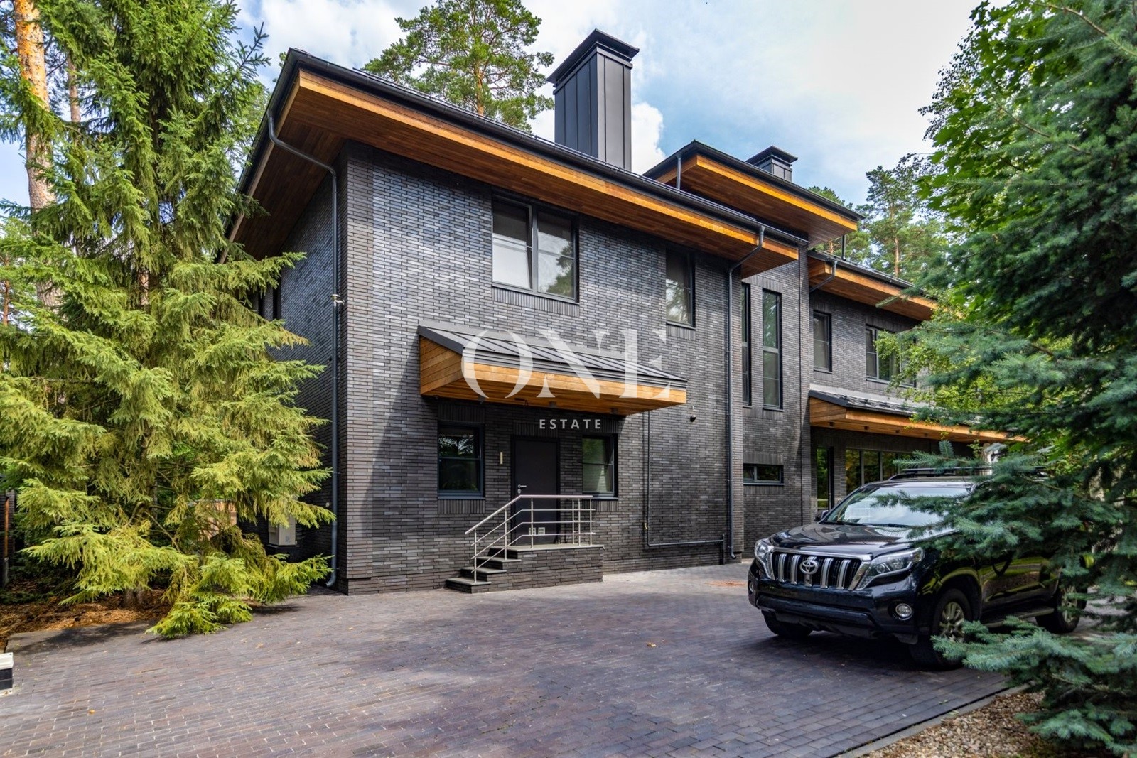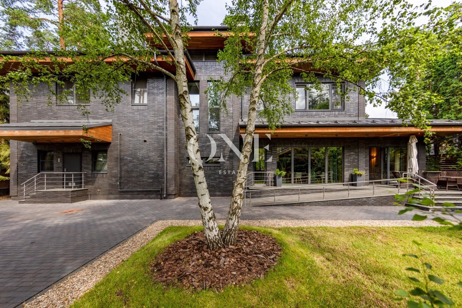 Двухэтажный загородный дом в современном стиле площадью 440 м² и отдельный SPA-блок расположены на лесном участке 16 соток.