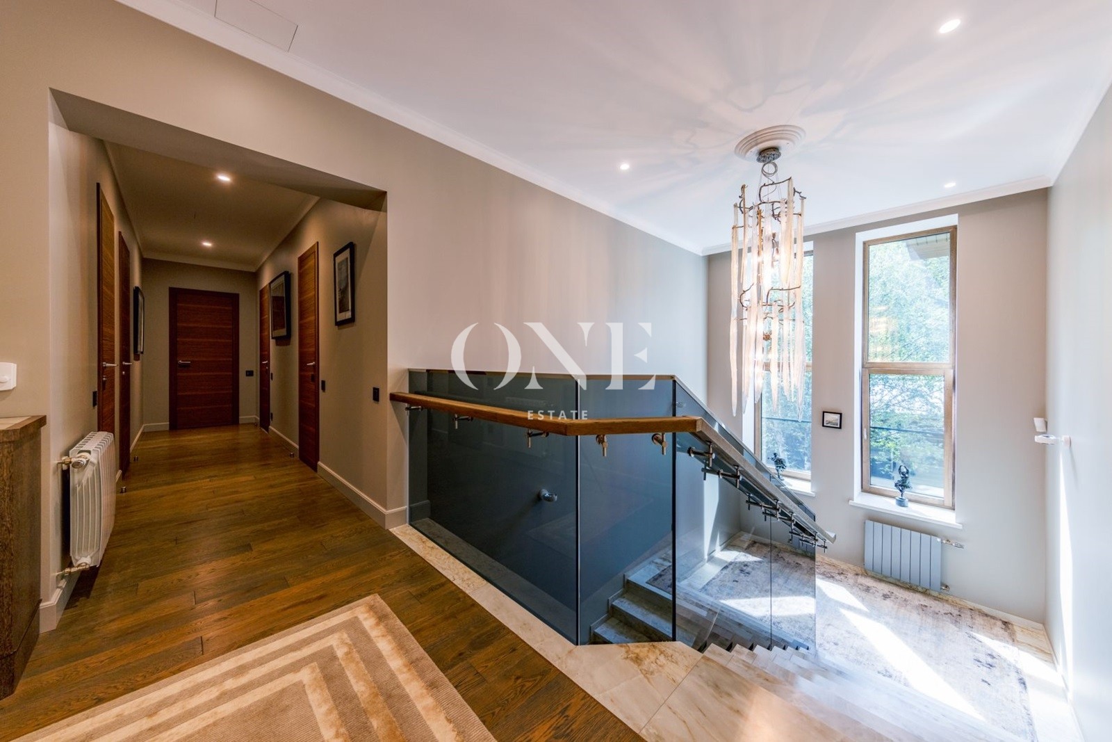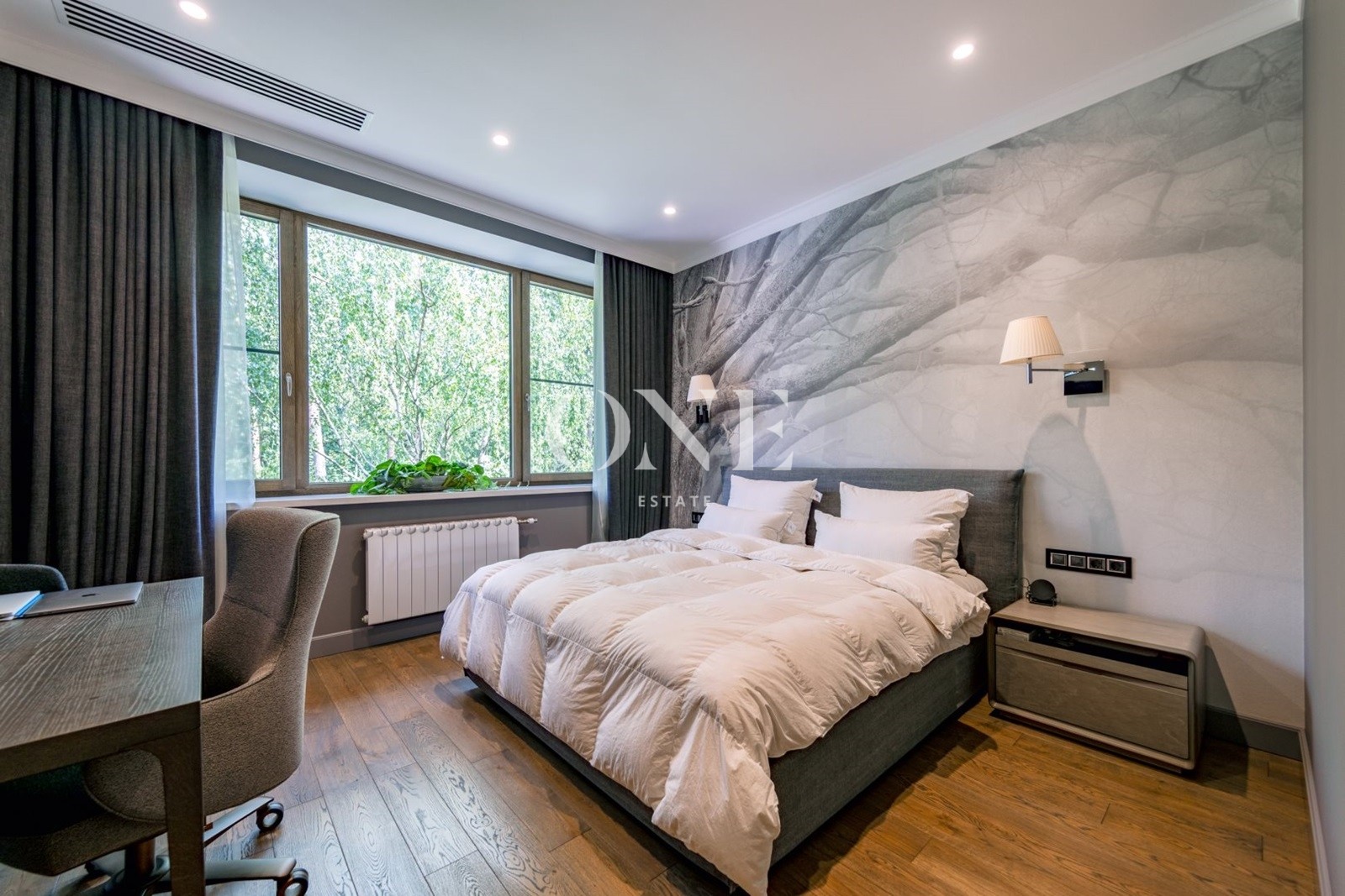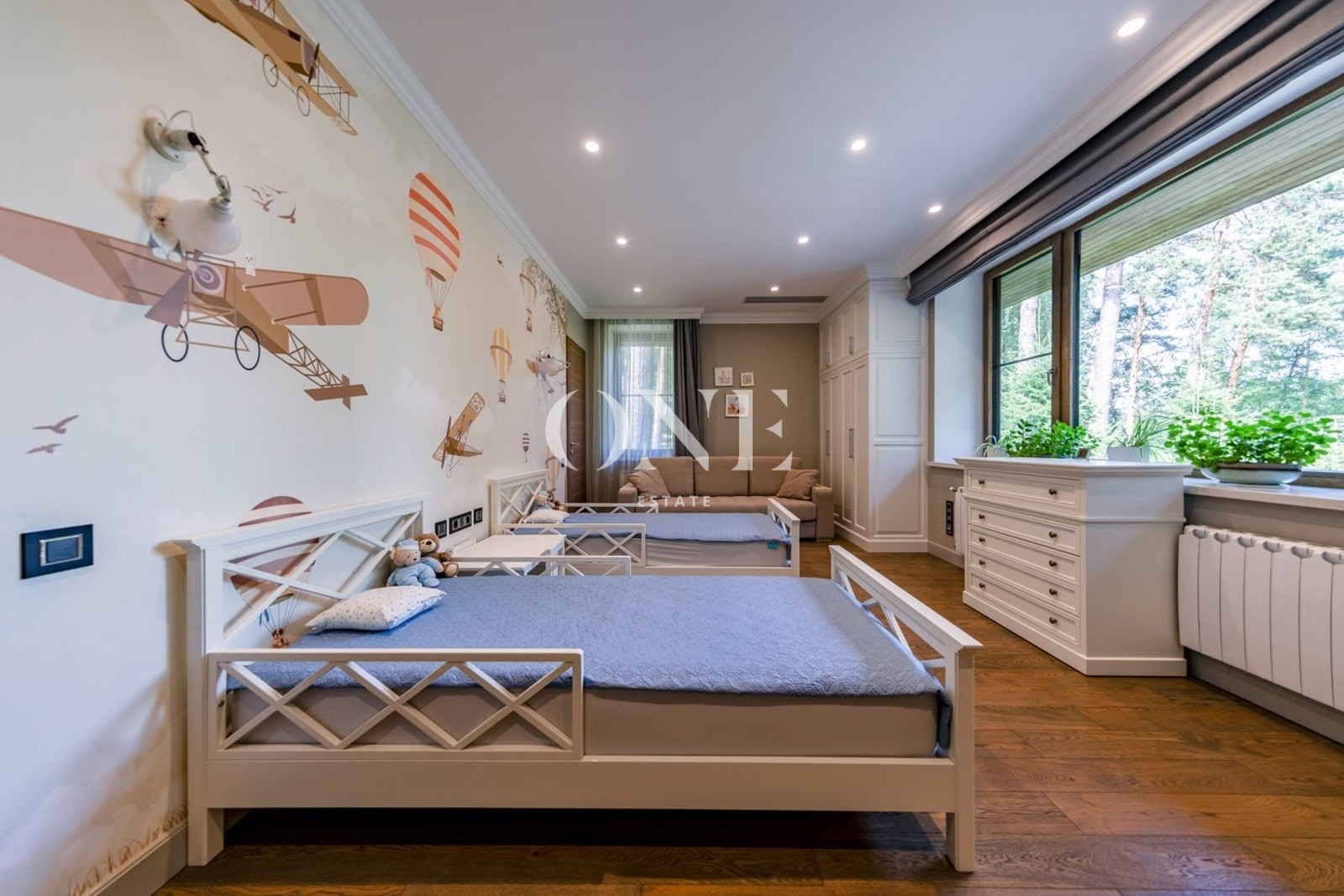 спальня родителей, две гардеробные зоны, ванная комната, гостевая спальня, ванная комната, детский блок спальня, комната для няни с душем, кухня для детей, собственный вход с первого этажа.