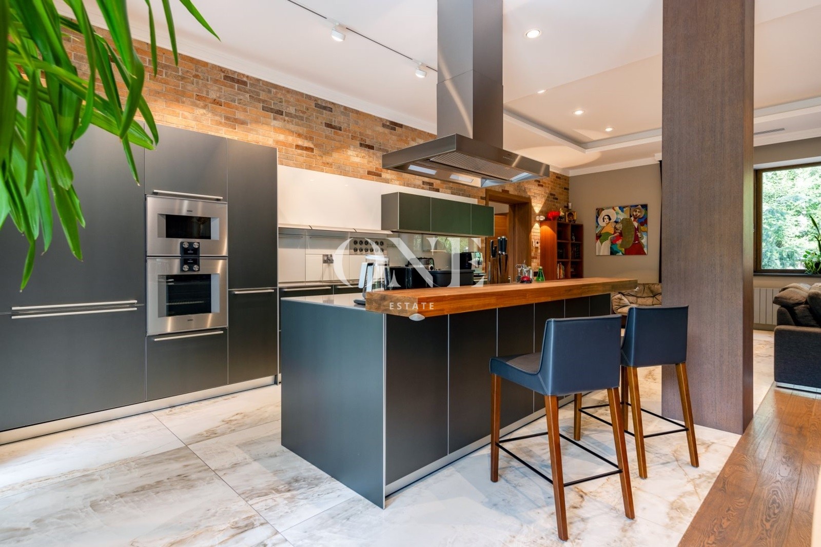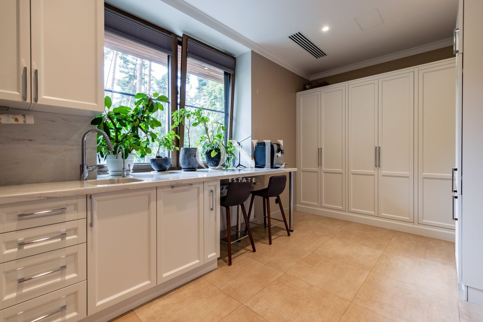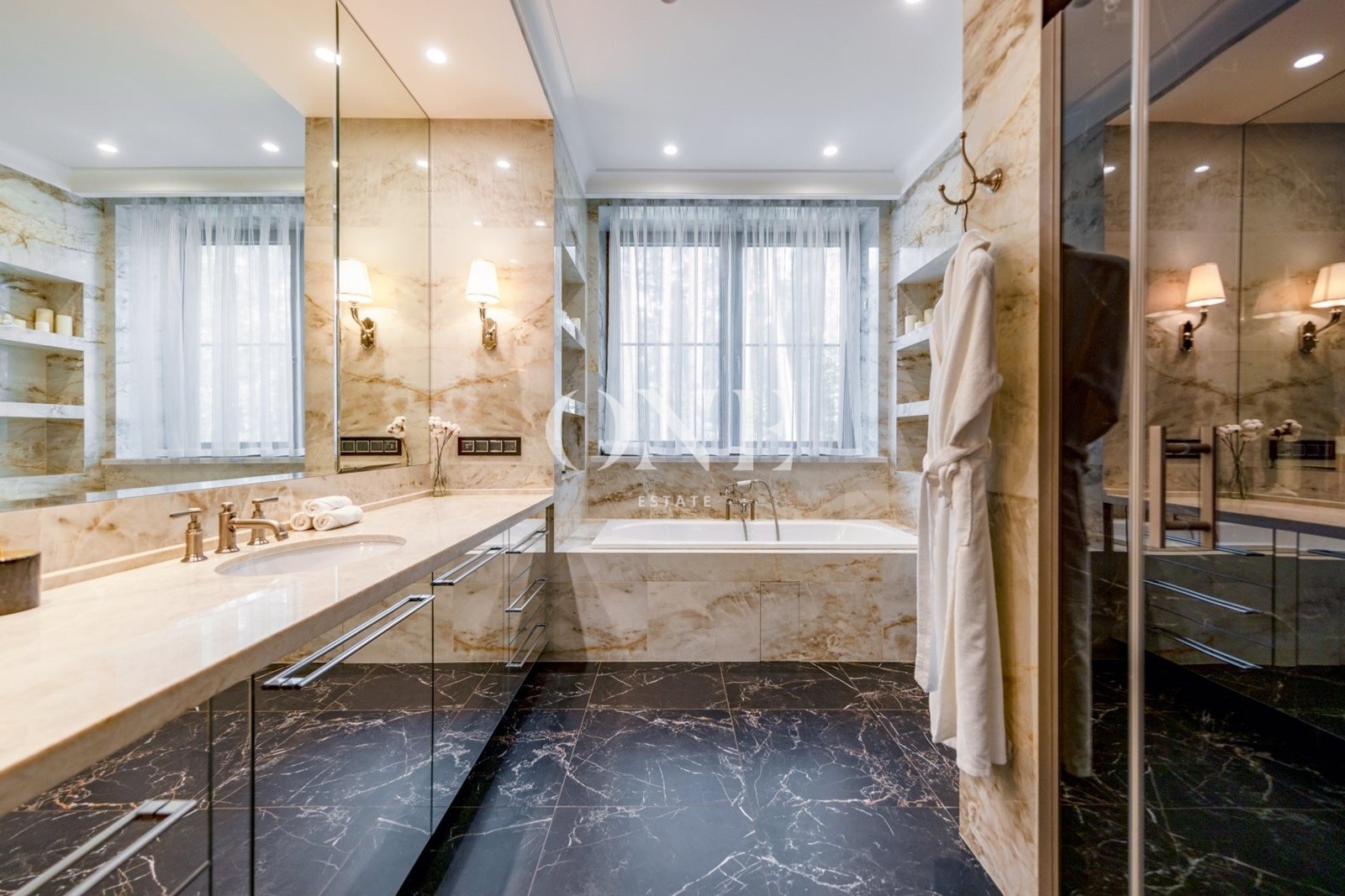 спальня родителей, две гардеробные зоны, ванная комната, гостевая спальня, ванная комната, детский блок спальня, комната для няни с душем, кухня для детей, собственный вход с первого этажа.
