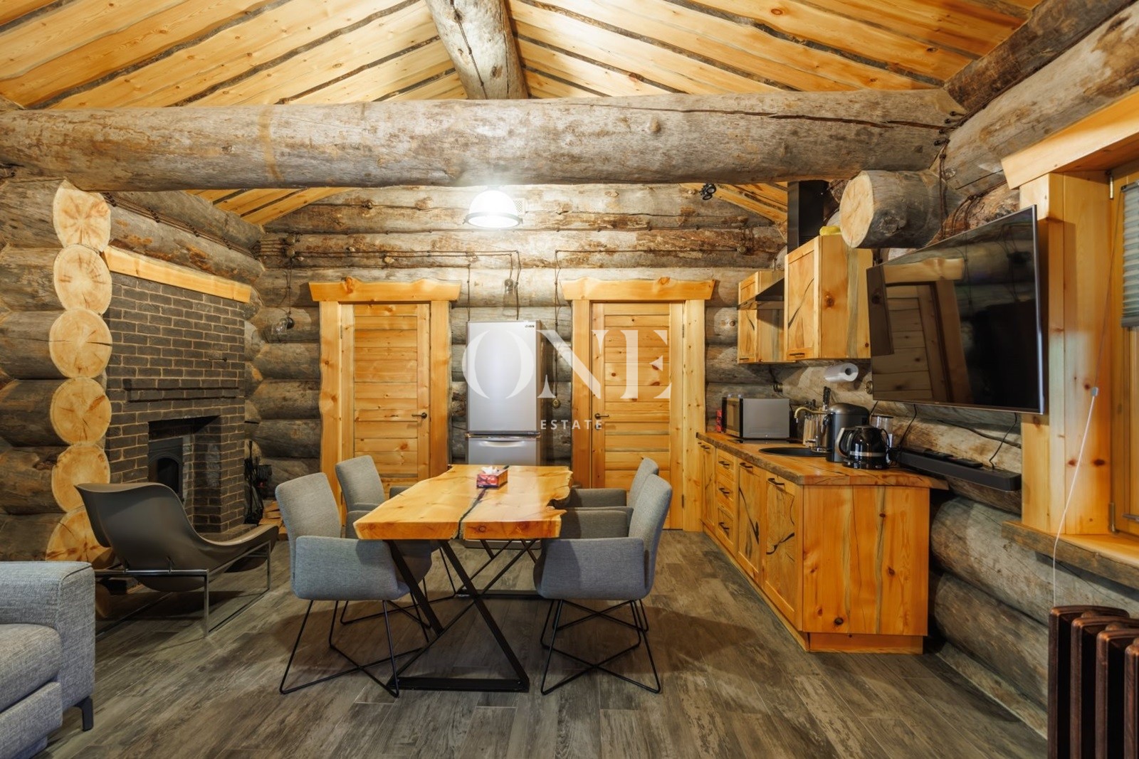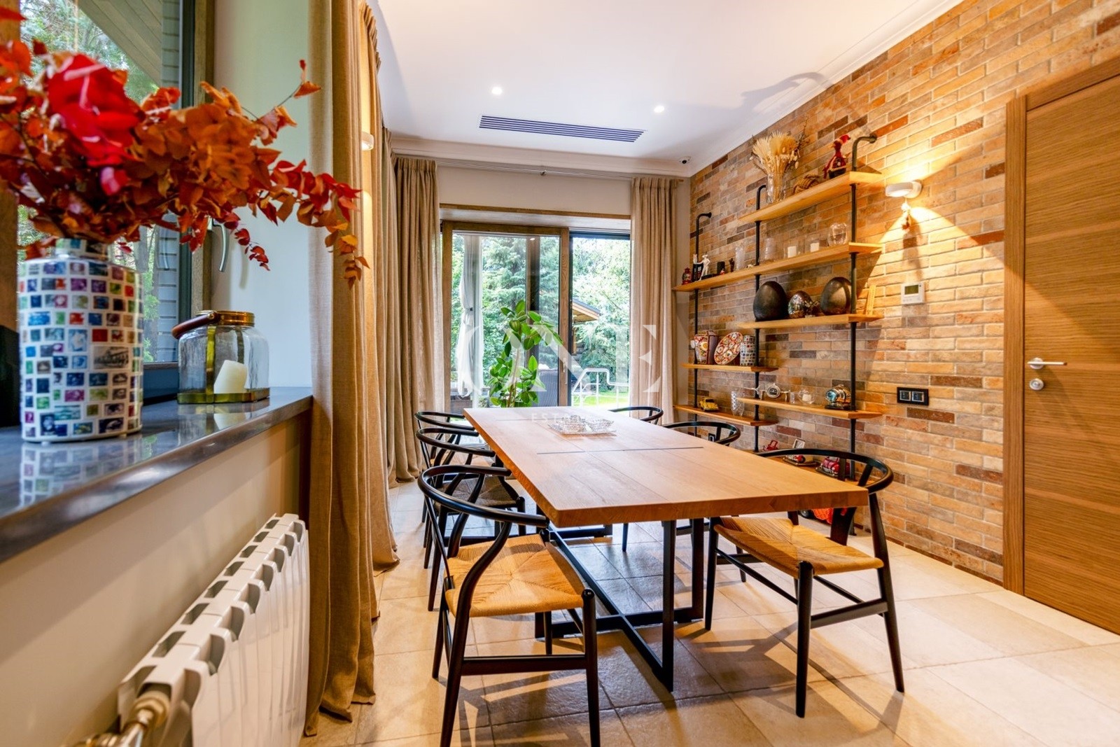 гостиная, кухня, столовая, комната для персонала-постирочная, терраса, выход на придомовую территорию, гараж на два автомобиля.