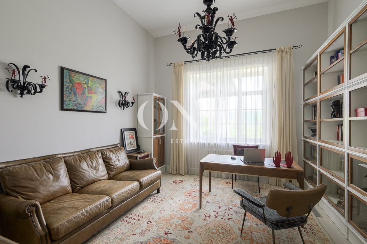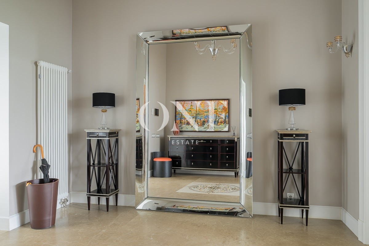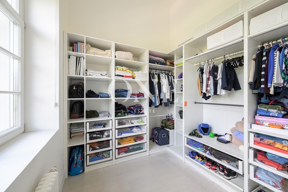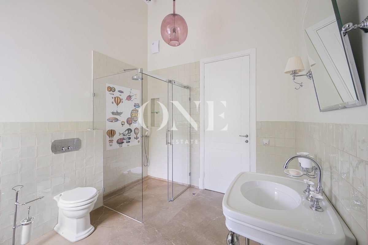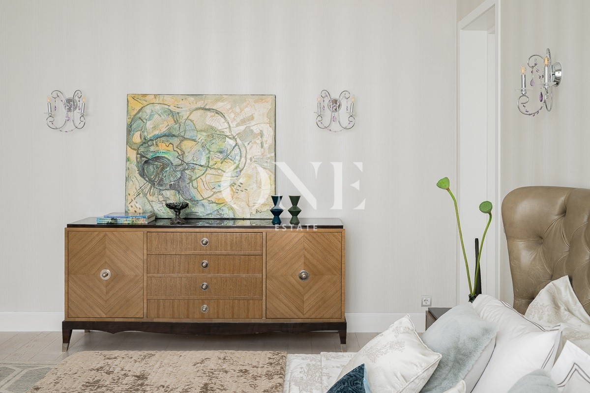 Одноэтажный дом вдохновляет своей монументальностью: высота потолков от 4 до 6 метров добавляет объёма и воздушности, а высококачественные отделочные материалы — мрамор, травертин и натуральное дерево — подчеркивают статус и утончённый вкус владельцев. Внутреннее пространство включает пять комнат, среди которых — просторная гостиная, столовая и кухня, а также кабинет для работы и постирочная. Особое внимание уделено зоне отдыха: мастер-спальня с собственной ванной комнатой и гардеробной, две детские спальни с отдельными гардеробными и санузлами создают комфортные условия для всей семьи.