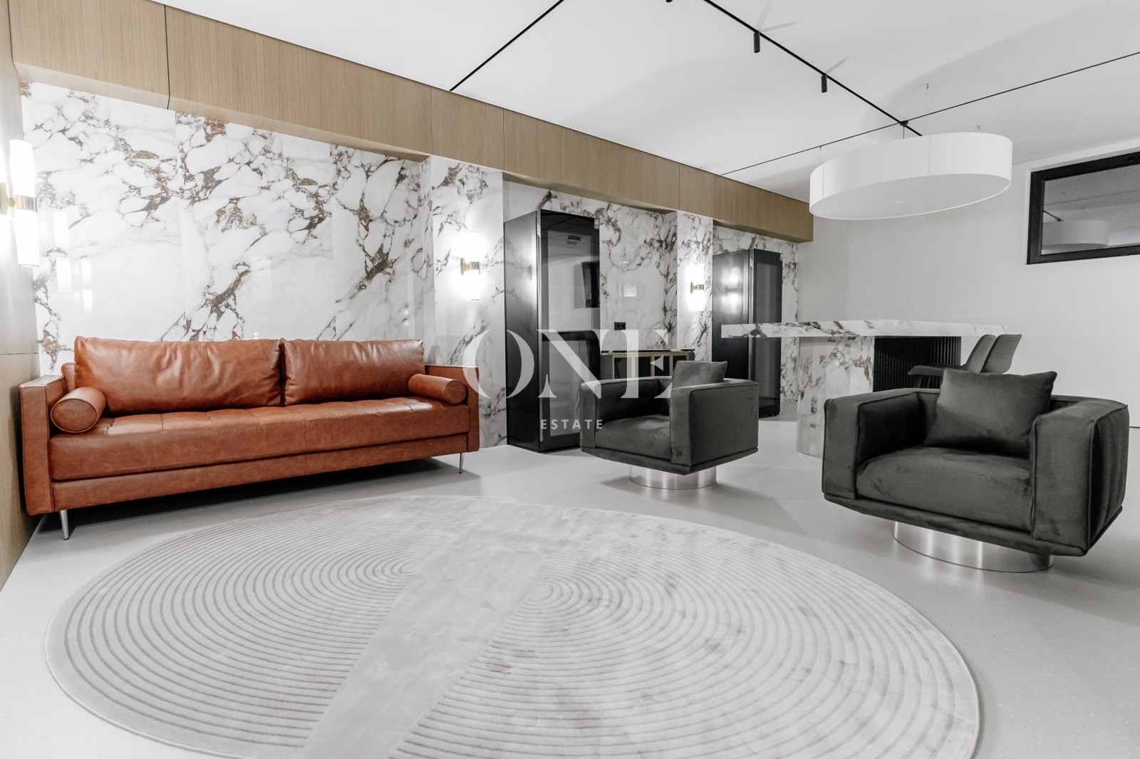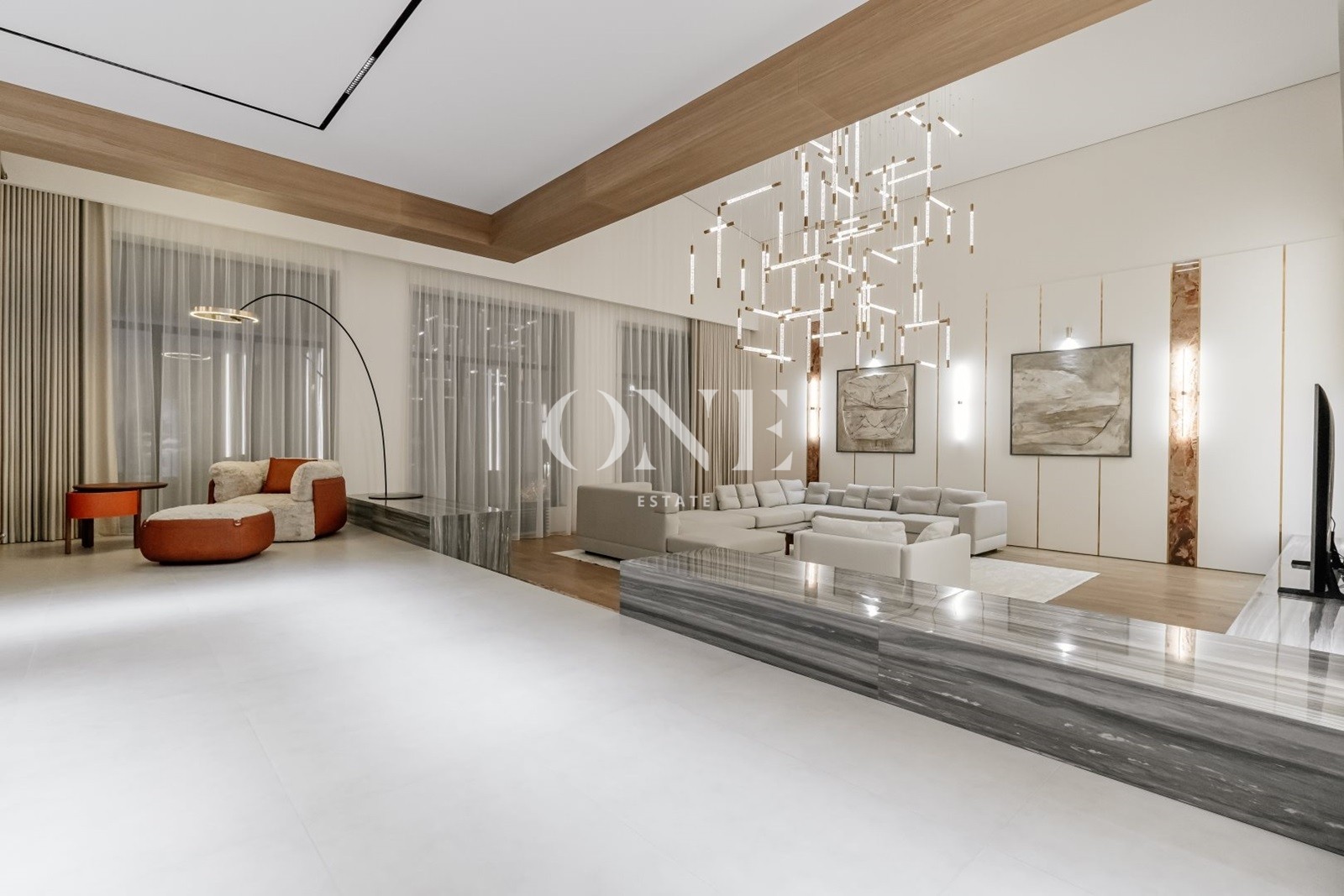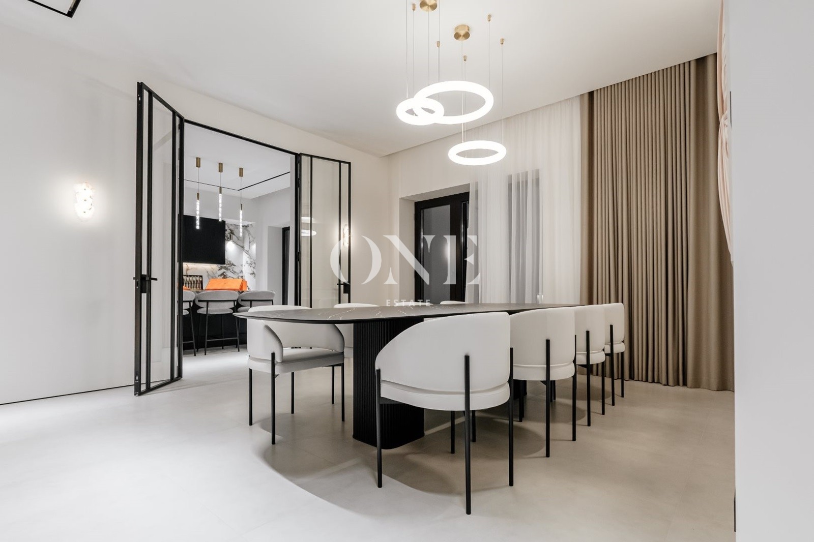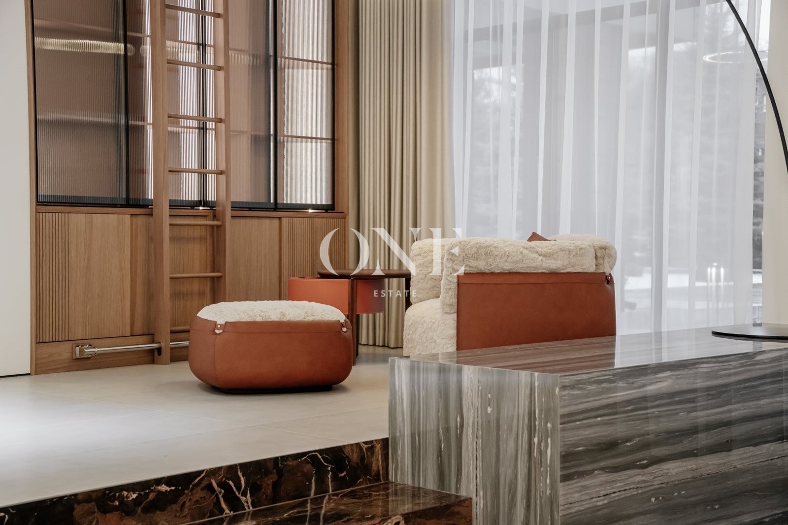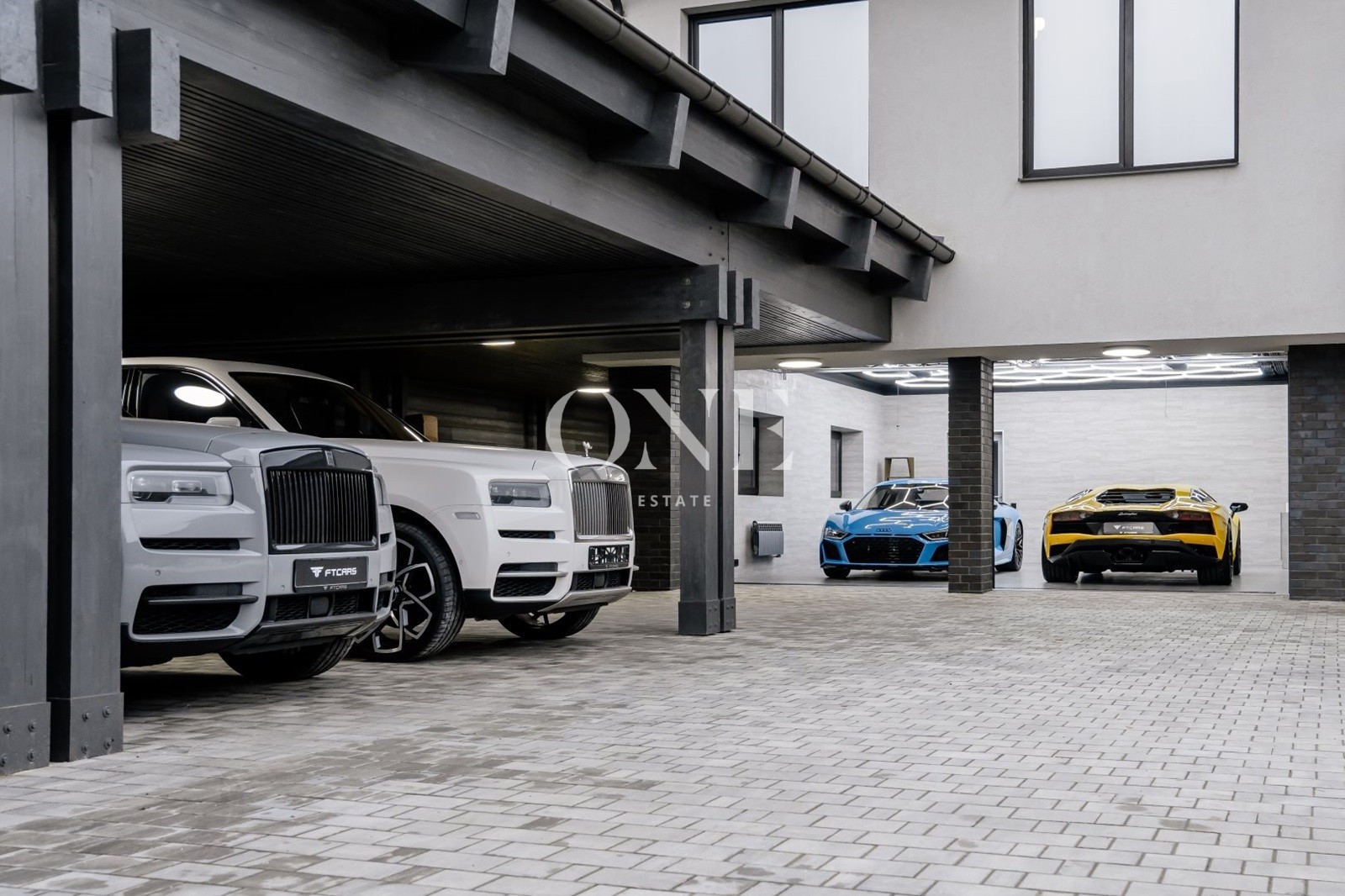 В доме предусмотрены 4 мастер-спальни, просторная гостиная с библиотекой, современный спортзал, стильный бар с кинотеатром, гараж с подогревом пола, а также отдельный SPA-комплекс с хамамом и дровяной баней.