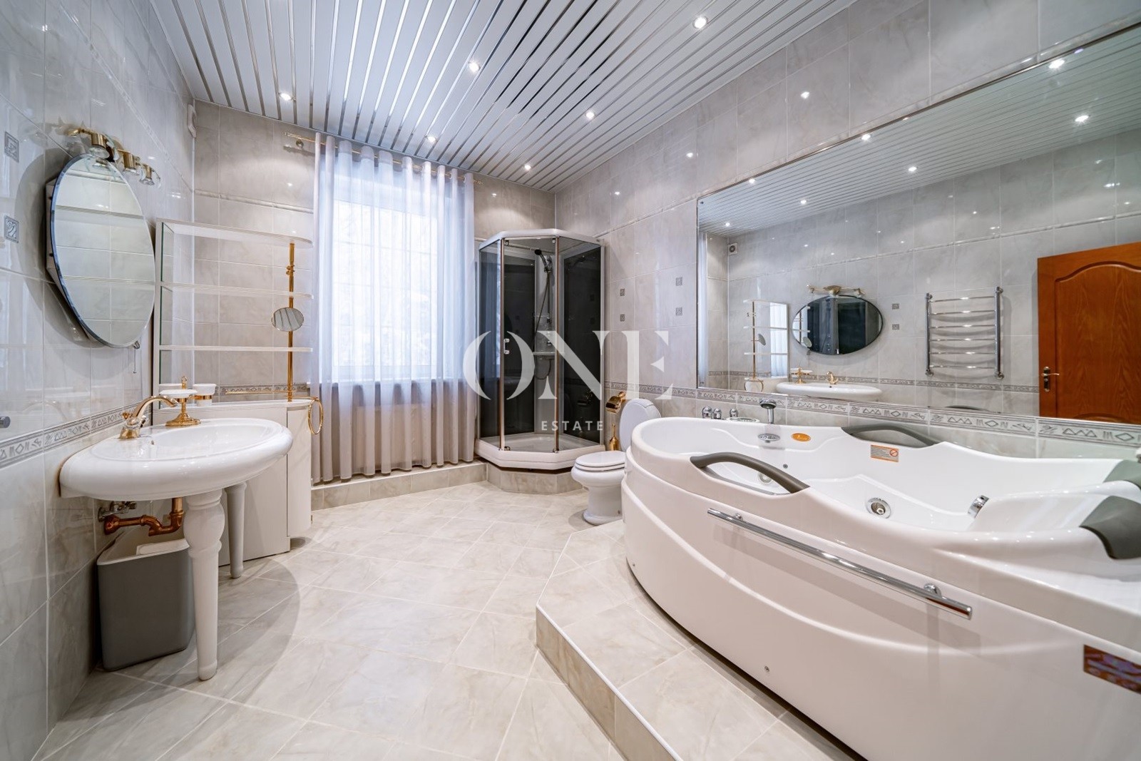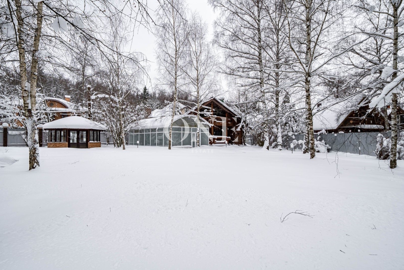 На участке дополнительно построена баня из оцилиндрованного бревна 80 м2 с кухней, камином и гостевой комнатой на втором этаже, уличный бассейн, чайный домик и летняя беседка.