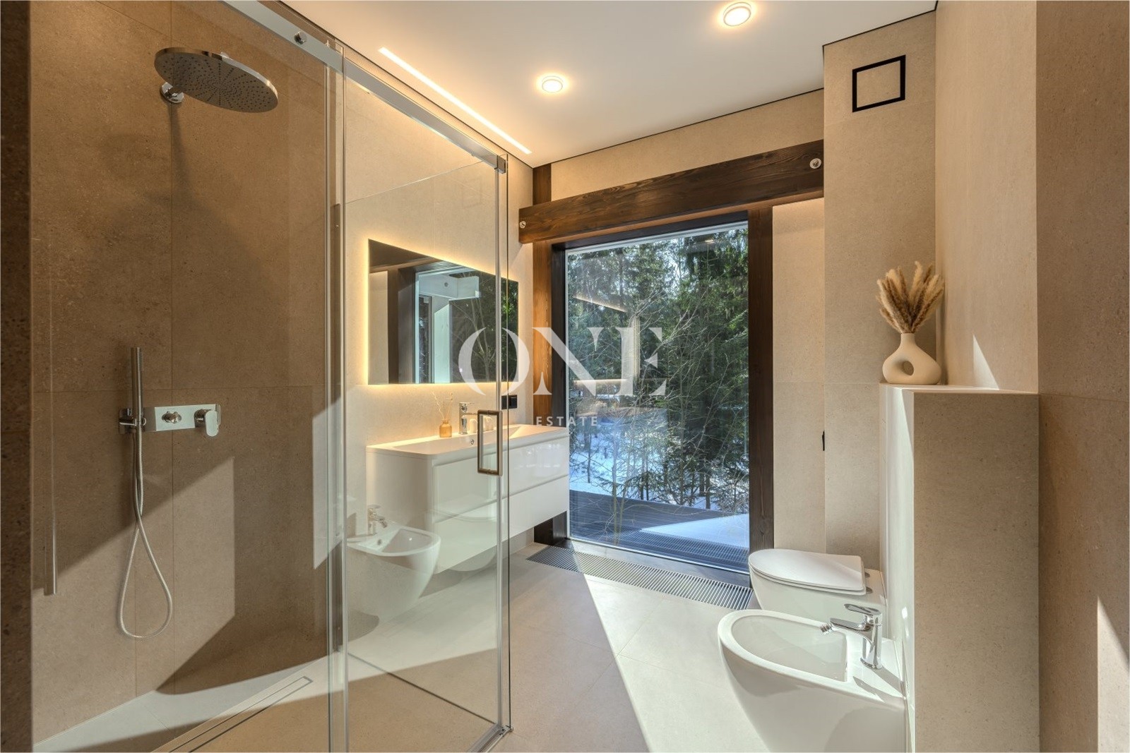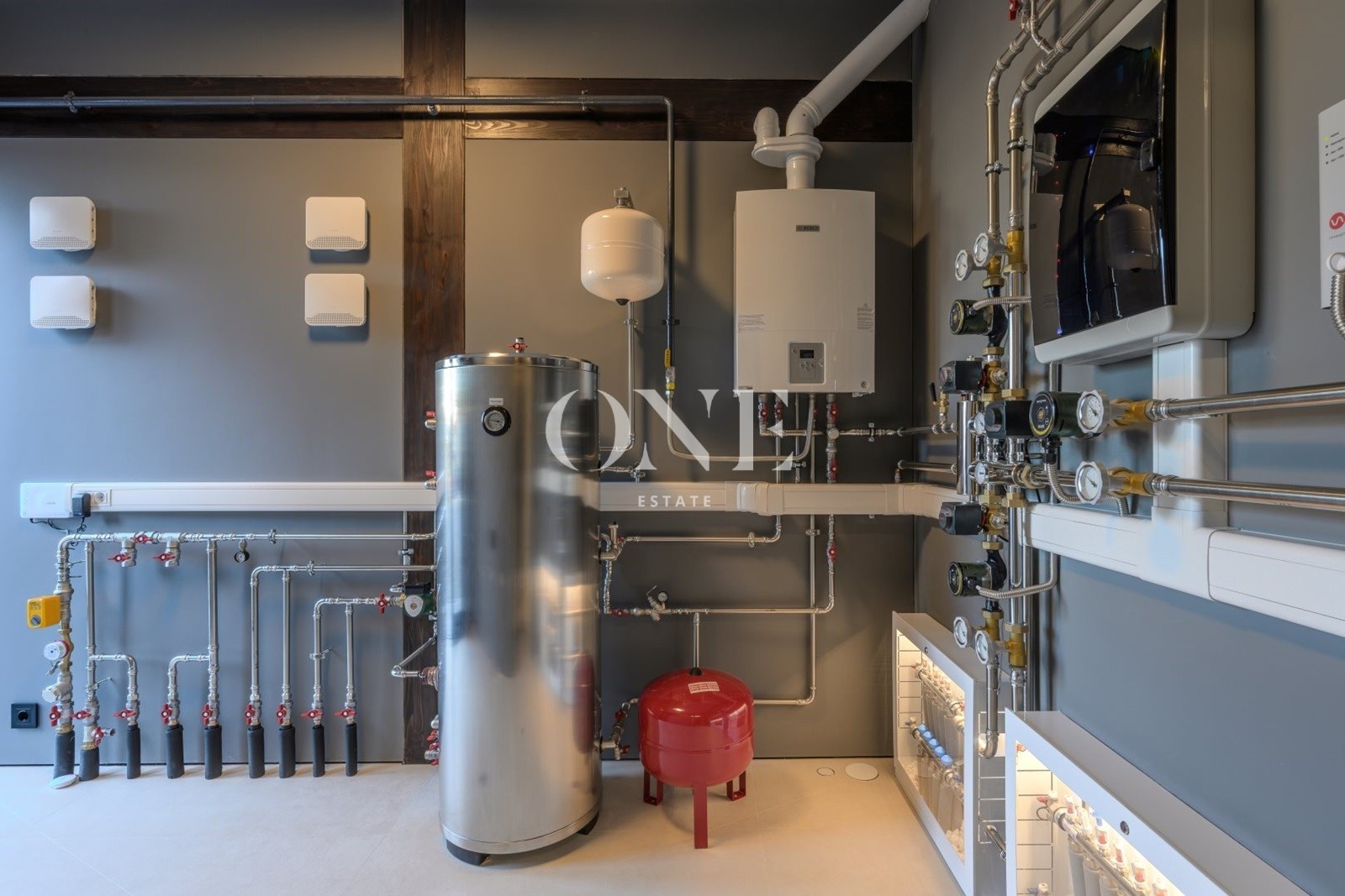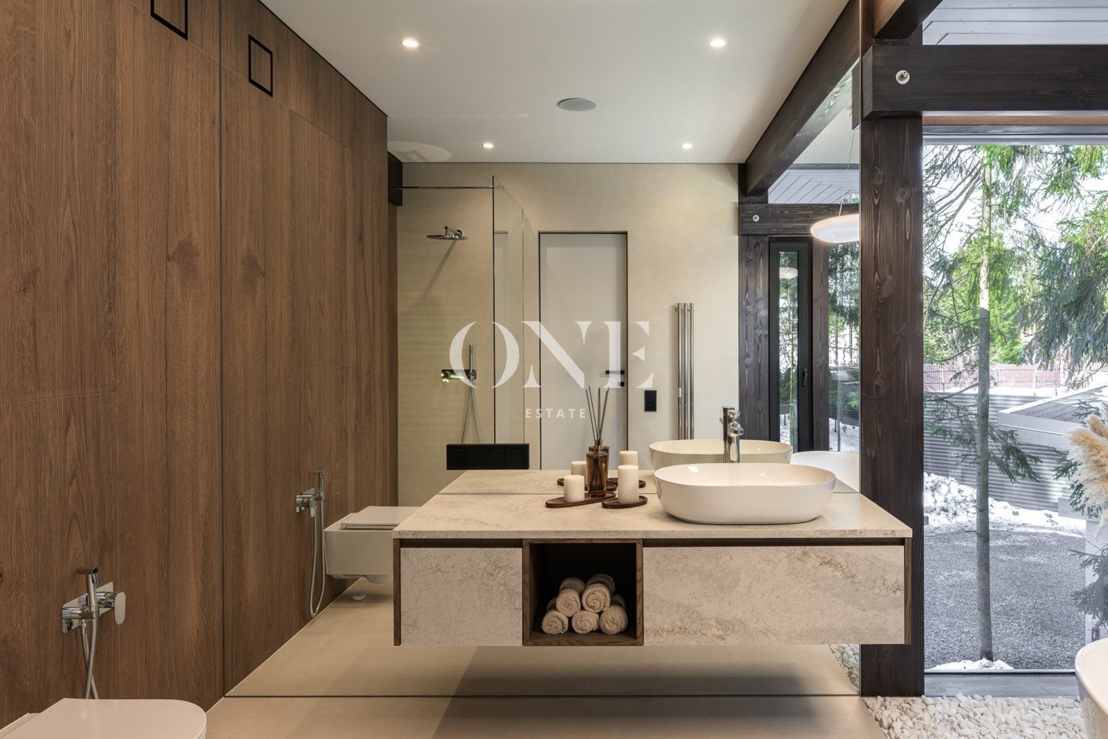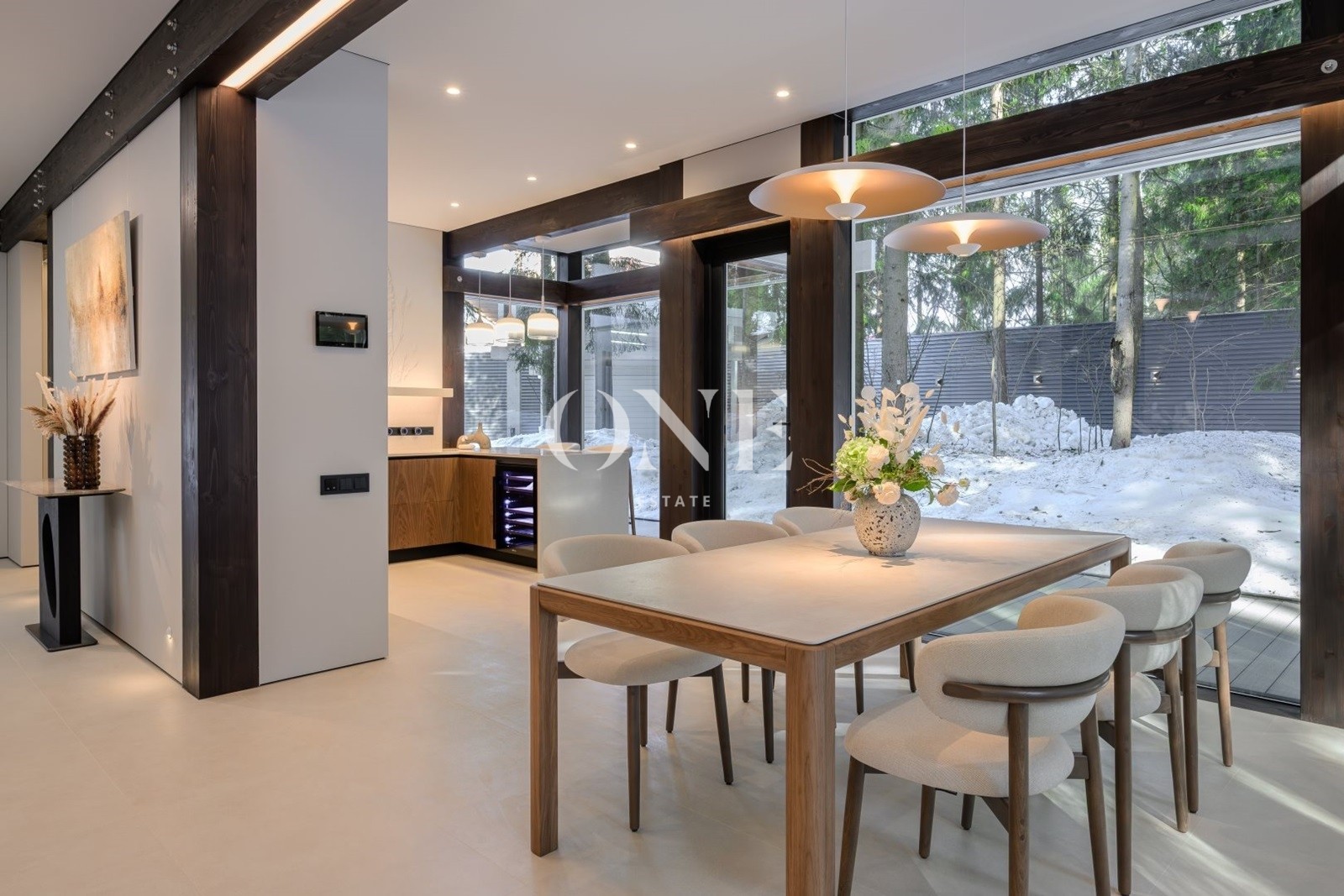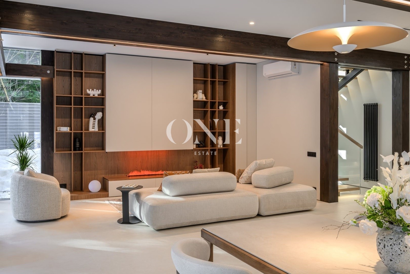 На участке 13 соток растут многолетние ели и дубы, оборудованы костровая зона, просторное патио с выходами из гостиной и кухни, праздничная иллюминация в лесу и декоративные
