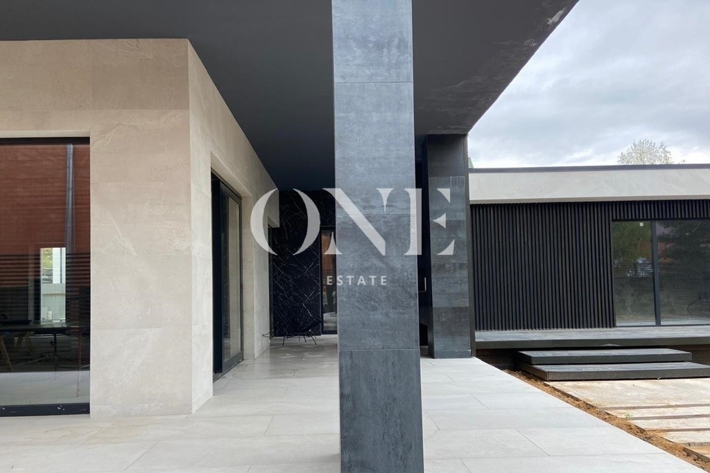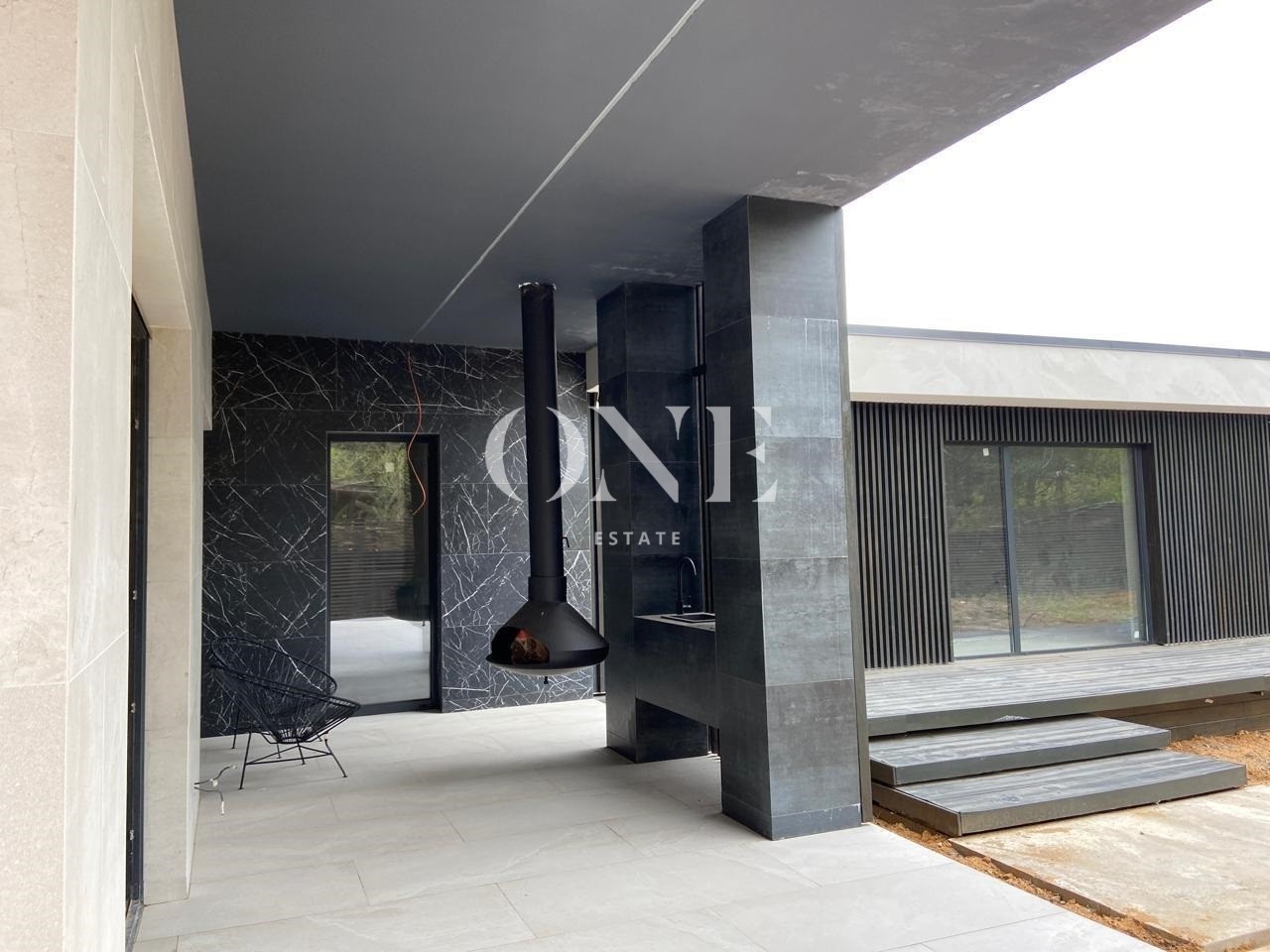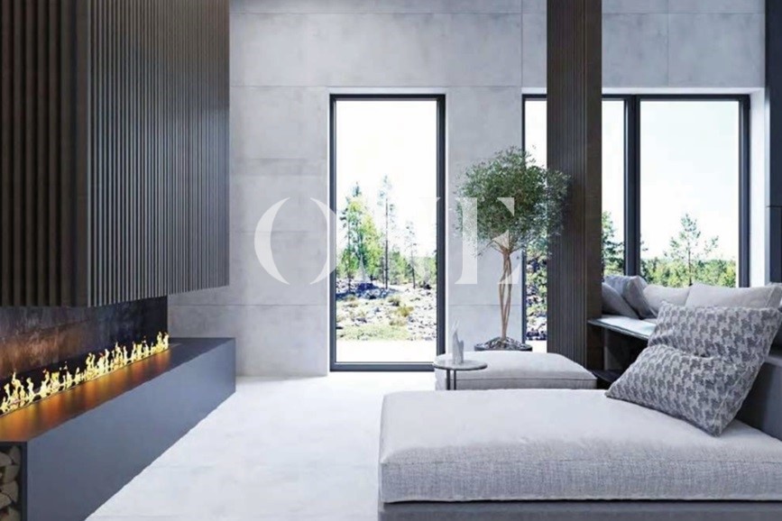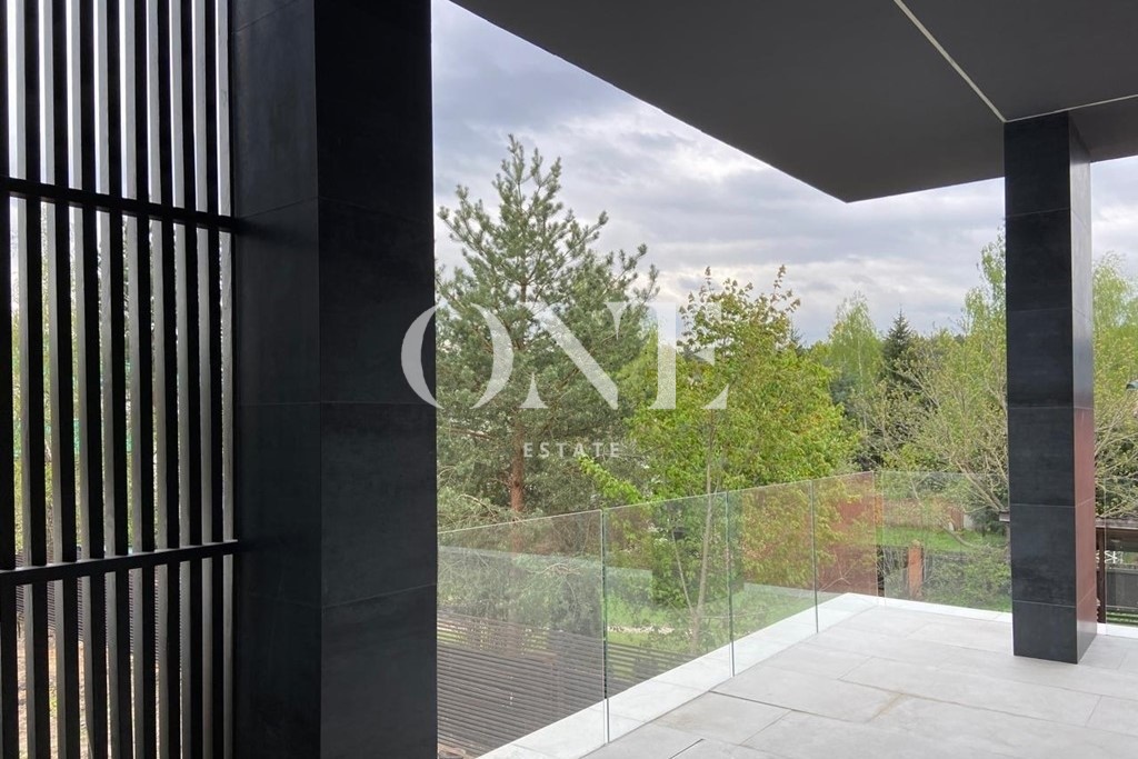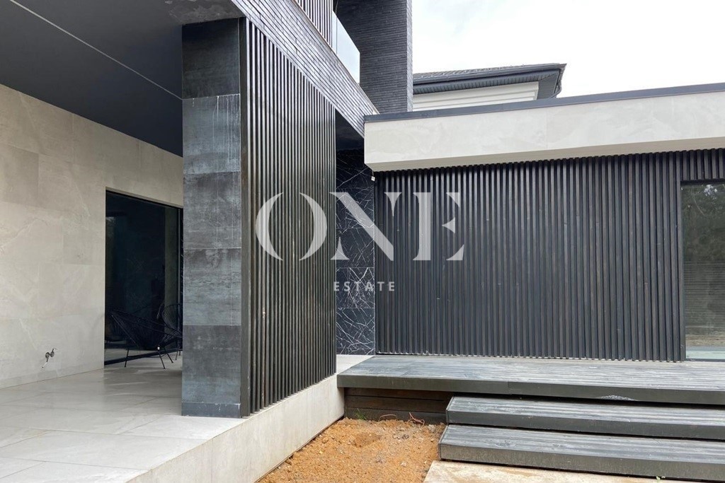 Дом имеет плоскую кровлю, большое панорамное остекление, фасад отделан керамогранитом, ригельным камнем и рейкой из термопихты, этот материал практически не впитывает влагу, не деформируется на солнце. Установлены гаражные ворота компании Alutech - 5,20 м в длину, что обеспечивает удобный заезд под навес на территорию участка. Фундамент выполнен из монолитного железобетона, так же как и несущие конструкции дома: колонны и все межэтажные перекрытия. Высота потолков - 3,3 -3,55 м Плоская крыша отделана ПВХ мембраной с утеплением и разуклонкой, внутренние воронки подогреваемые, вся вода переливается в ливневую канализацию. Окна - теплый алюминий, также установлен раздвижной портал в гостиной с выходом на крытую террасу с дровяным камином. Все санузлы оснащены скрытыми душевыми системами, скрытыми смесителями, душевыми трапами, инсталляциями под подвесные унитазы. Запроектирована - система УМНЫЙ ДОМ и смонтированы выводы под: Видеонаблюдение Пульты и панели управления умного дома Пожарные датчики Датчики движения Датчики протечки воды Датчиками сигнализации Бесшовный Wi - Fi Электровыводы для штор. Участок 10 соток, правильной прямоугольной формы. На участке сделаны выводы для автополива, электровыводы для светильников вдоль дорожек, для подсветки деревьев. По самому дому также есть выводы, установлены профиля для контурной подсветки по свесам крыши и по контуру цоколя. Обустроена костровая зона с розетками и подсветкой.