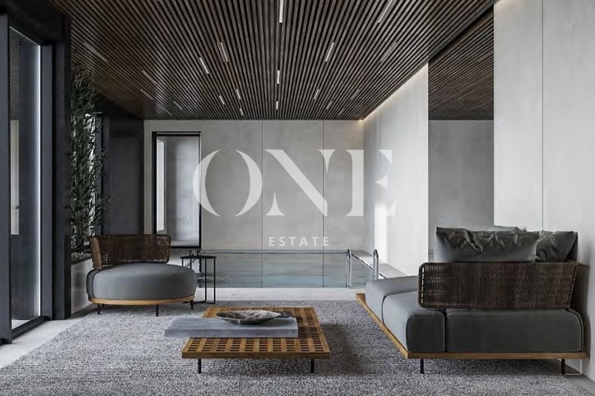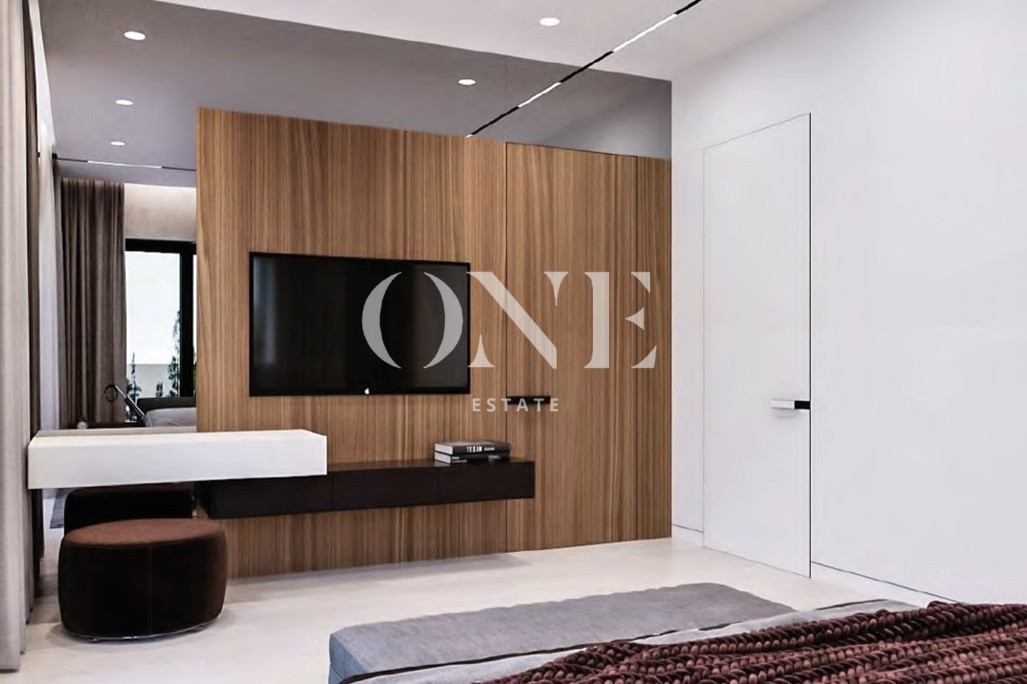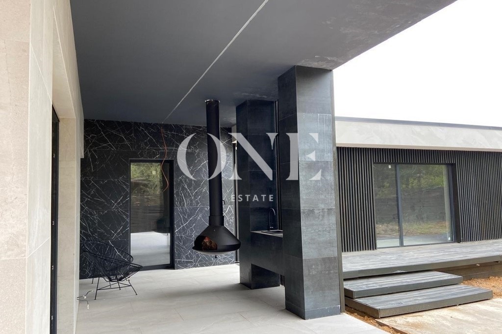 1 этаж 4 спальни, 5 с/у, кухня-гостиная с выходом на крытую террасу с дровяным камином, спа-зону с бассейном и сауной, навес на 2 машиноместа.