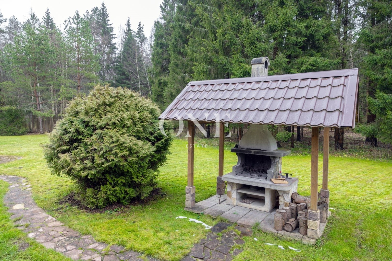 Внешняя инфраструктура участка включает: основное жилое строение, уютную беседку для отдыха на свежем воздухе, где можно устраивать семейные пикники и вечера у костра, а также вместительный гараж с навесом для автомобилей и хозяйственных нужд.