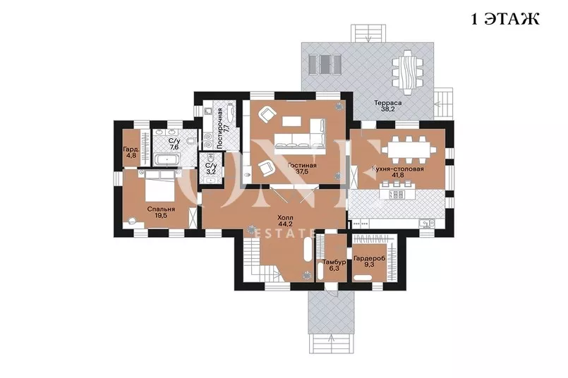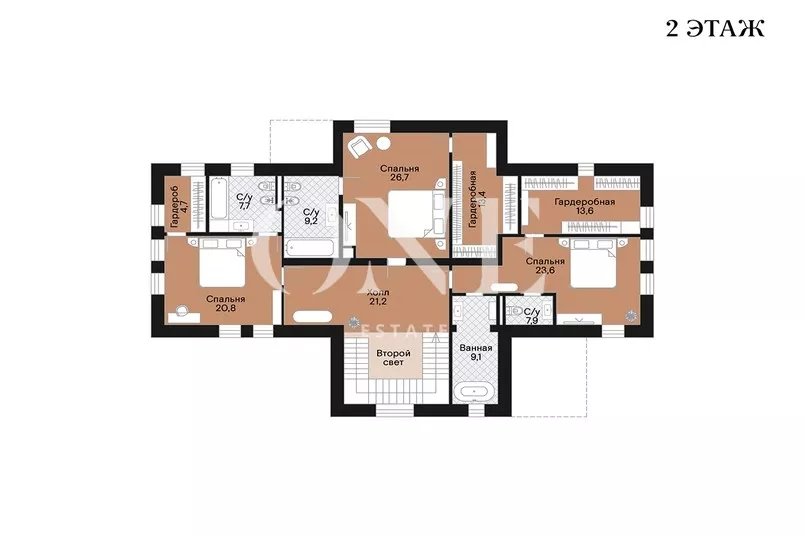 Классика в авторском исполнении недалеко от Москвы, всего 24 км от МКАД по Новорижскому шоссе, и вы в новом КП «бизнес-класса» «Онегино». Территория поселка 41 гектар, 14 из них занимают прогулочные зоны. Вокруг лес, тихо и спокойно, так как комплекс находится в 2 км от трассы. В КП 97 особняков, построенных по 14 индивидуальным проектам, и трёхэтажные таунхаусы с террасами, балконами и собственными лужайками. Площадь коттеджей от 336 до 816 м2, квартир - от 185 до 320 м2. Земельные участки особняков от 12 до 31 сотки, таунхаусов 2 - 4. Все дома кирпичные, в каждом установлена система «умный дом», а пульт управления всегда под рукой – в смартфоне.