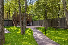 Закрытая территория, автоматические ворота для въезда в посёлок. Посёлок окружен лесным массивом, удобный выезд на Ильинское шоссе и Цкад. В пешей доступности каскад из 5 прудов; - Прогулочная зона зимой и летом: есть 4 маршрута для прогулок или катания на велосипеде в лесу или в соседней заповедной роще без выхода на проезжую часть; - В 5 минутах на авто - Дипломатический пляж на Николиной Горе и 4 крупных спорт-центра (теннис, футбол, бильярд, фитнес, сауны); - В 15-20 минутах на авто - гольф-клуб Нахабино; - 2 частные школы; - 3 бассейна в 5-минутной доступности; - Рестораны, продуктовые магазины и аптеки в 5 минутной доступности; - 4 выезда в Москву: Рублево-Успенское шоссе, Новорижское шоссе, через Масловскую дачу, по платной дороге в сторону Одинцово. В