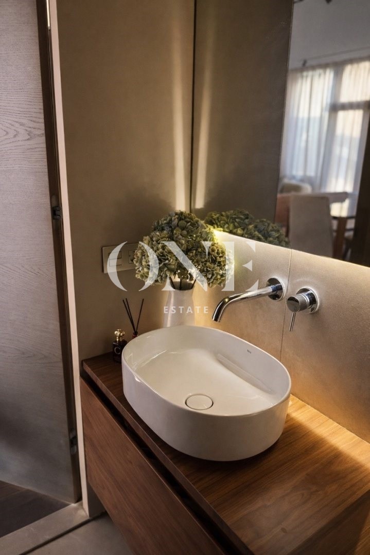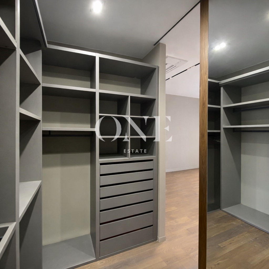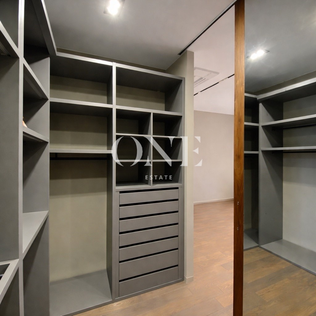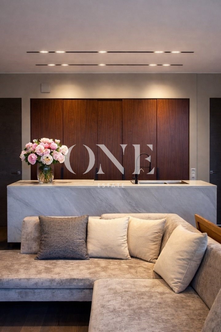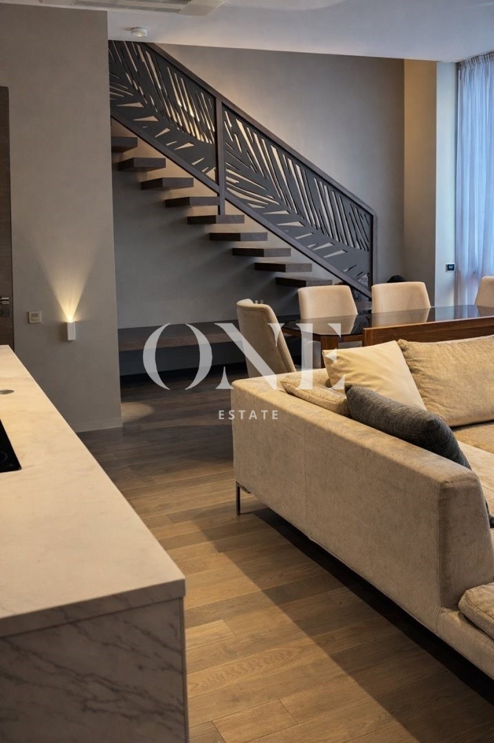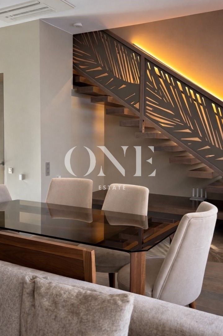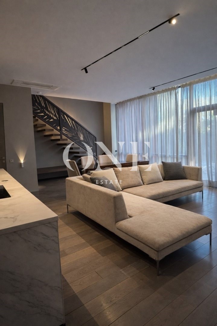 В таунхаусе 3 этажа, 2 спальне на 2 этаже и 1 спальня на первом, открытая кухня с островом, вся мебель, что вы видите на фото остаётся в доме, а также вся мебель была изготовлено на заказ и специально разработана совместно с Дизайнером Интерьера.