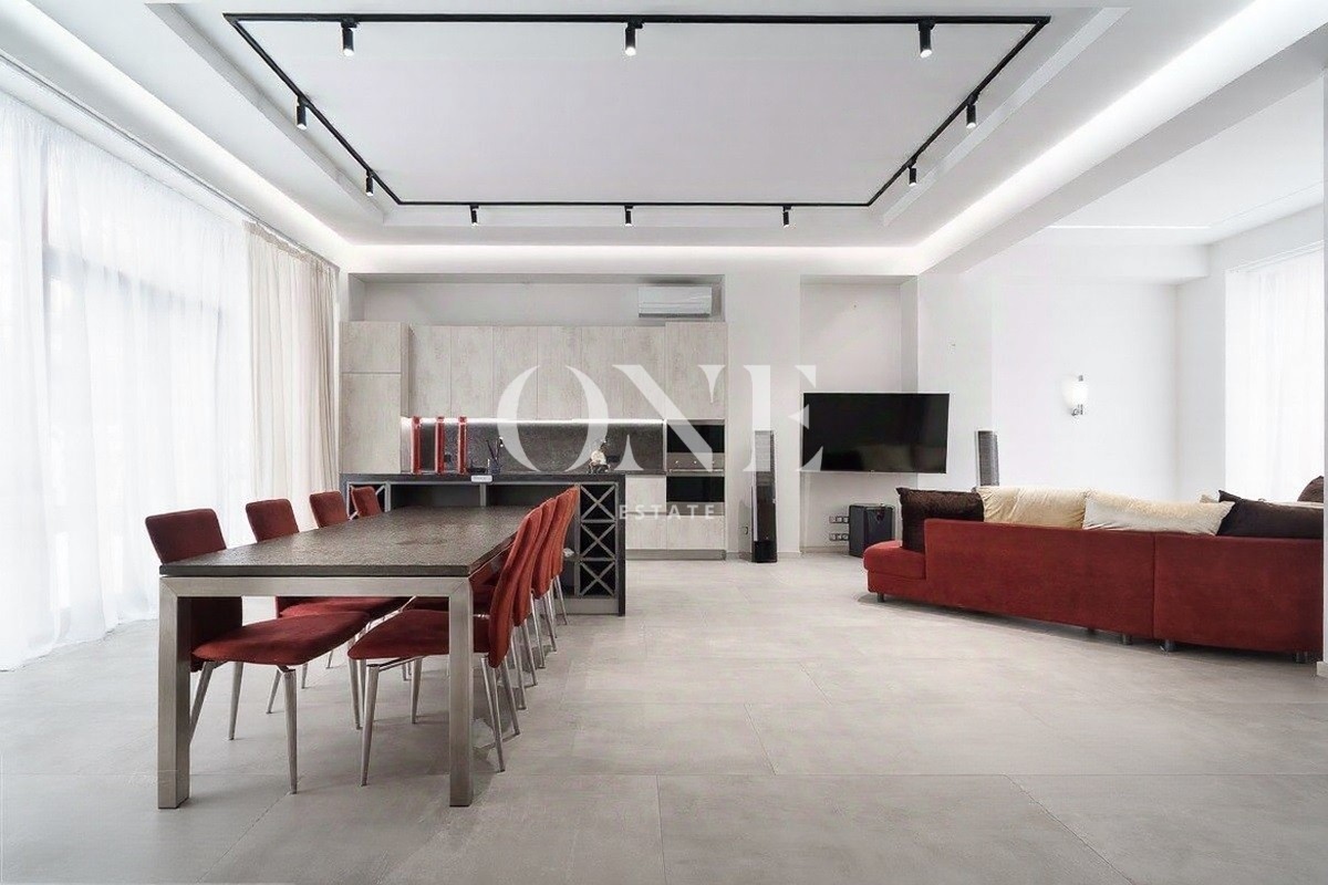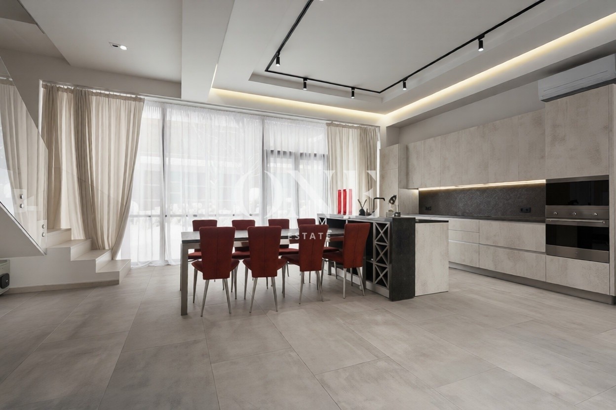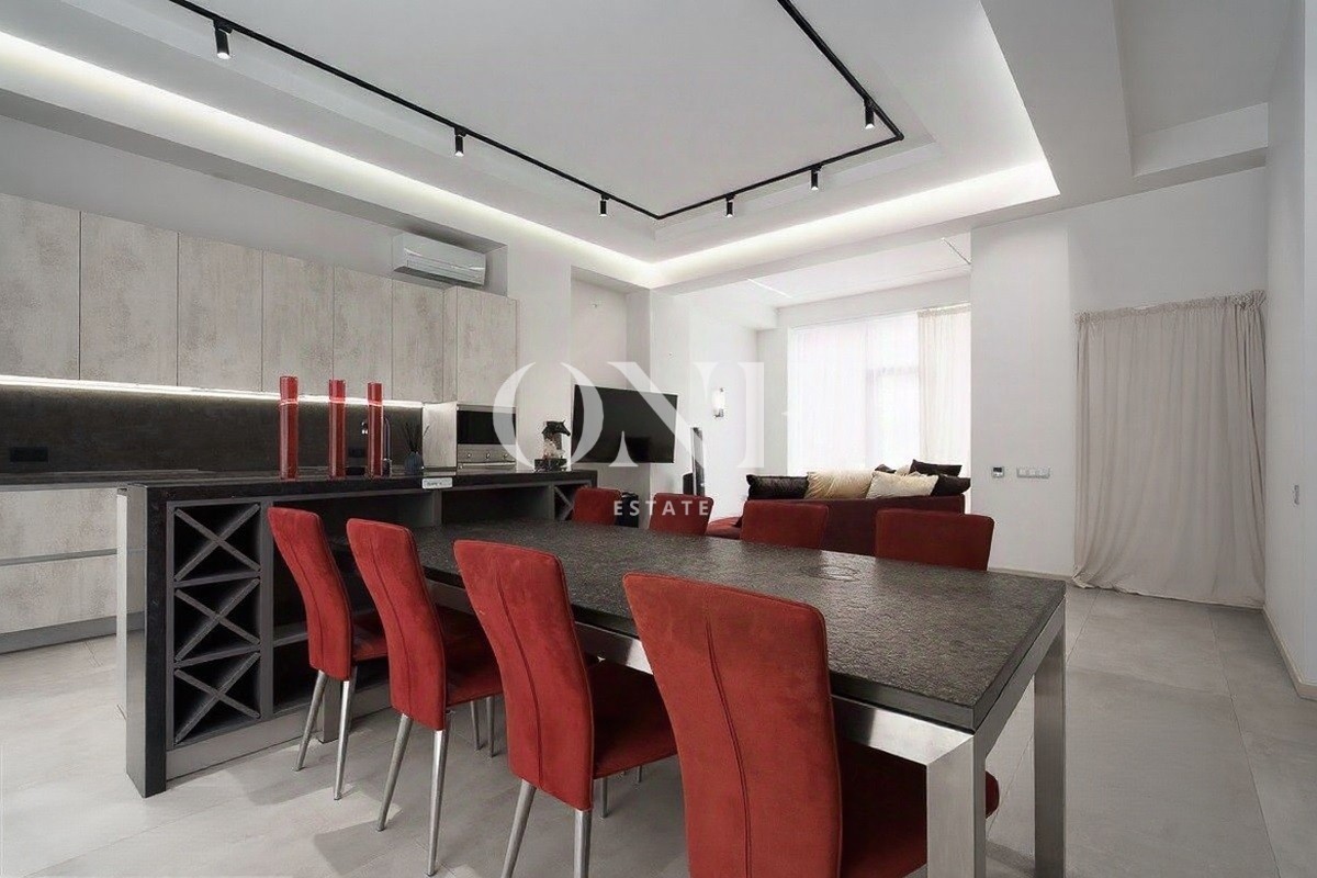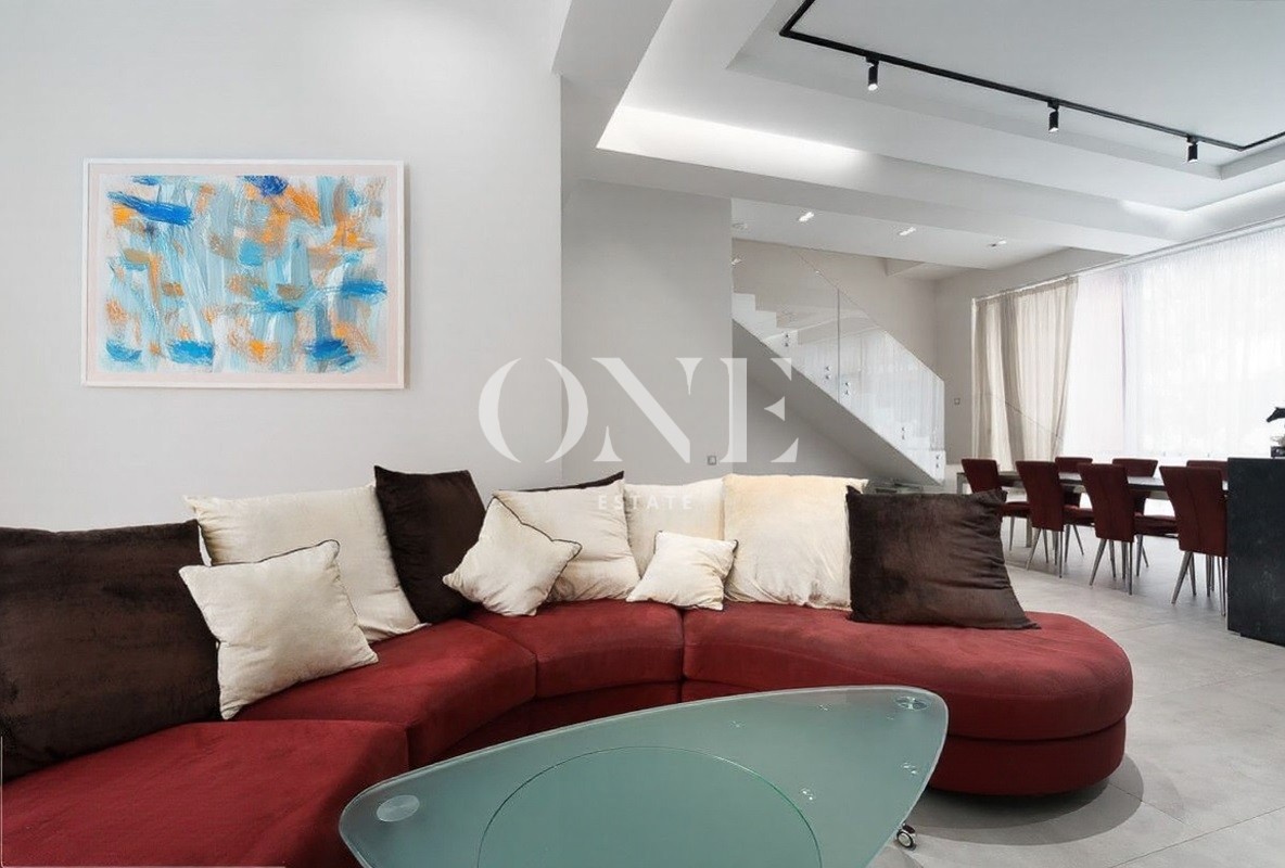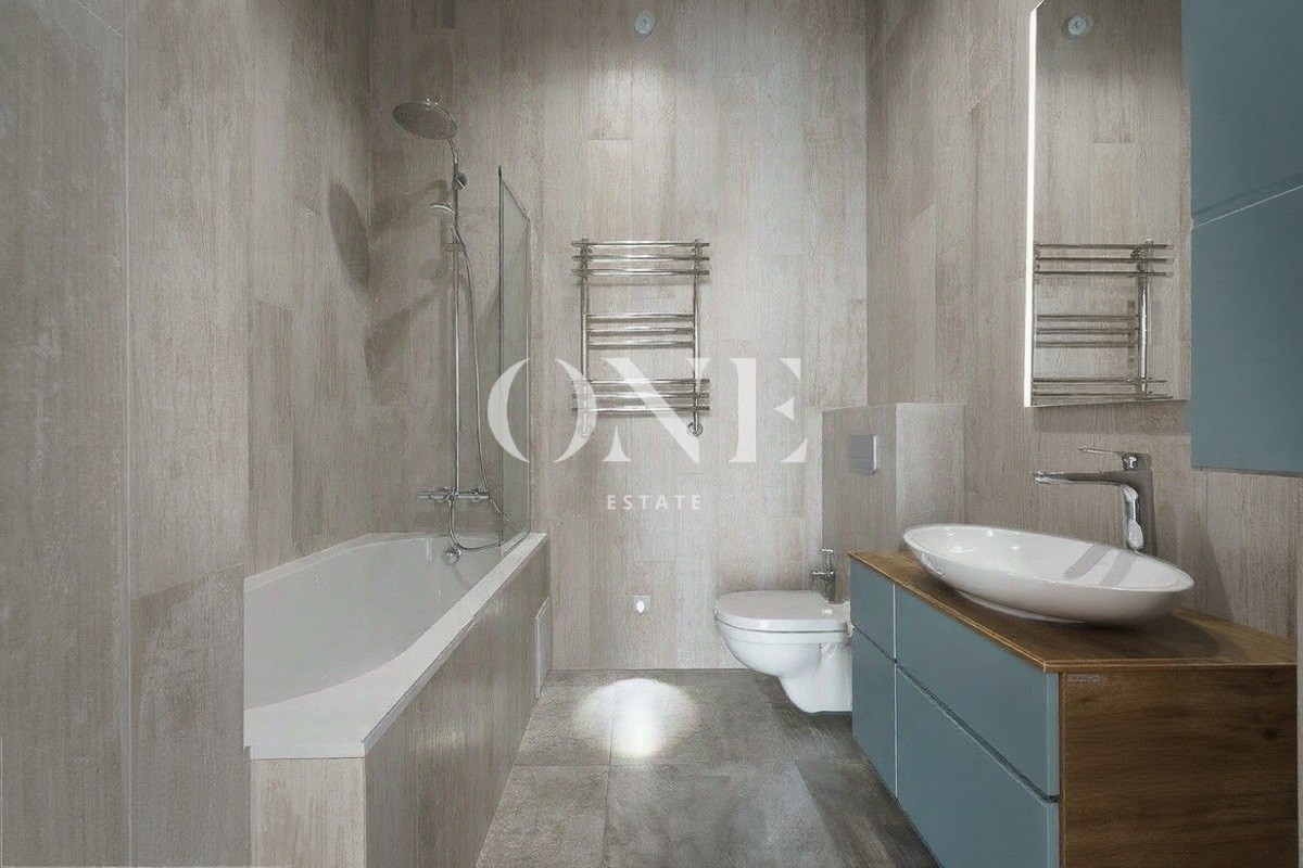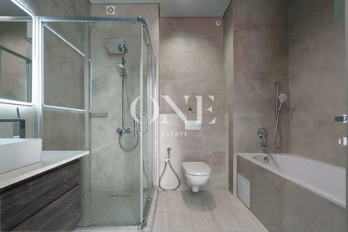 Полностью оборудован и готов к проживанию. Современный интерьер, благородные оттенки, мягкое освещение.