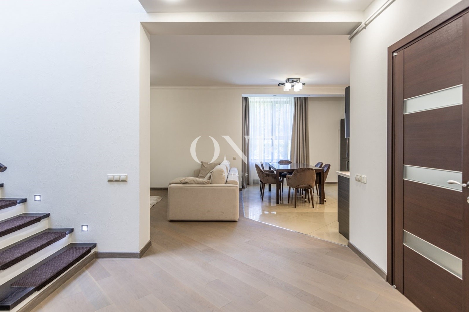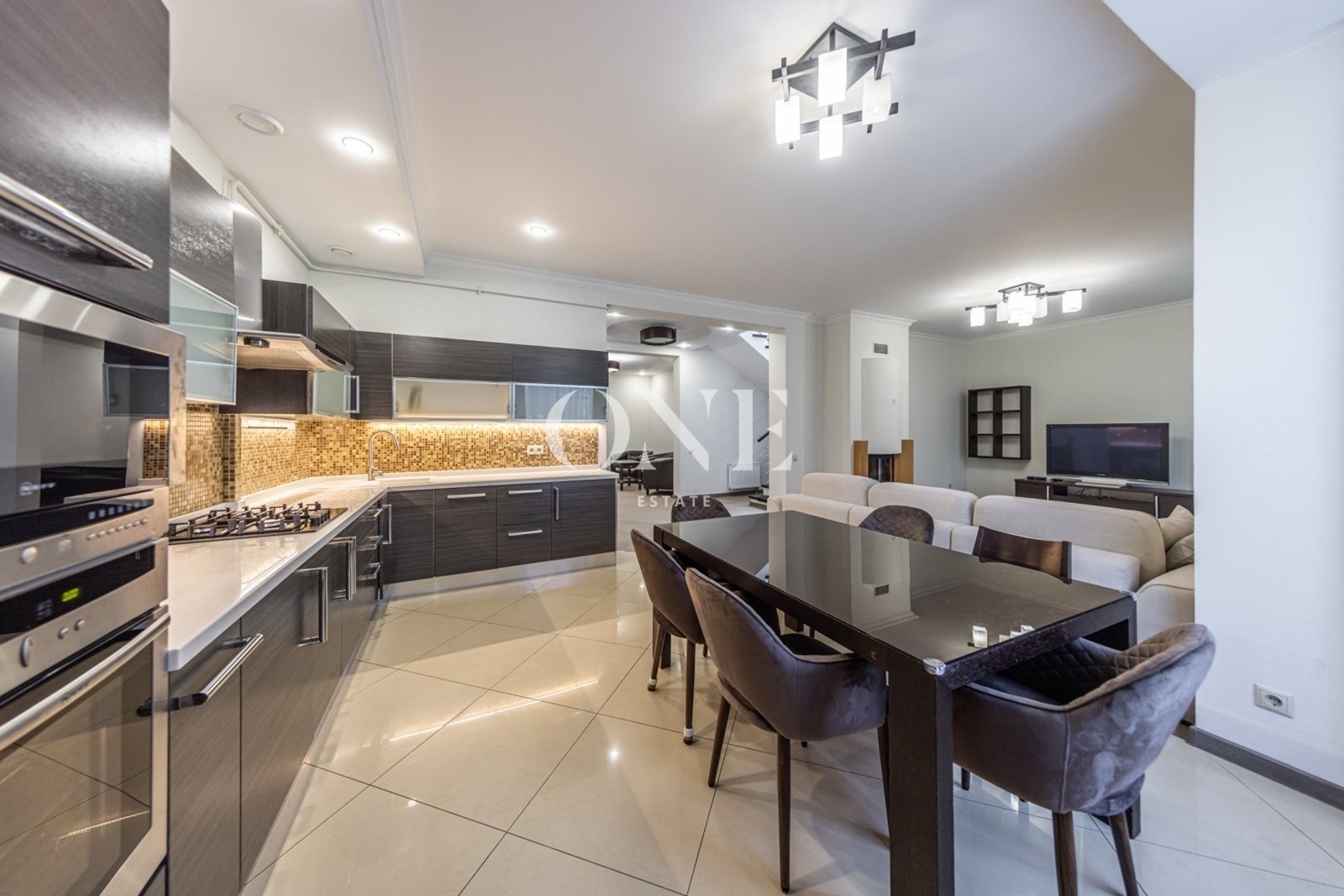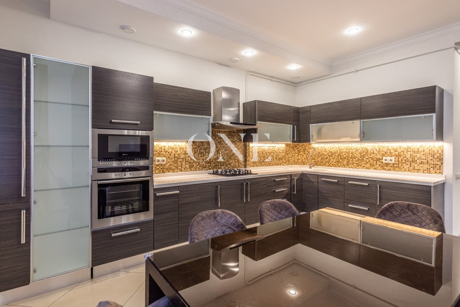 Кухня-столовая, оборудована всей необходимой встроенной техникой: большой холодильник, отдельная морозильная камера, микроволновка, жаровой шкаф, стиральная машинка, спальни и коридоры с мебелью, есть отдельная гардеробная комната, 2 балкона, выход на террасу.