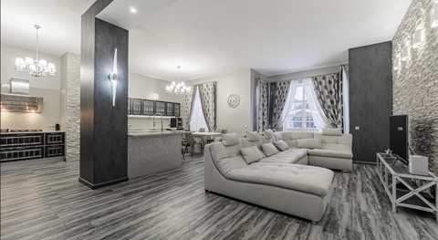 гостиная с камином, кинотеатр, с/у.
