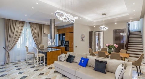 холл, 4 с/у, 5 спален, кабинет, гостиная-кухня, гардеробная.
